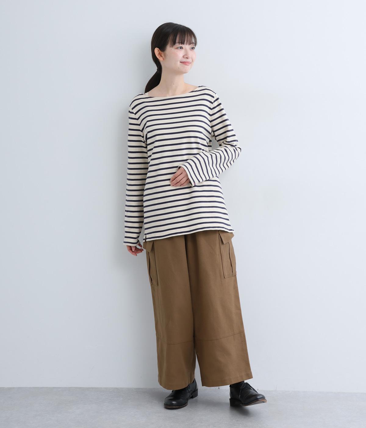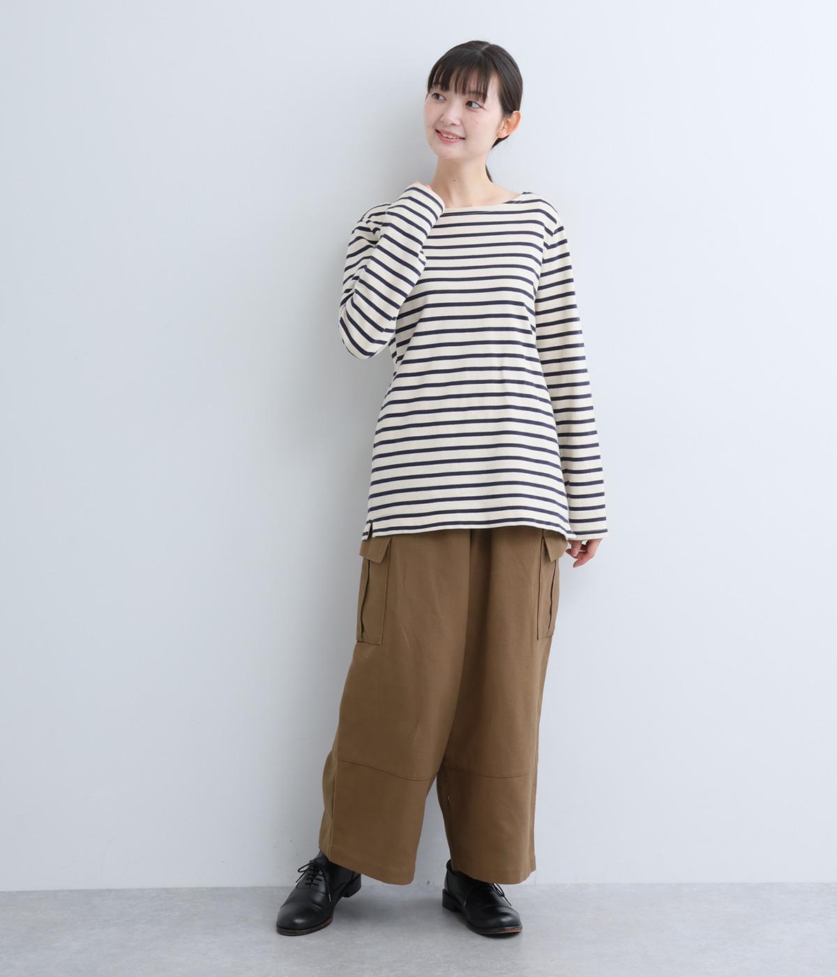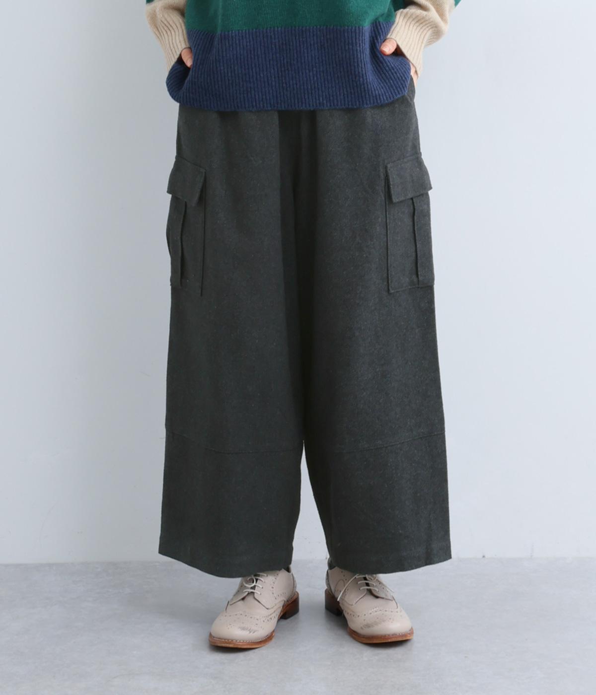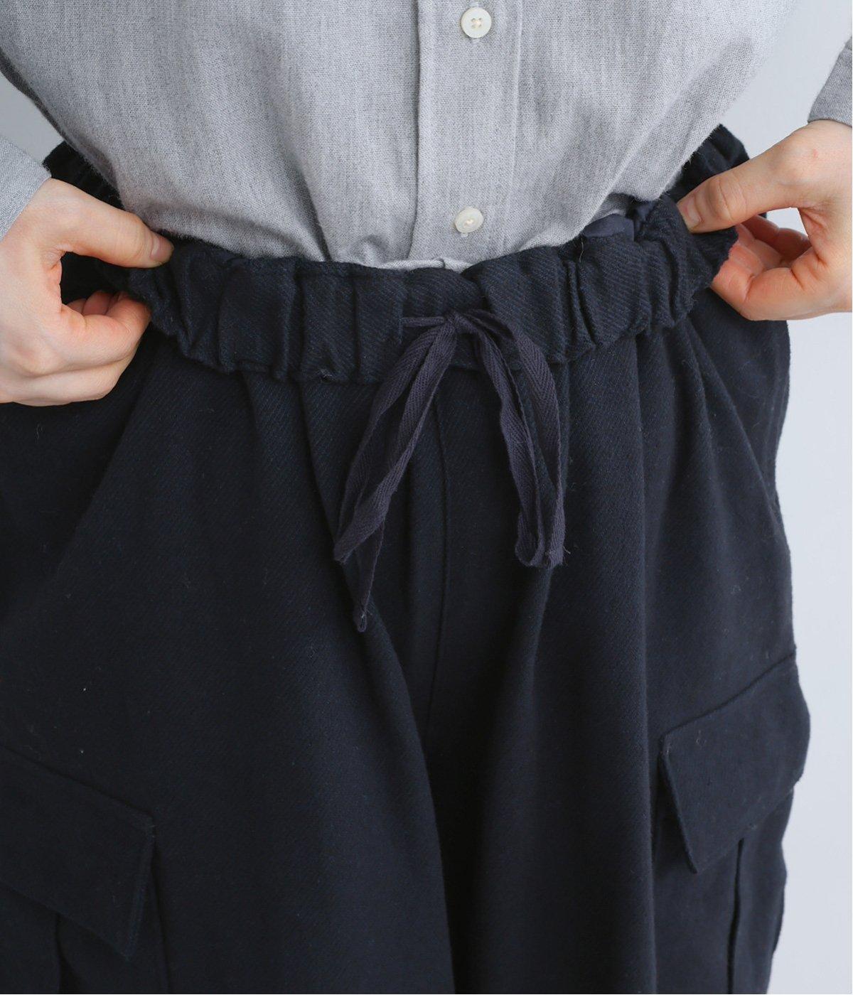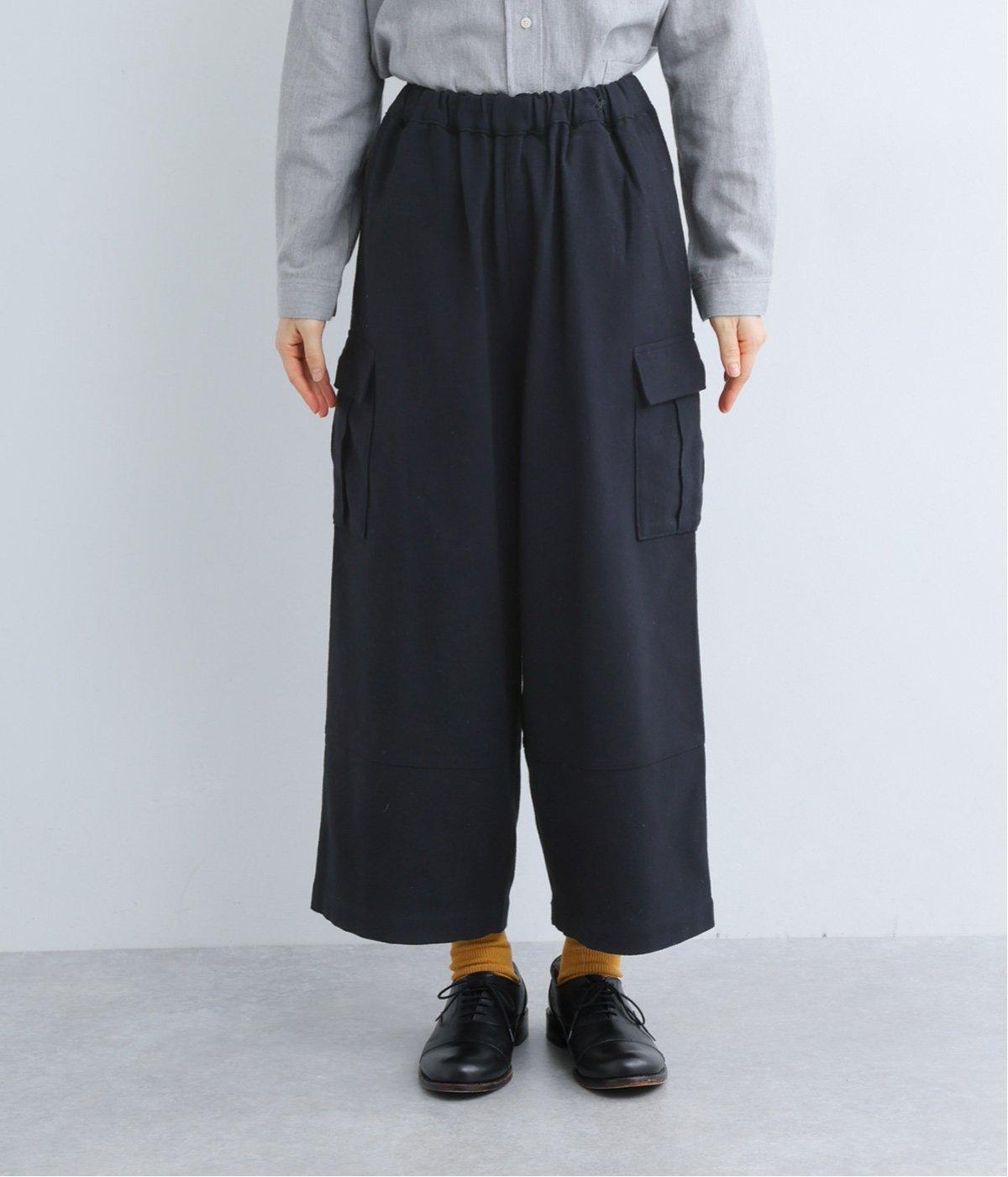 ワイドなシルエットがこなれ感を与えるカーゴパンツ。足首が覗く短めの丈で、全体のバランスをすっきりと整えました。両サイドのカジュアルなフラップポケットがアクセントに。総ゴム仕様のウエスト内側に紐を通してフィット感を高めています。