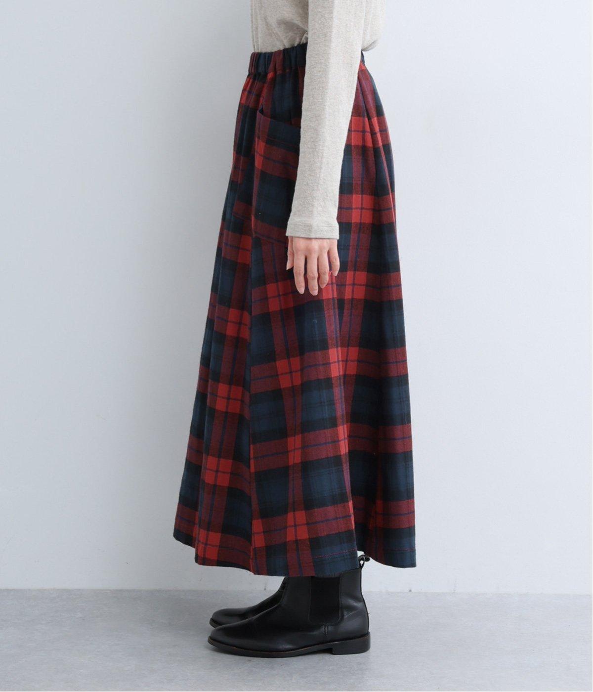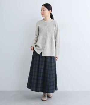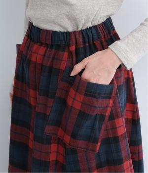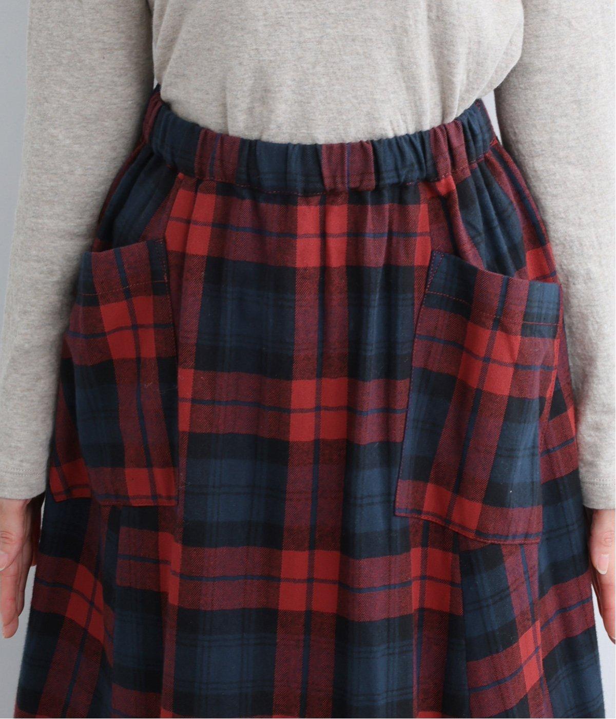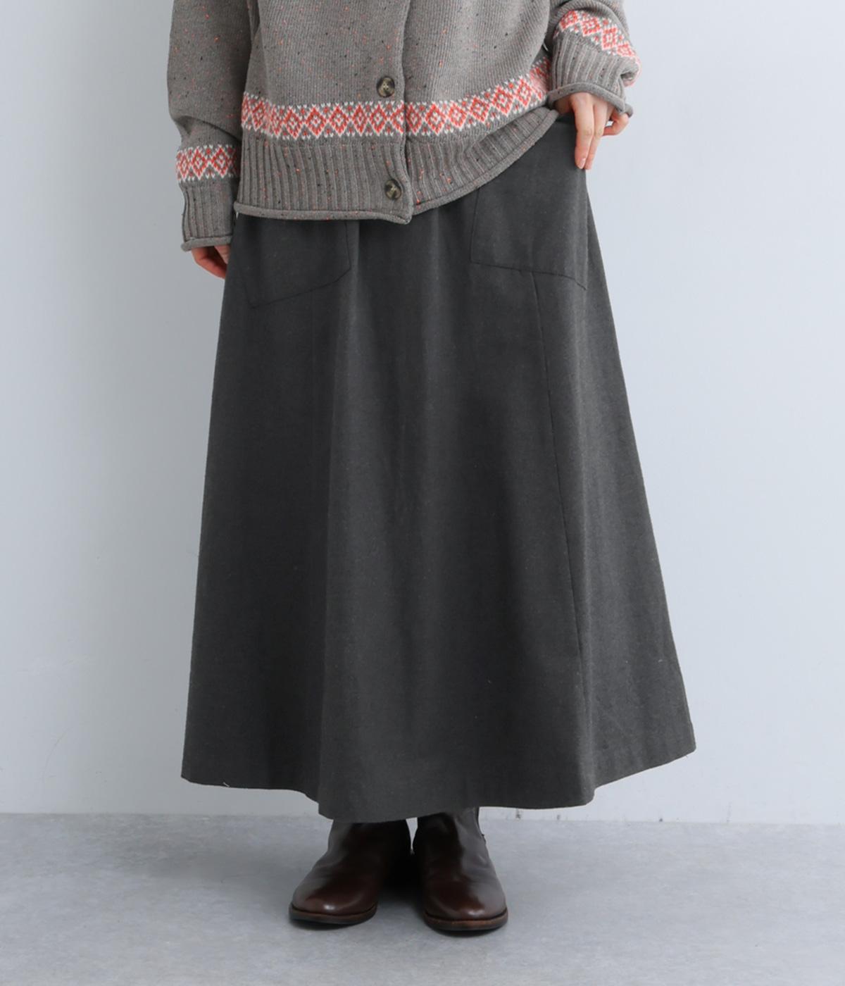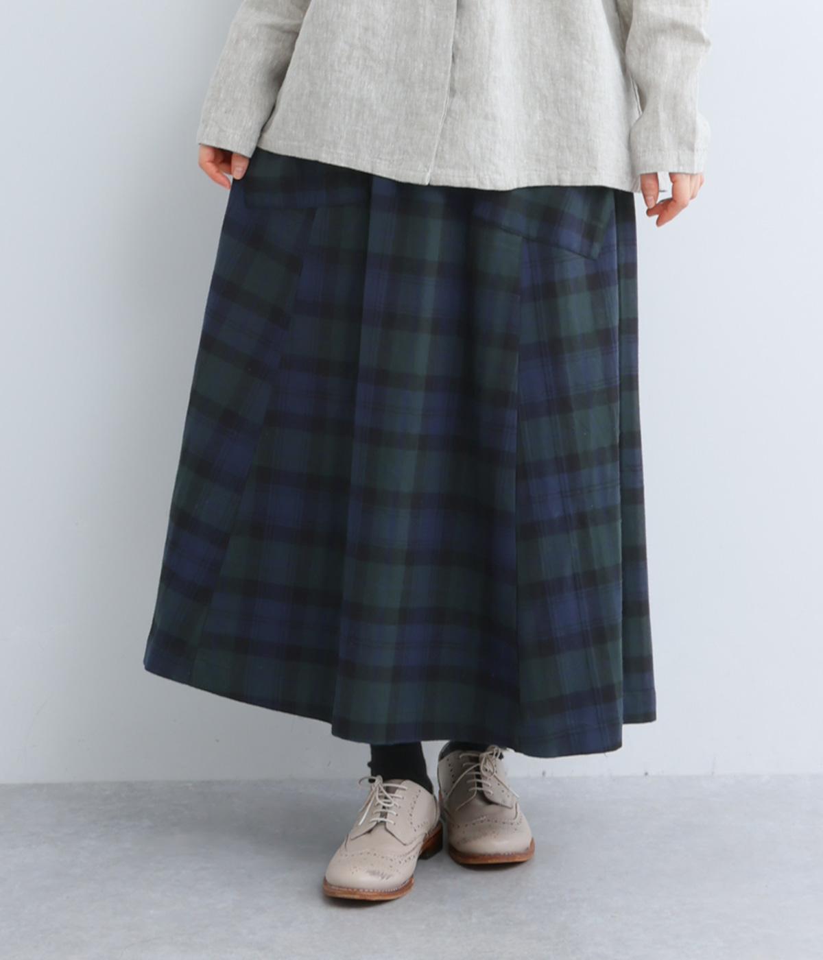 縦ラインに複数の切り替えを入れた女性らしいフレアシルエットを描くスカート。合わせるトップスを選びにくいほどよいボリューム感に仕上げました。手を入れやすいよう斜めにつけたポケットがアクセントに。ウエストにはゴムと紐をぐるりと通しています。