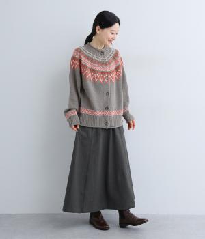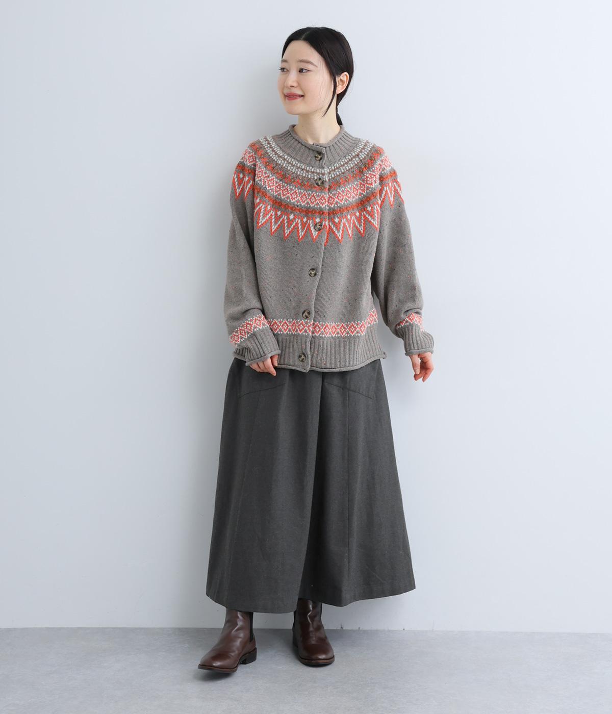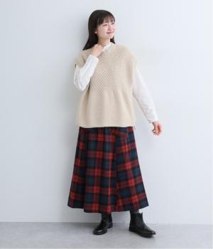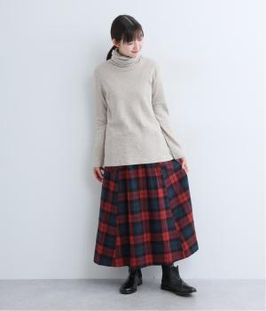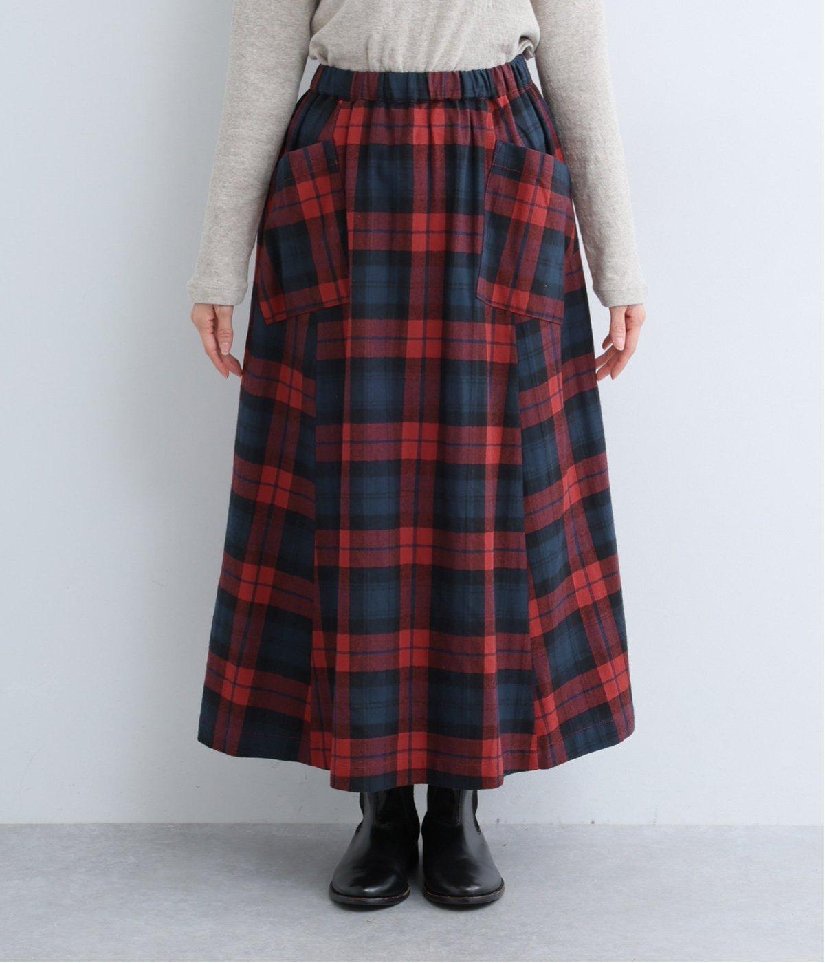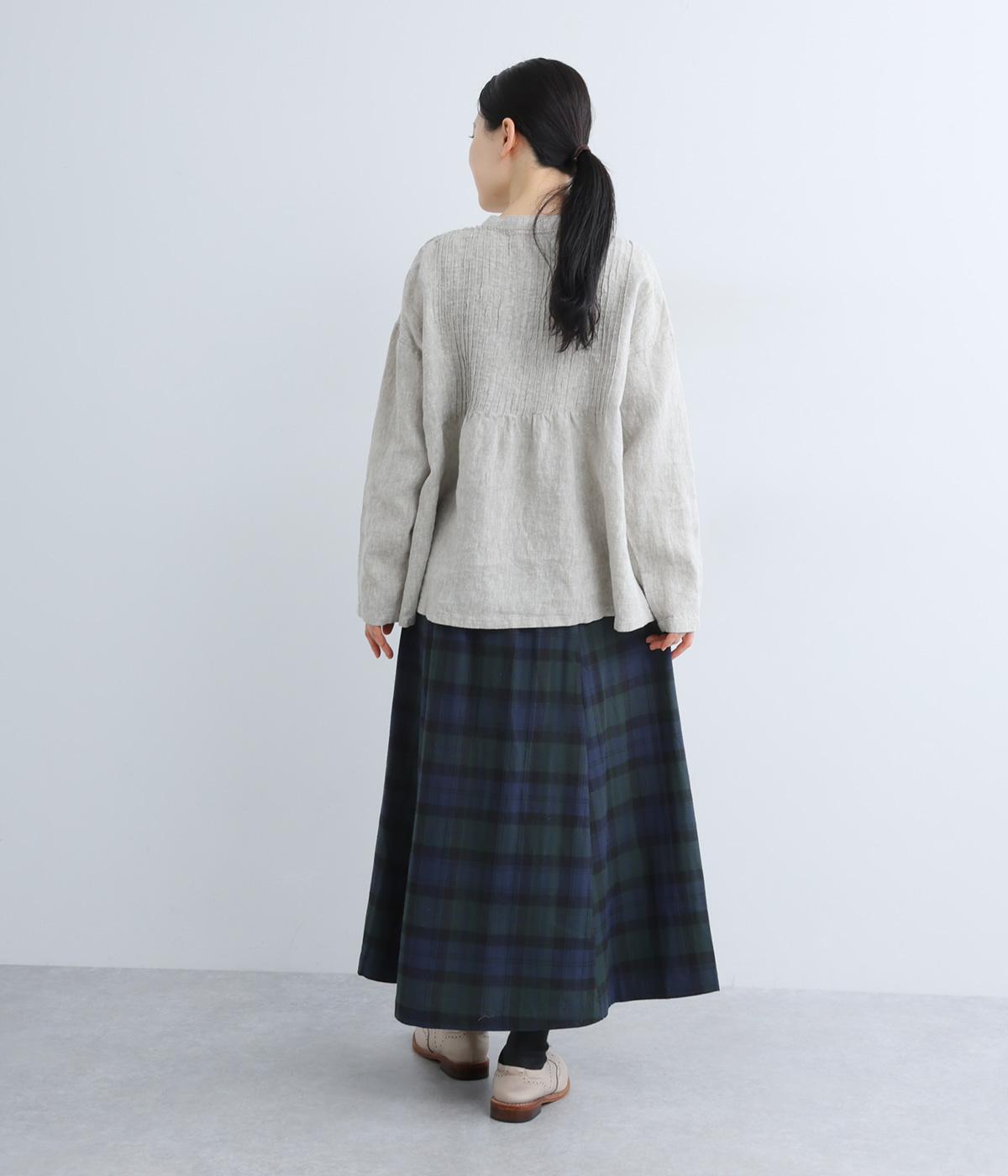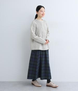 縦ラインに複数の切り替えを入れた女性らしいフレアシルエットを描くスカート。合わせるトップスを選びにくいほどよいボリューム感に仕上げました。手を入れやすいよう斜めにつけたポケットがアクセントに。ウエストにはゴムと紐をぐるりと通しています。