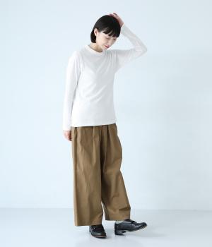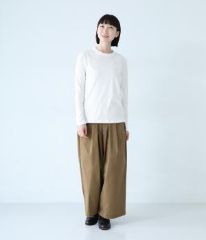 体のラインにやさしく添う、細すぎない絶妙なサイズ感に仕上げた長袖Tシャツ。着丈は長めに設定しているので、縦のラインが強調されてよりすっきりとした印象で着こなせます。一枚着はもちろんインナーとしても活躍する、つい色違いで揃えたくなるアイテムです。