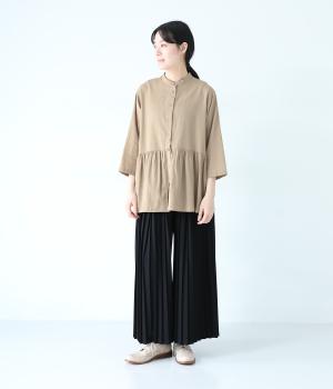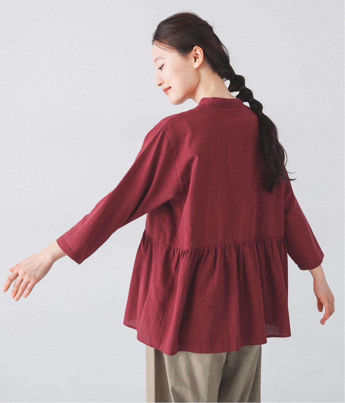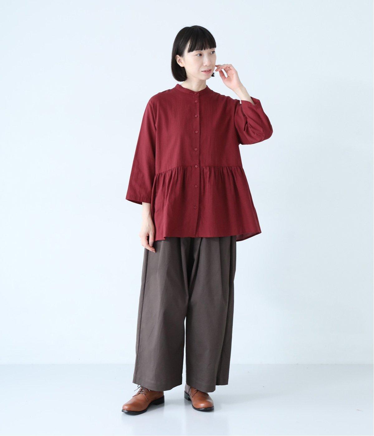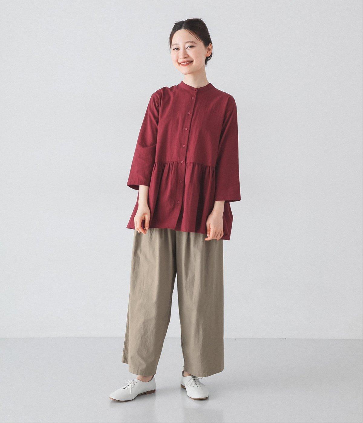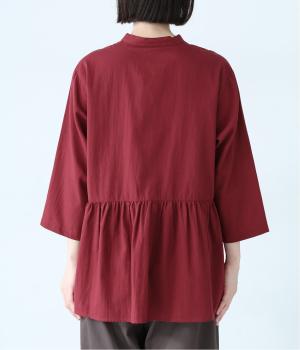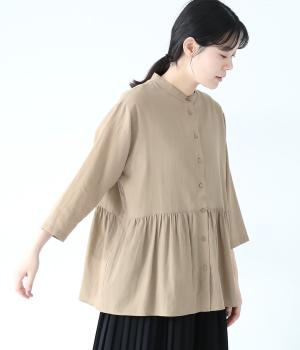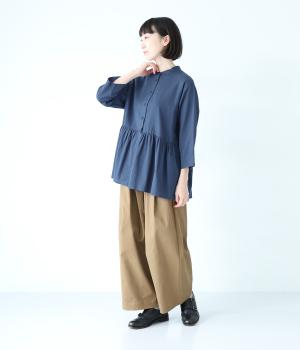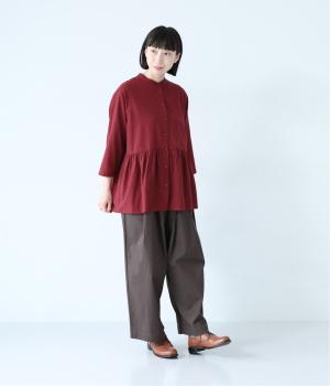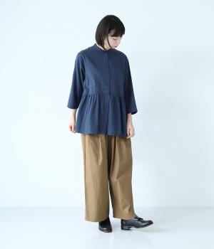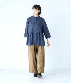 少しシワ感のある洗いざらしのようなナチュラルな風合いが魅力のコットン生地。薄手で軽くやわらかな質感で、暑さが残る時期にも快適に着用できます。