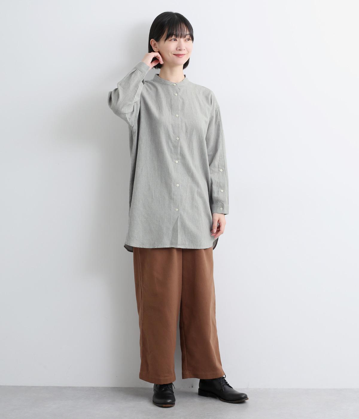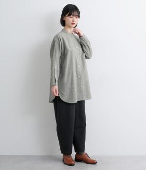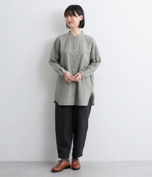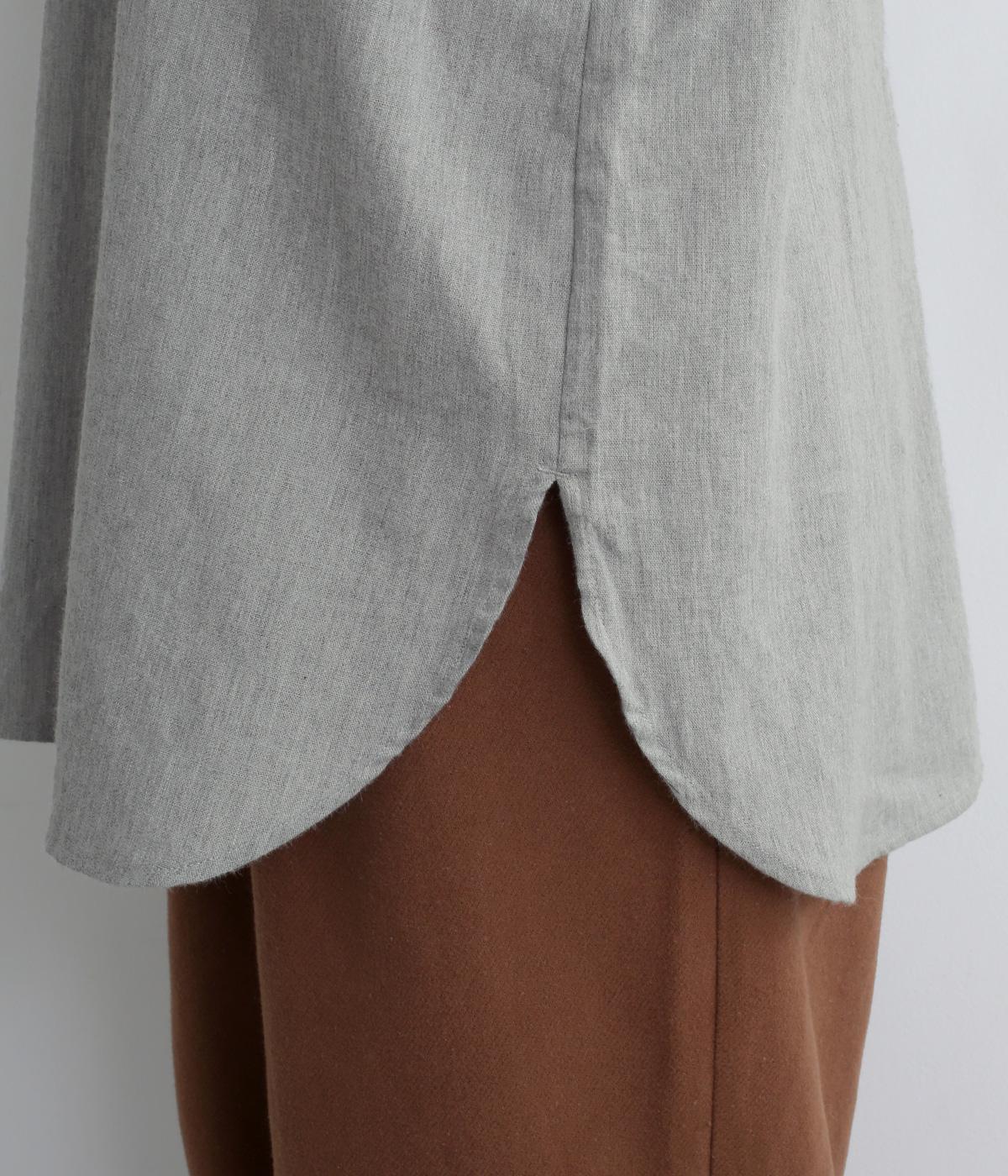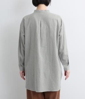 麻特有のシャリ感がほんのりと感じられる、やわらかな風合いのコットンリネン生地です。起毛感をプラスし、やや薄手ながらもあたたかな着心地に。一枚ではもちろん、カーディガンなどのインナー使いにも重宝します。