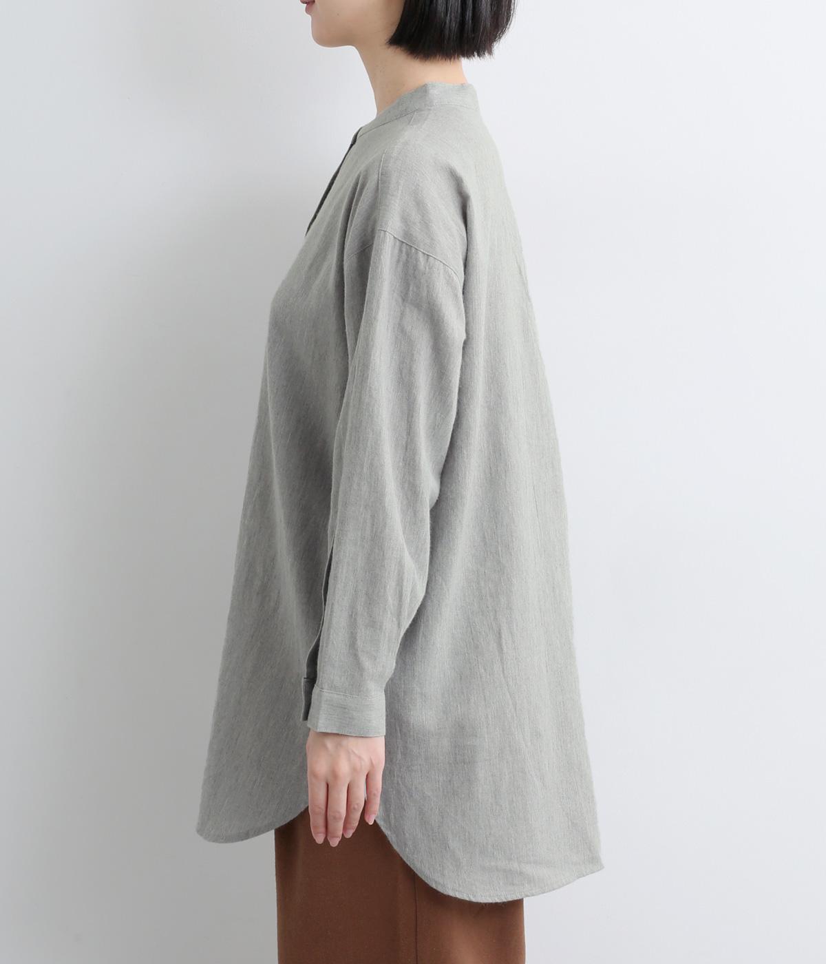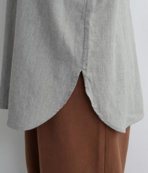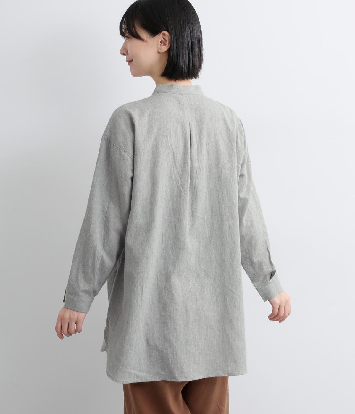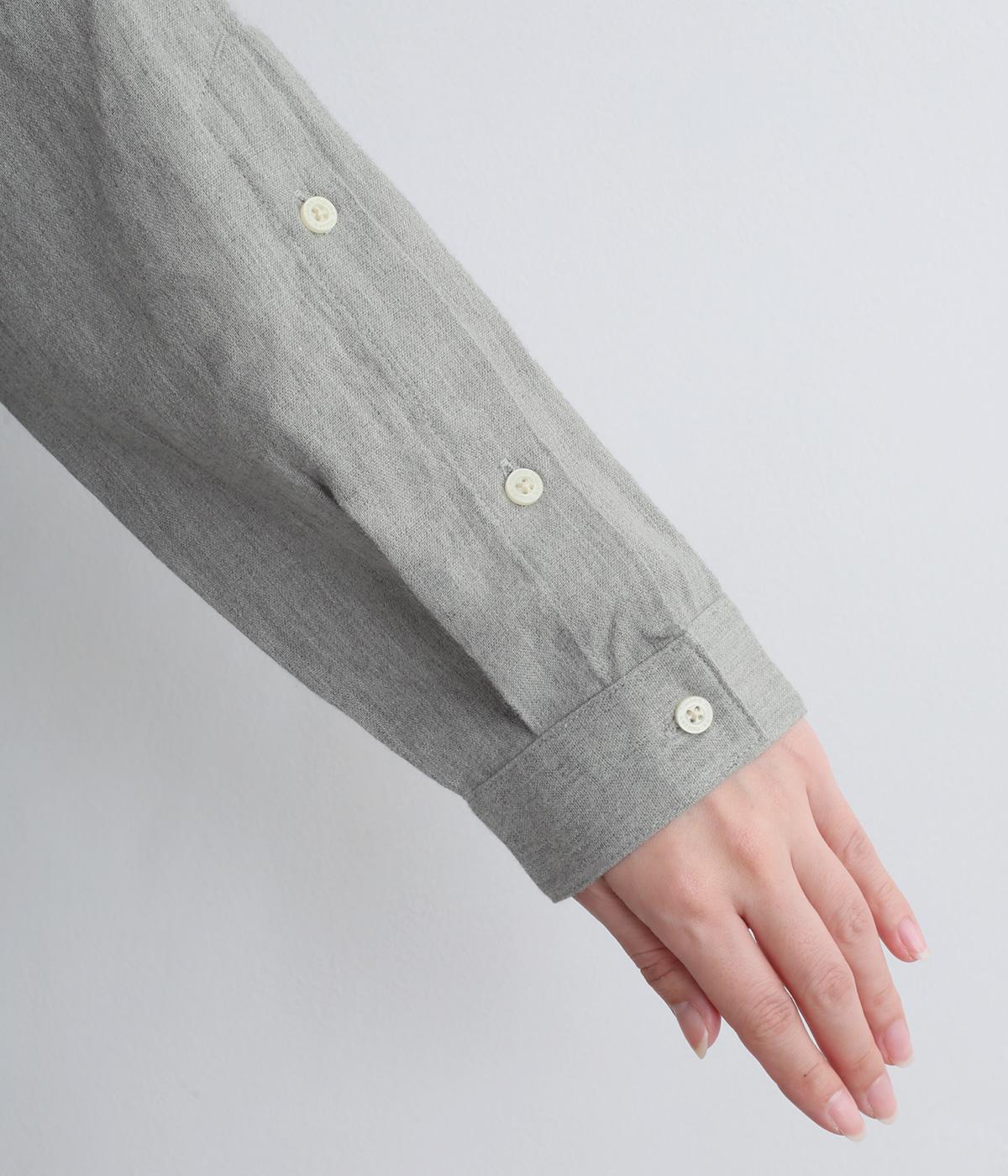 麻特有のシャリ感がほんのりと感じられる、やわらかな風合いのコットンリネン生地です。起毛感をプラスし、やや薄手ながらもあたたかな着心地に。一枚ではもちろん、カーディガンなどのインナー使いにも重宝します。