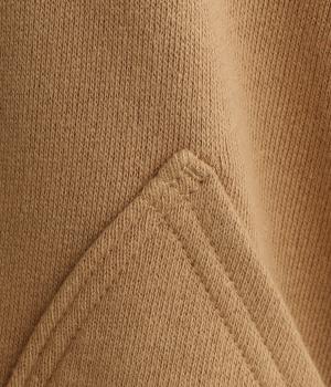 通常の裏毛素材にくらべ、くたっとしたとてもやわらかな風合いに仕上げたガーゼ裏毛生地。汗をかいてもムレにくく、軽いので肩への負担が少なく快適に着ていただけます。