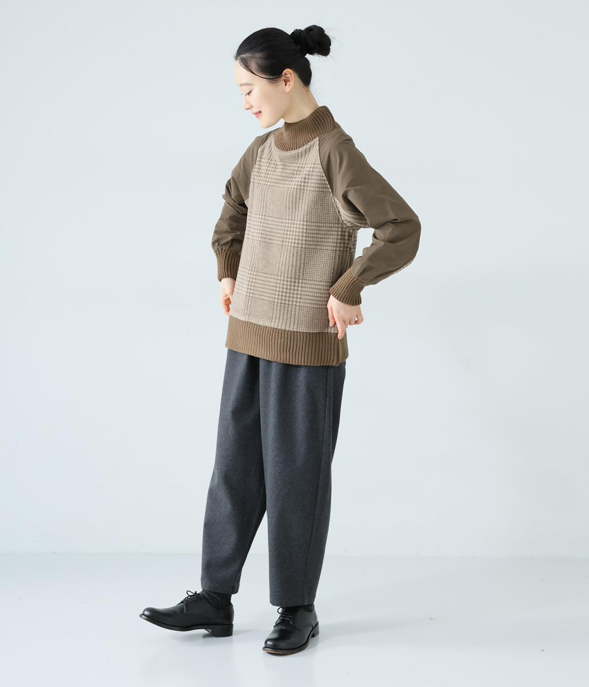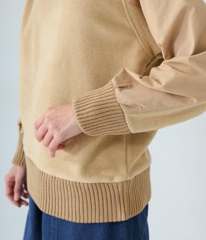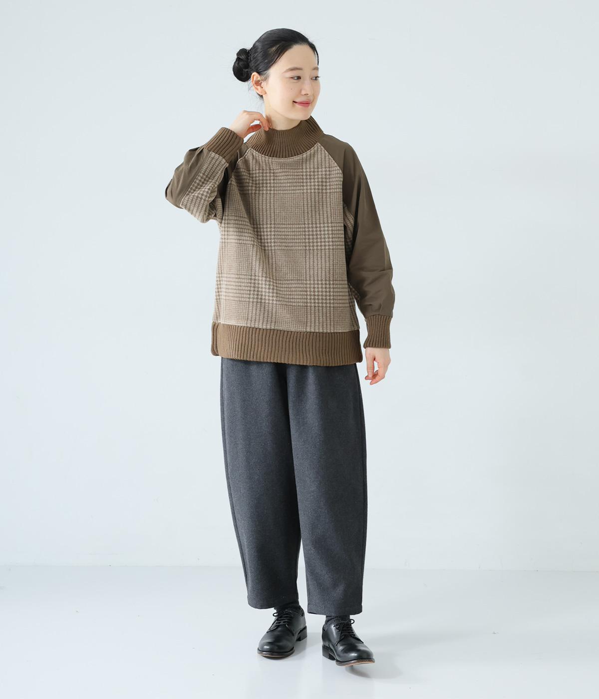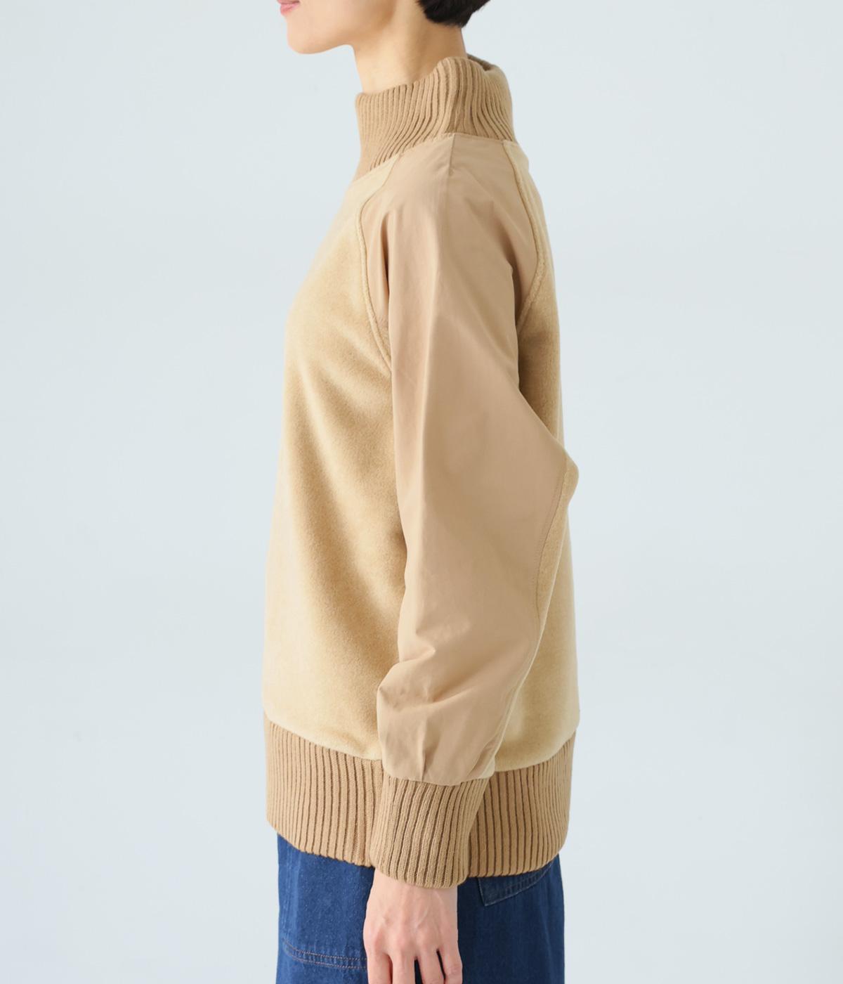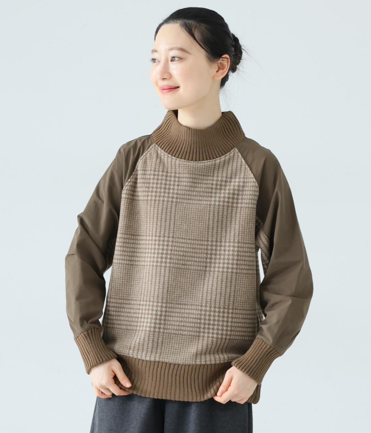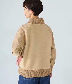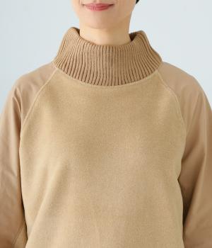 袖部分に布帛生地を組み合わせた表情豊かなプルオーバー。起毛感のある身頃に対し、さらりとした布帛生地が全体をすっきりと見せてくれます。ハイネックや裾と袖口には厚みのあるリブを使用して、カジュアルさとあたたかさをアップしました。