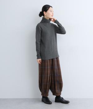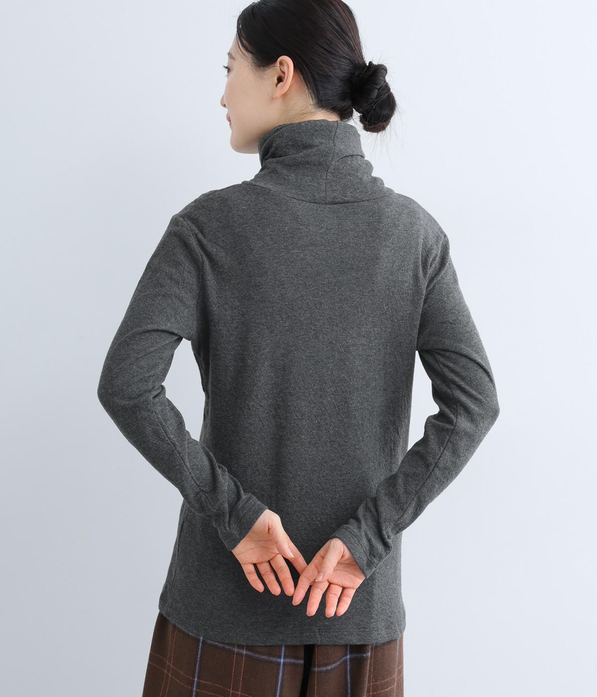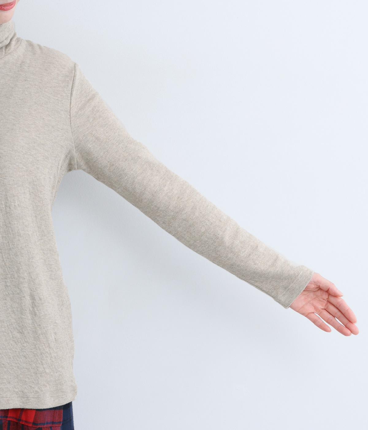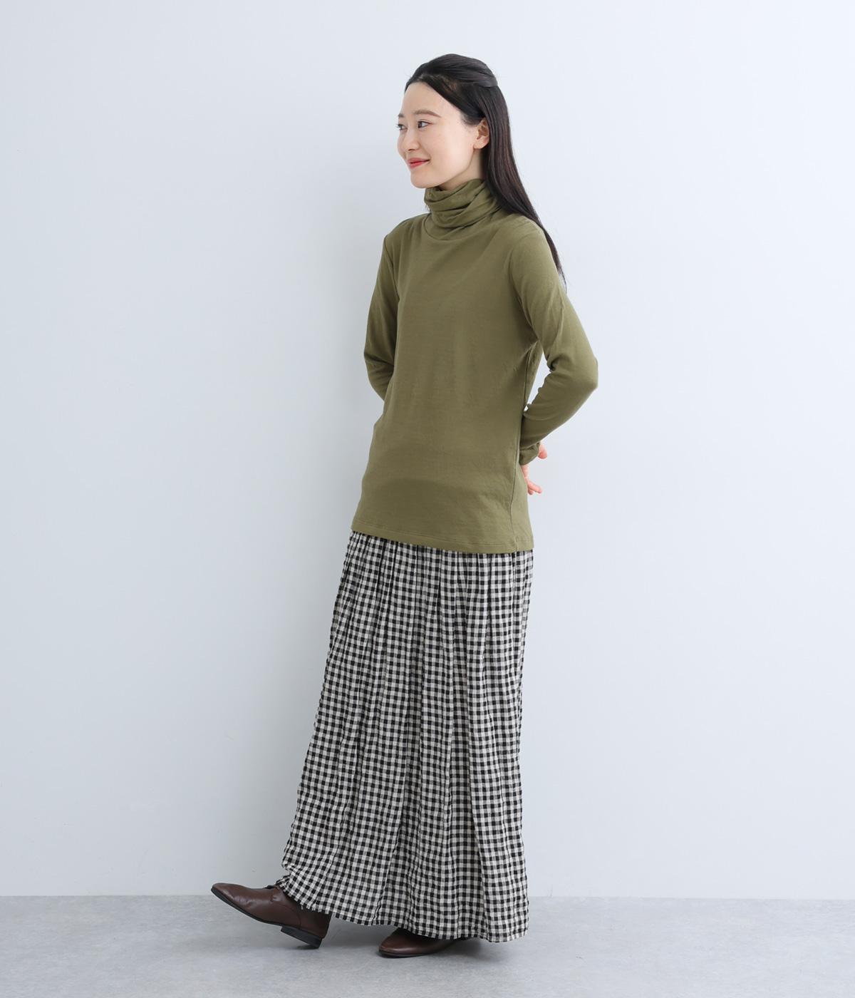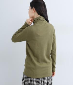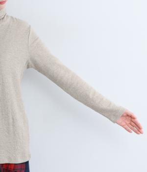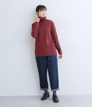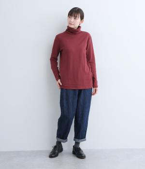 着心地のよさにこだわったシンプルなタートルネックTシャツ。ネック部分は生地を2重にしてねじりを加えボリュームを出しました。さっと着るだけでちょうどいい具合にくしゅっとなるのが◎。一枚でも着やすいよう、身幅はほどよくゆとりを持たせています。