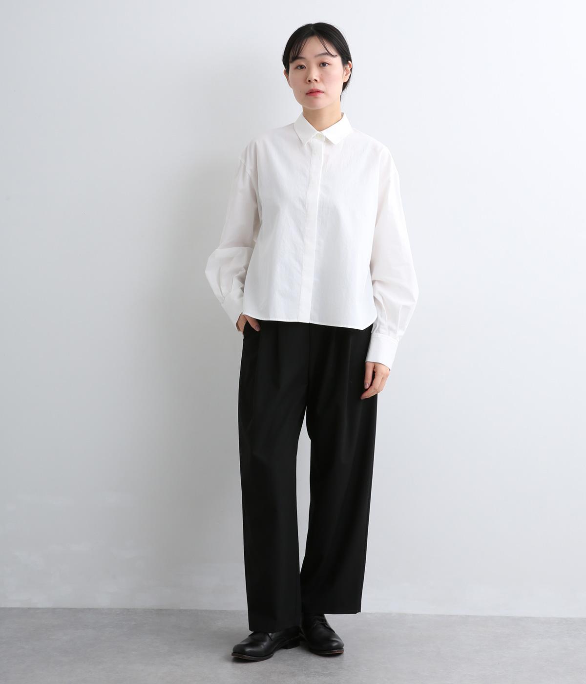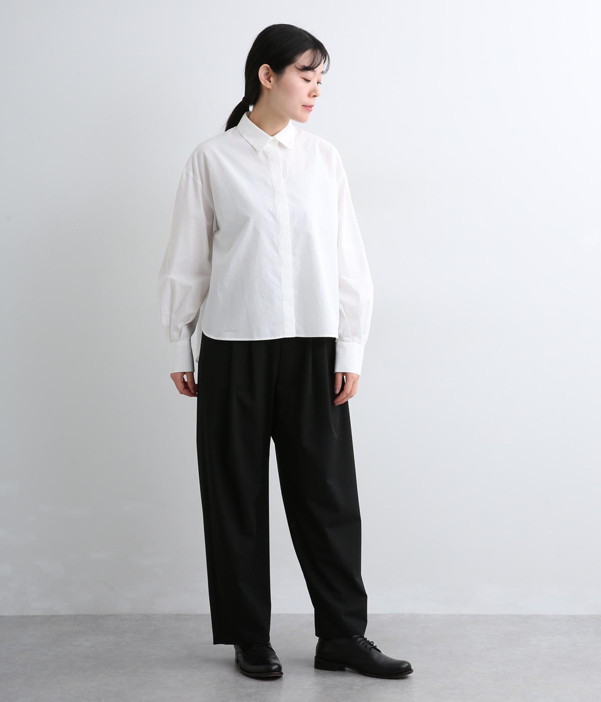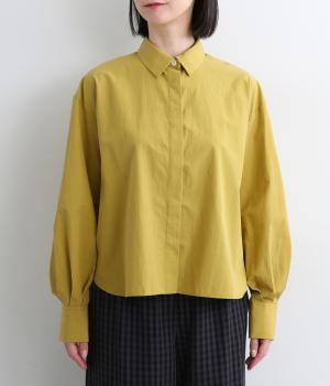 フライフロントで仕立てたすっきりとしたシンプルな表情のシャツ。ボリュームを持たせた袖がこなれた雰囲気を演出します。カフスのふたつボタンが端正な印象で、清潔感のあるきちんとした着こなしに寄り添うアイテムです。