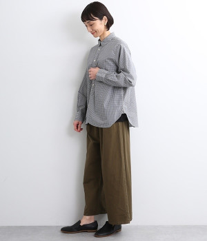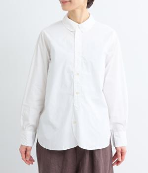 襟や裾の曲線が、ベーシックなシャツに女性らしさをプラスします。一枚ではもちろん、セーターやカーディガンと重ねても◎。すっきりとしたシルエットで、さまざまなスタイリングになじみます。シンプルで飽きのこないアイテムです。