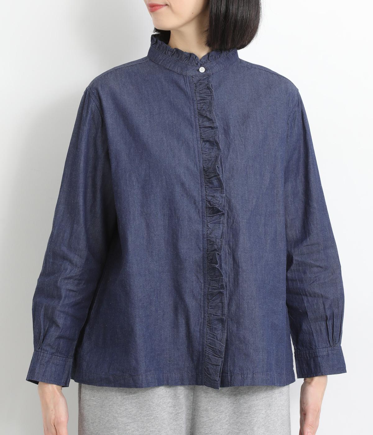 フリルをあしらった比翼デザインが、装いに華やぎを添えるブラウスです。首元もフリルカラーで仕上げ、顔まわりに立体感をプラス。袖口は丸みが出すぎないひかえめなギャザーを施し、上品なシルエットに落とし込んでいます。きれいめにもカジュアルにも合わせやすい、万能な一枚です。