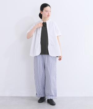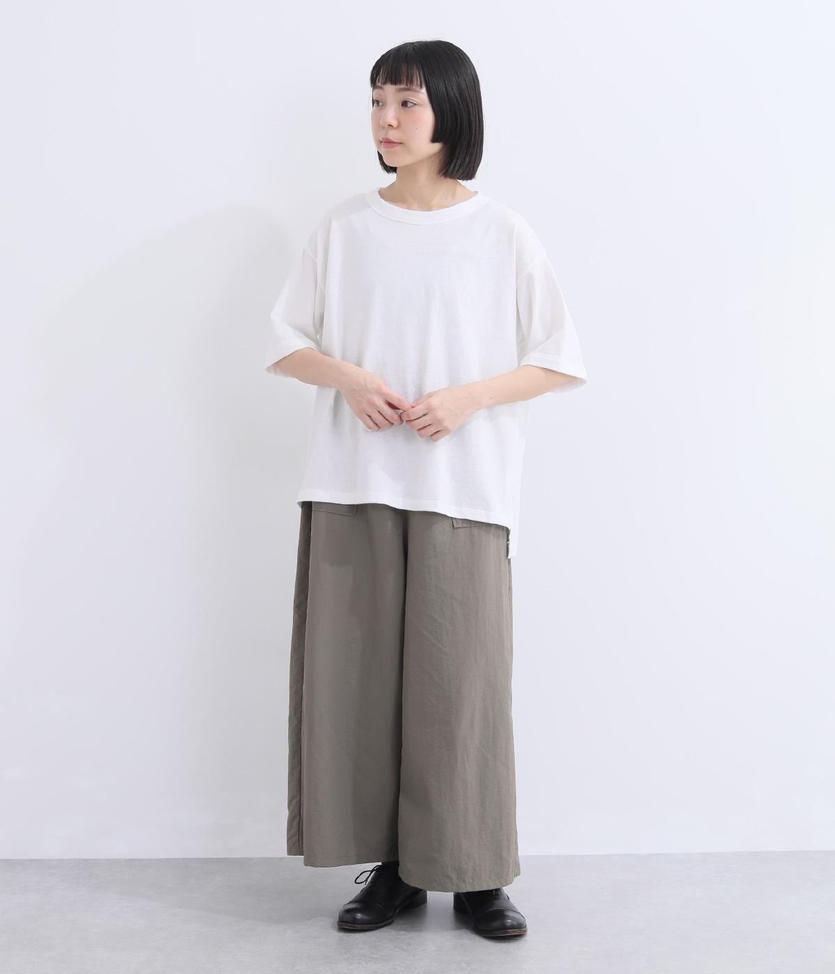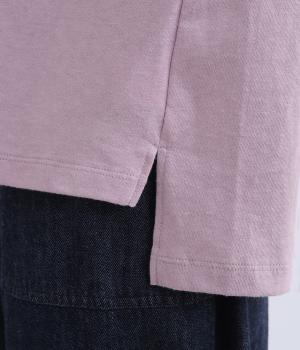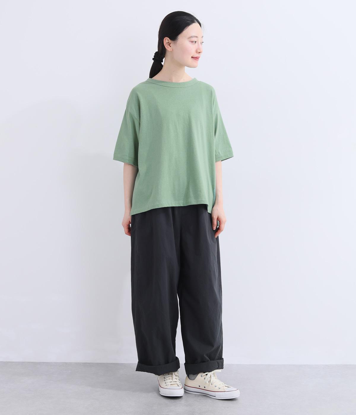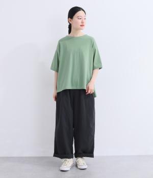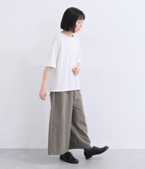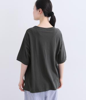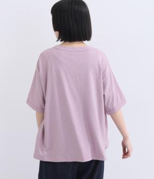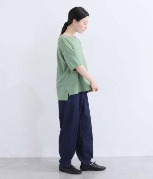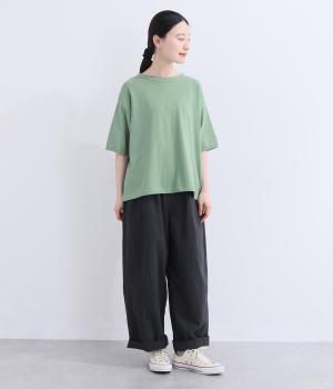 表情のある生地の風合いを生かしたシンプルなTシャツです。気になる二の腕をしっかりカバーする5分袖や、ゆったりとしたシルエットで安心感のある着心地。さりげなく前後差のある裾がさりげなくニュアンスを添えています。