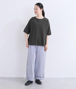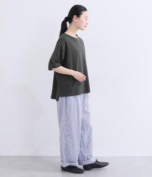 ふんわり軽やかで柔らかな天竺生地です。自然なムラ感がほどよいヴィンテージの風合いを生み、滑らかな肌触りで上質な着心地を叶える、毎日を心地よく過ごせる素材です。