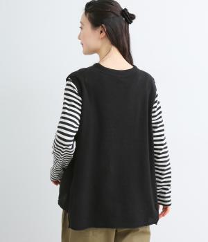 やわらかなコットンの手ざわりが心地よく肌になじみます。伸縮性があり、ふわりと軽やかな素材感です。優しいナチュラルな雰囲気です。