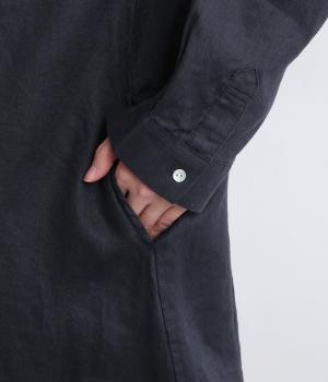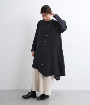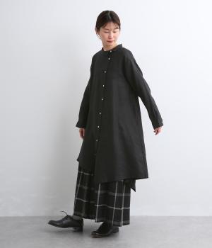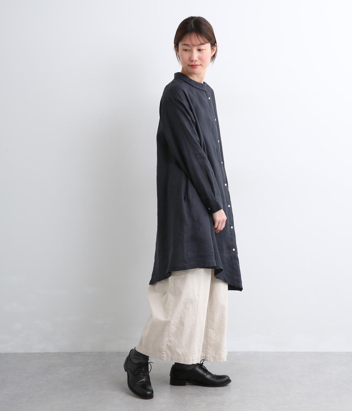 独特のシャリ感は残しつつ、やや薄手でなめらかに仕上げた14番手リネンを使用しています。軽やかに風になびく涼し気な風合いに、リネン特有の着るほどになじむ経年変化が魅力です。
