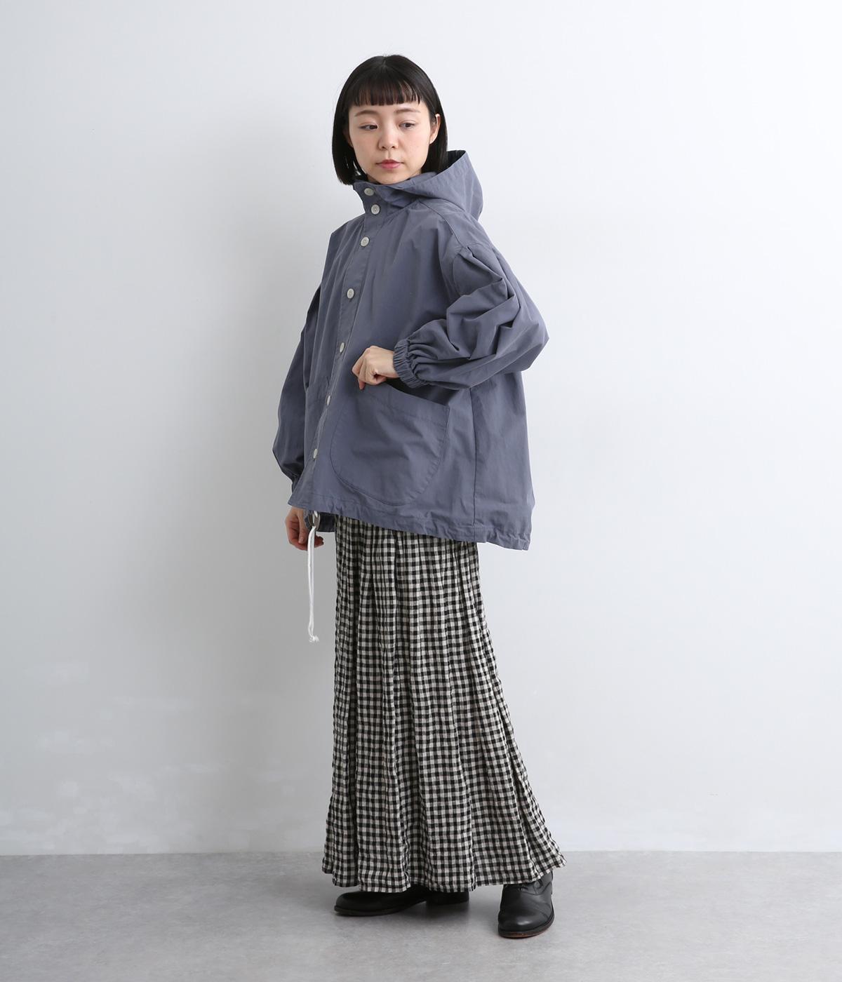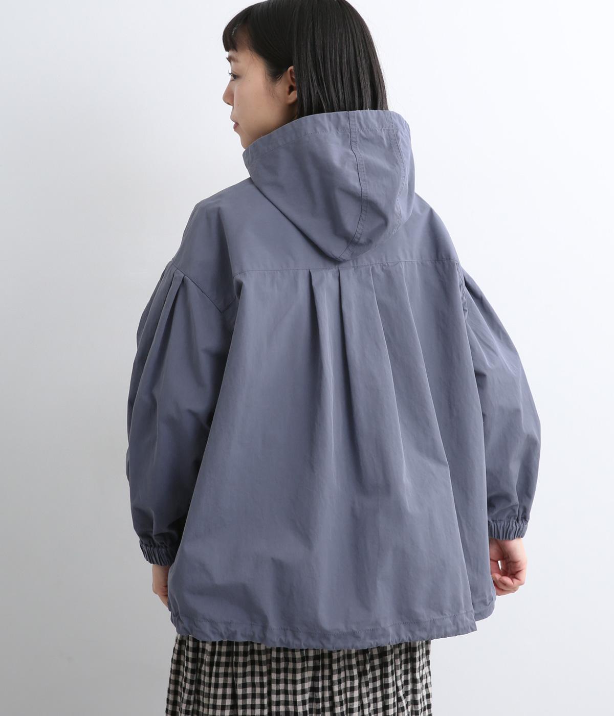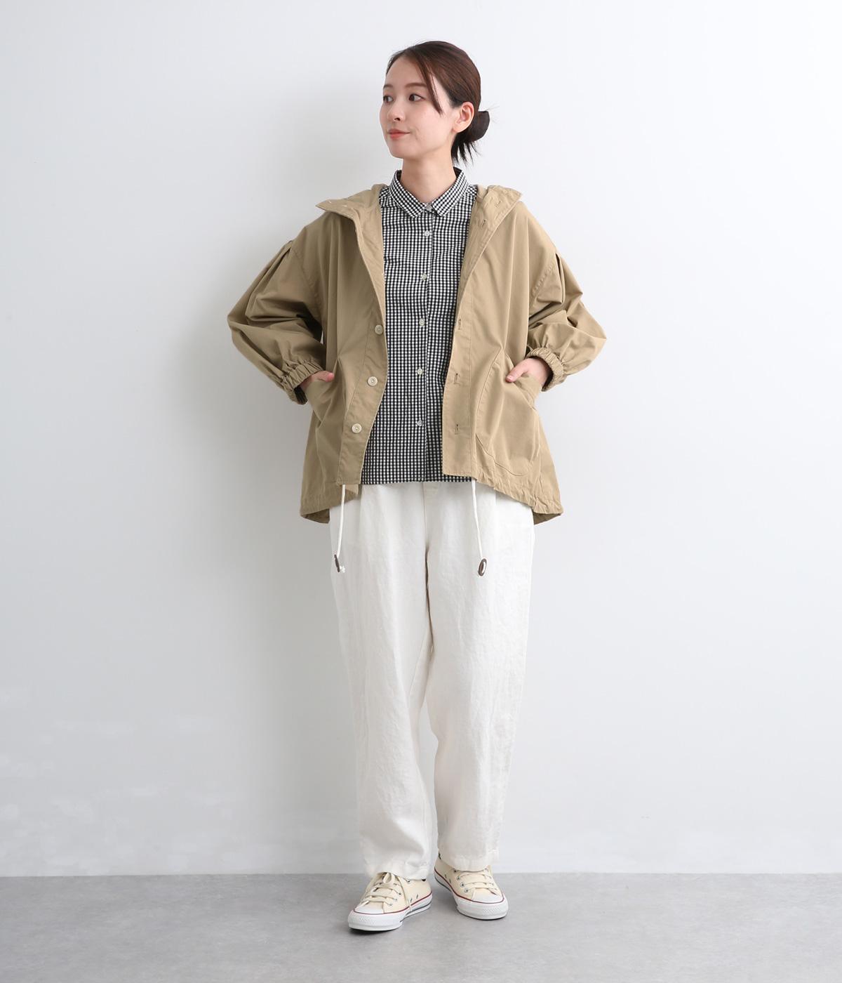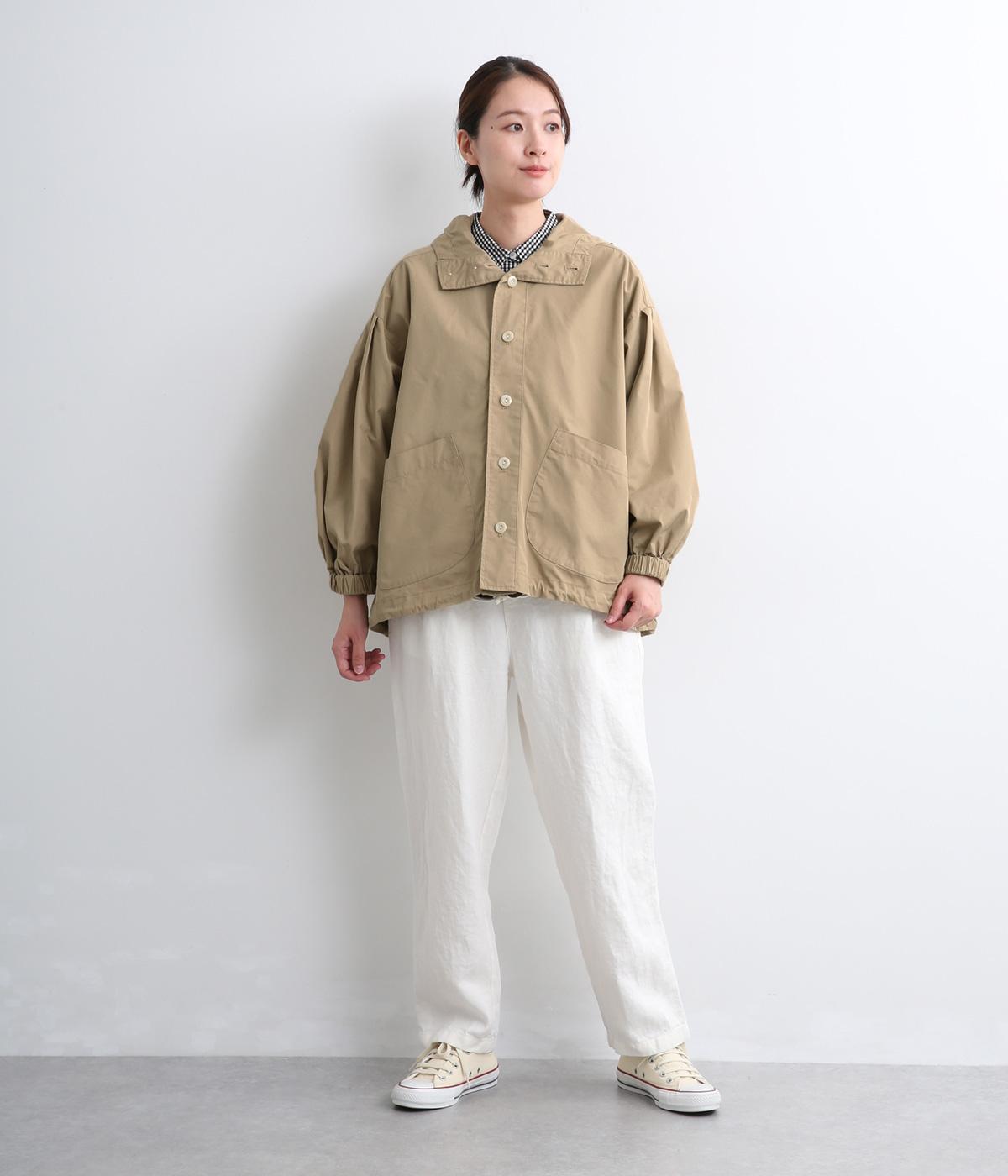 カジュアルテイストなフードつきブルゾンにふっくらとしたタックスリーブをあわせて女性らしい要素を追加。ゆったりしたシルエットは裾のコードでアレンジがたのしめ、ハリのある素材が立体的にみせます。袖口ゴムでたくし上げもイージー。