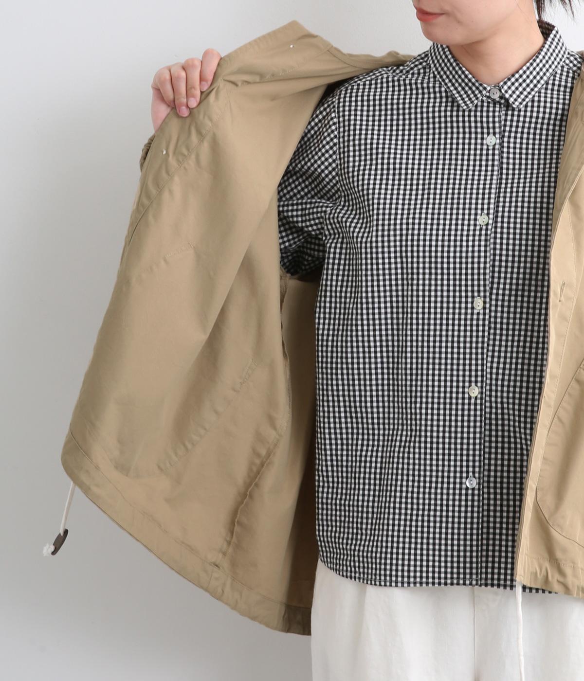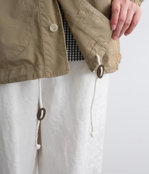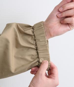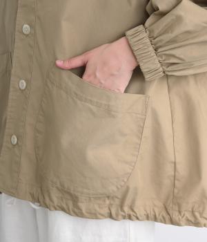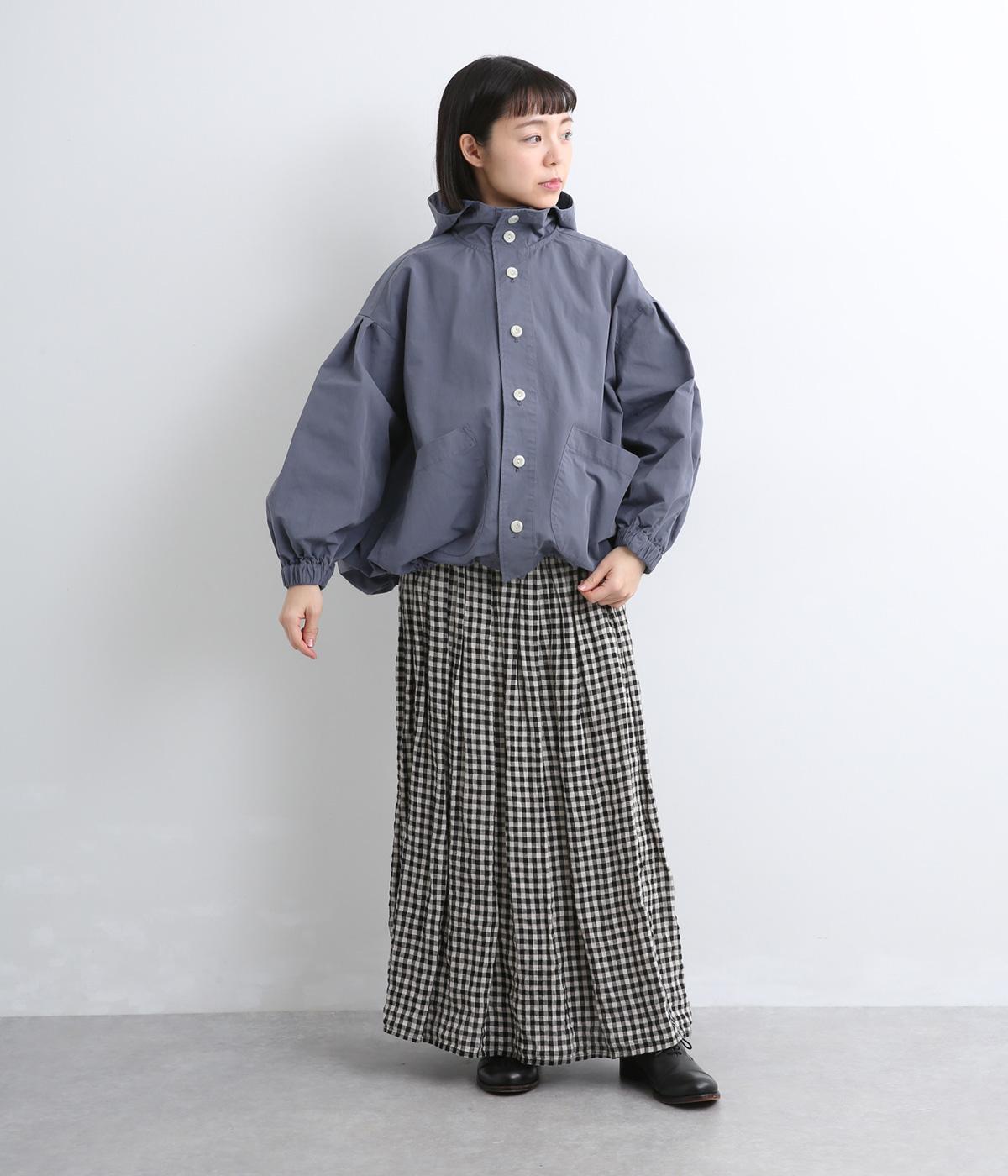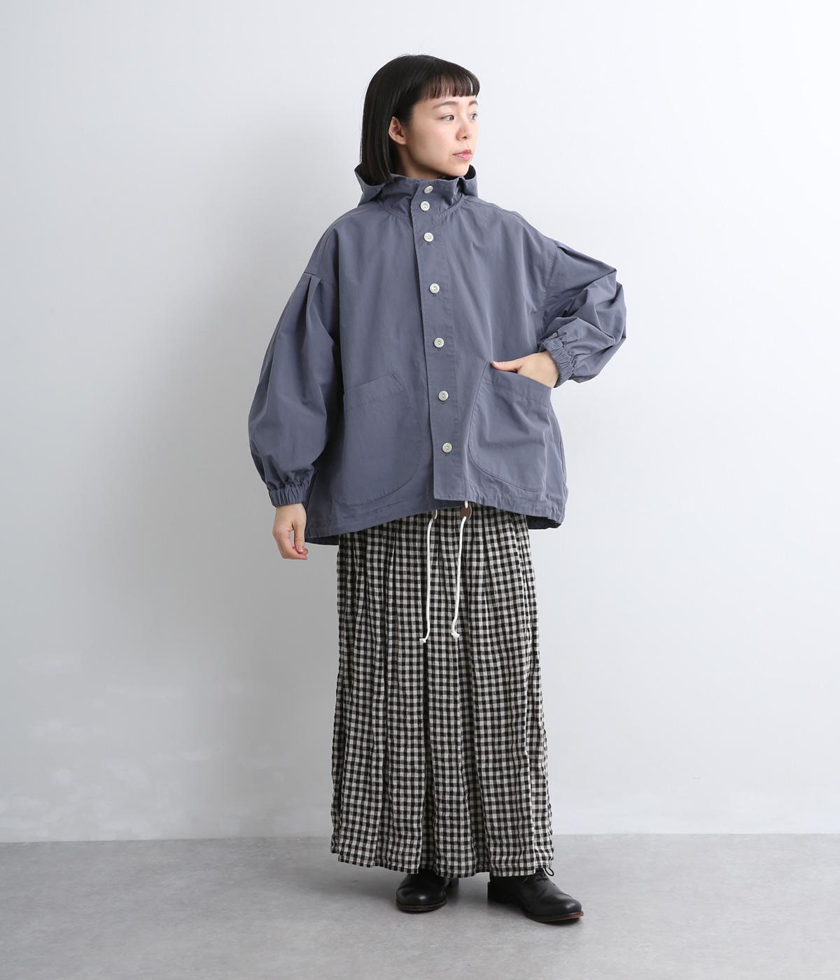 カジュアルテイストなフードつきブルゾンにふっくらとしたタックスリーブをあわせて女性らしい要素を追加。ゆったりしたシルエットは裾のコードでアレンジがたのしめ、ハリのある素材が立体的にみせます。袖口ゴムでたくし上げもイージー。