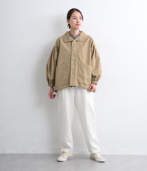 コットンとポリエステルをミックスさせた混紡生地を採用。綿のナチュラルさを残しながらもハリとシャリ感を加えてタフな仕上がりになっています。