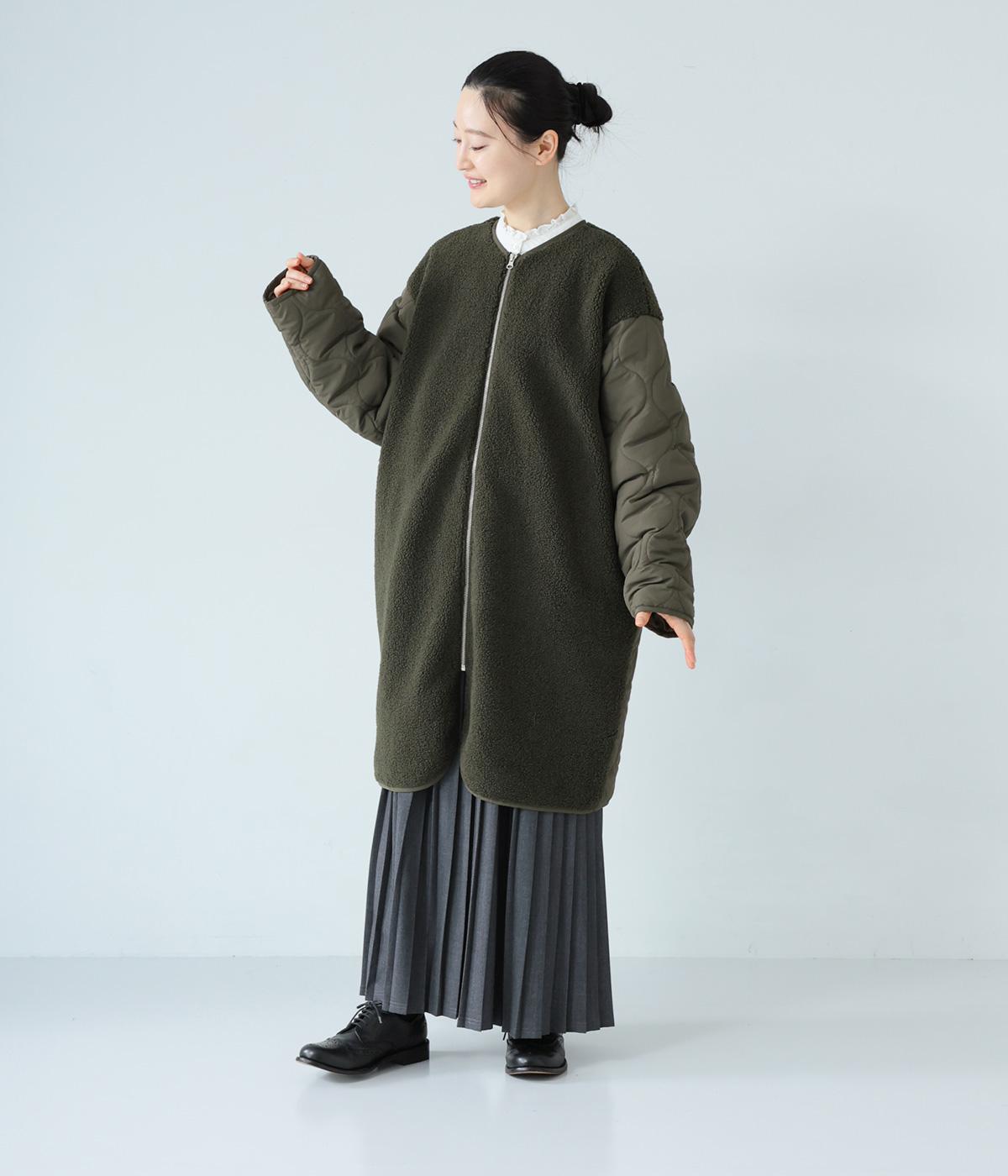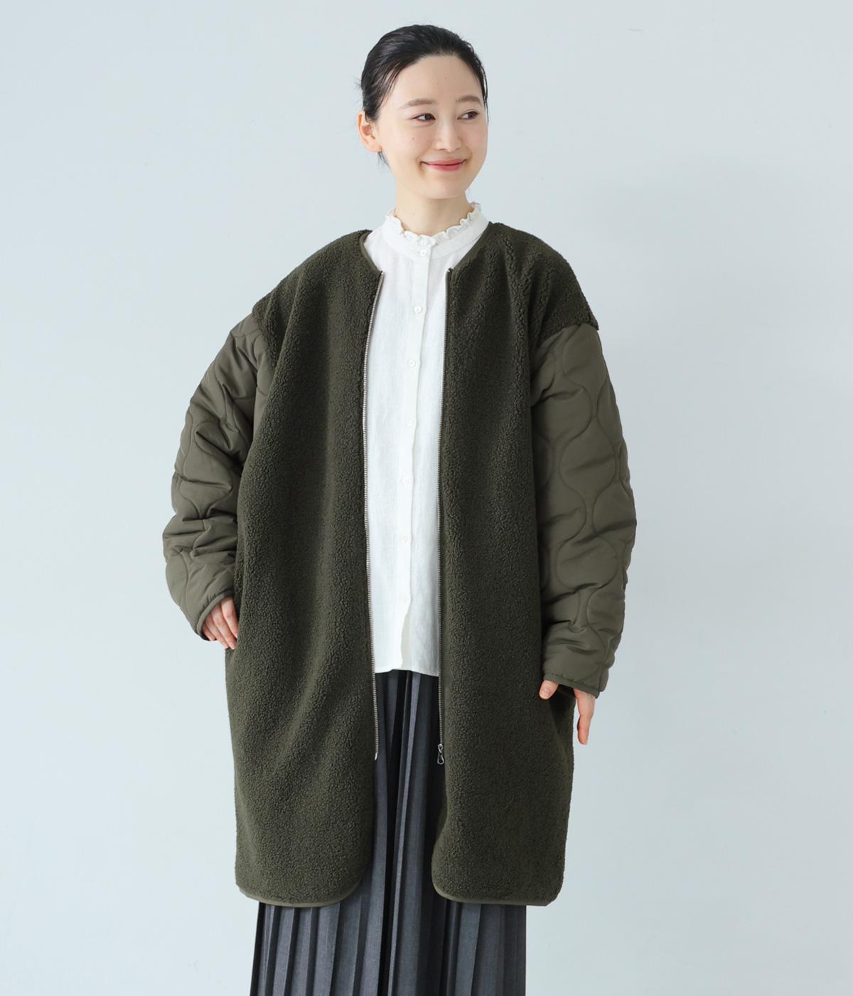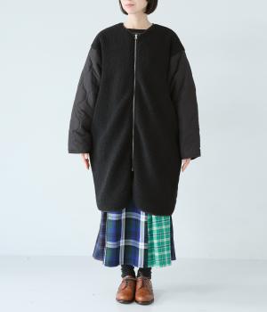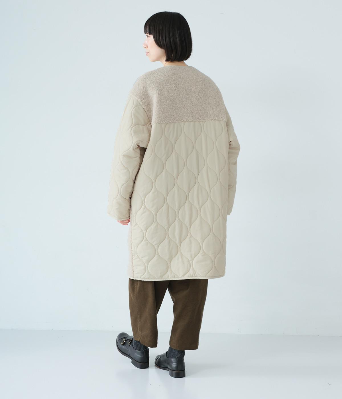 ノーカラーにフロントファスナーの洗練されたルックスで、大人のカジュアルスタイルにおすすめのコートです。ボア×キルティングで、シンプルながらも存在感たっぷり。裾は動きやすいラウンドカットのデザインです。