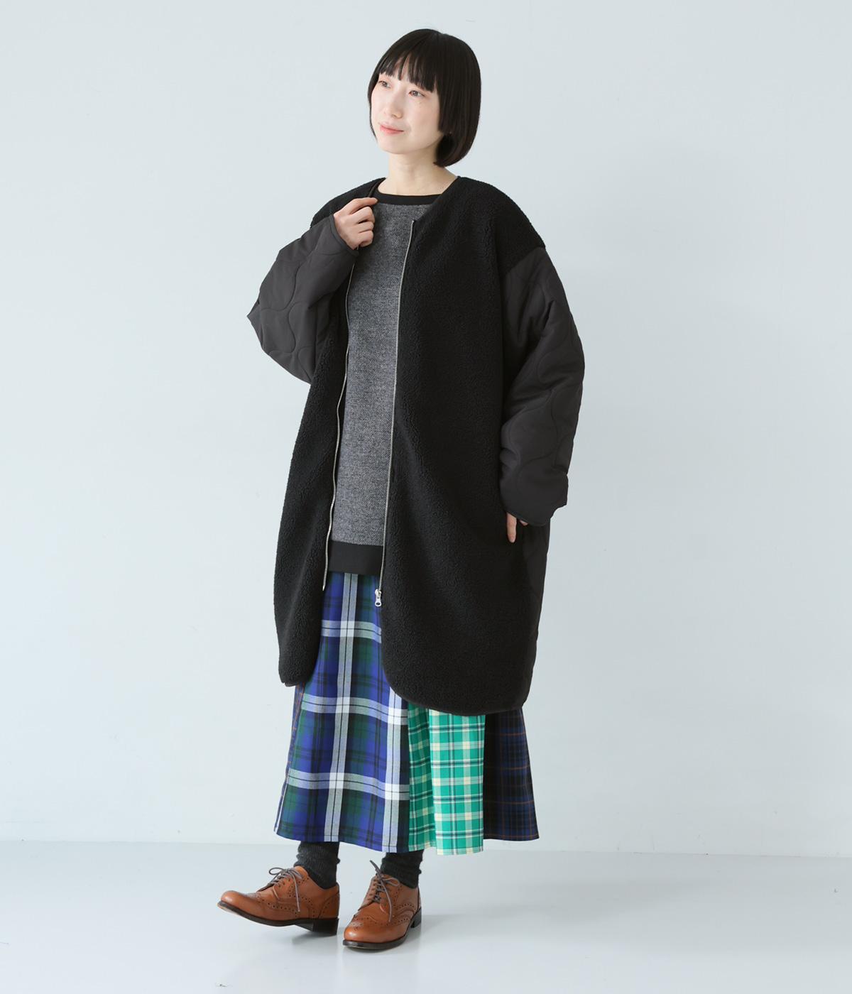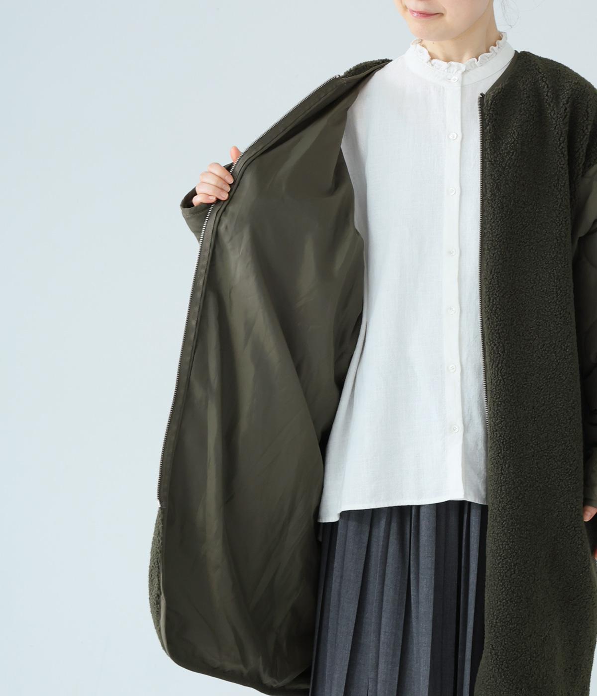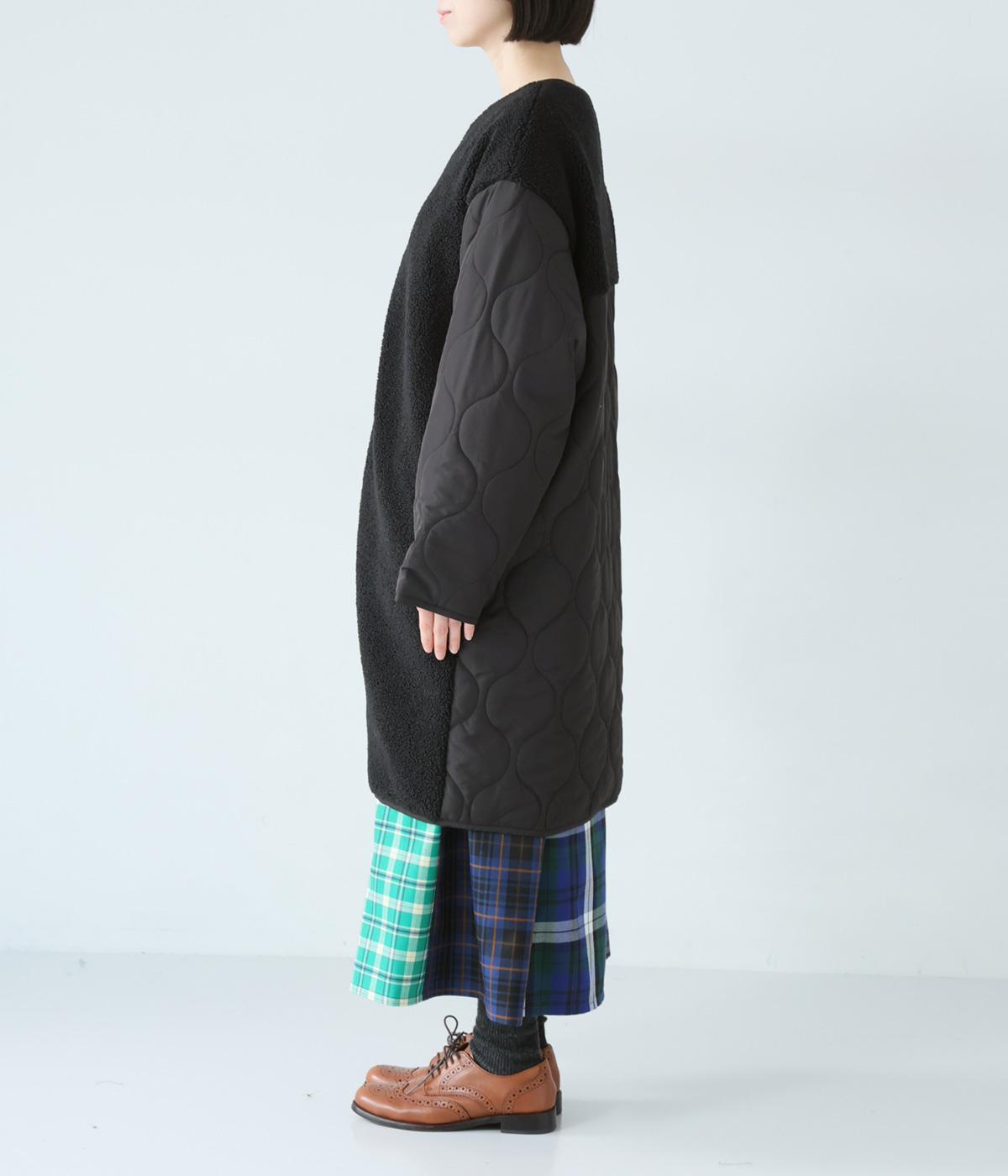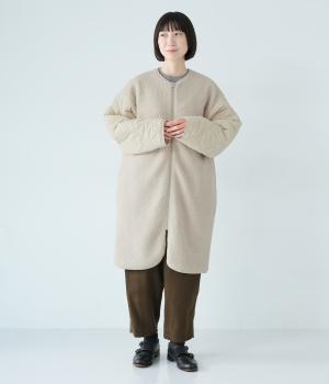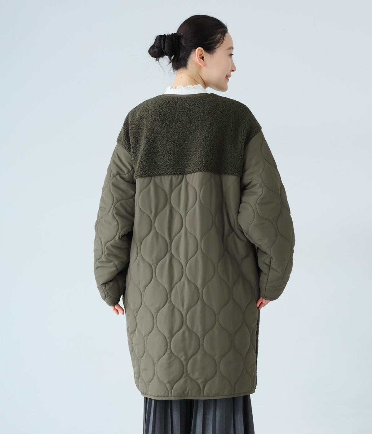 ノーカラーにフロントファスナーの洗練されたルックスで、大人のカジュアルスタイルにおすすめのコートです。ボア×キルティングで、シンプルながらも存在感たっぷり。裾は動きやすいラウンドカットのデザインです。