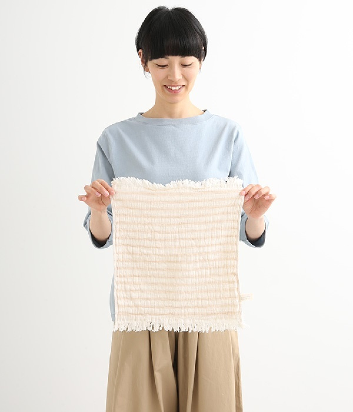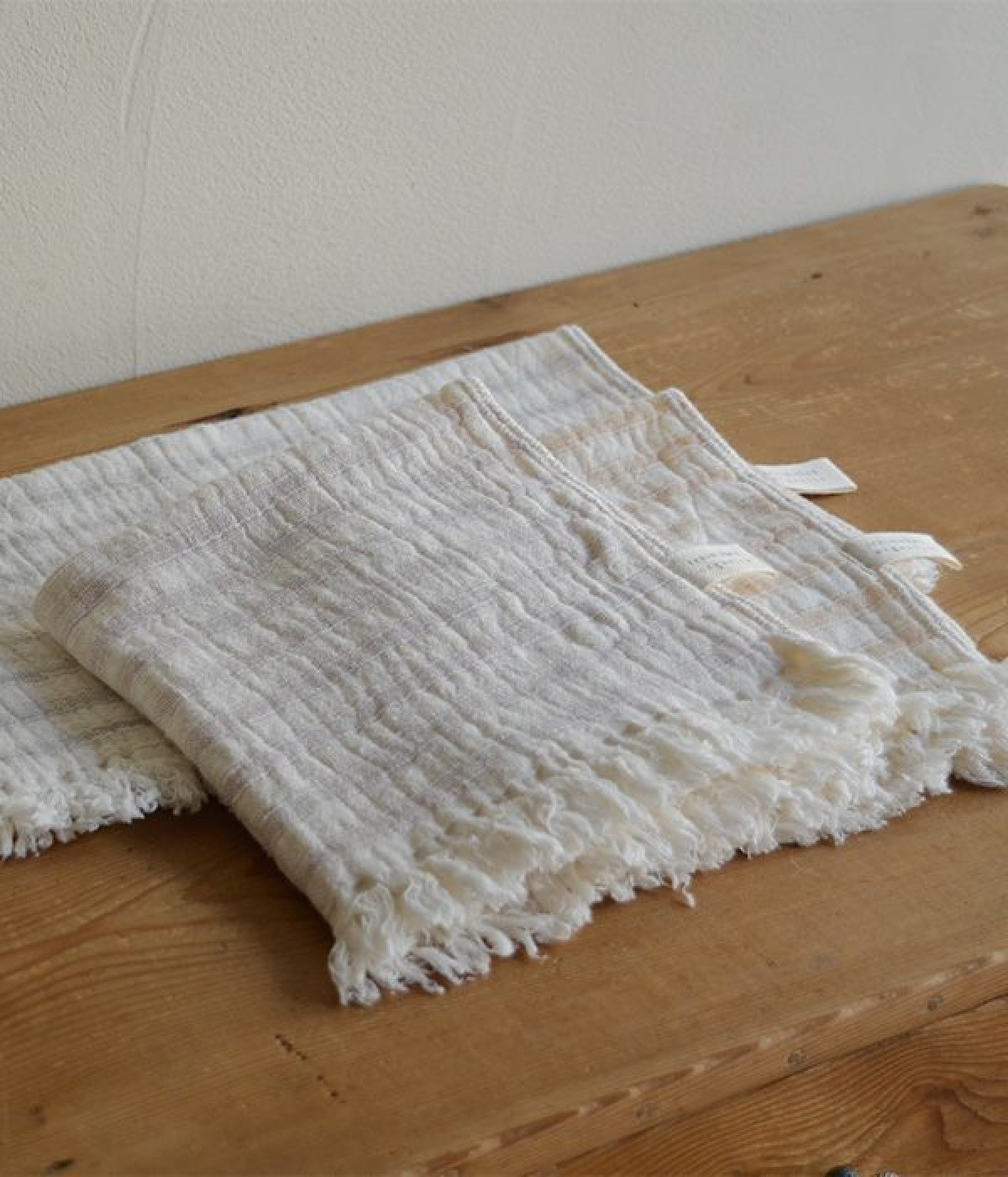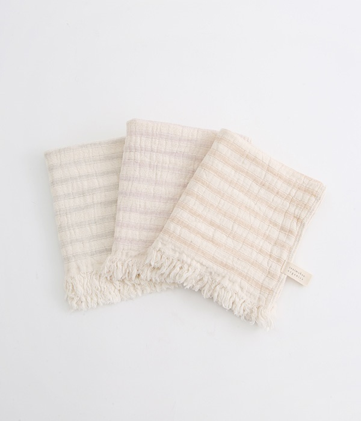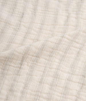 ガーゼとパイルを二重織りにしたオーガニックコットンのウォッシュタオルです。ガーゼ面のボーダー部分には一本の糸に太いところと細いところの差をつけて凹凸出した、手紡ぎ風のブランドオリジナル「スラブ糸」を使用しています。ふっくらしわしわとした風合いが気持ちの良い肌触り。軽量なのにボリュームがあるのもこのスラブ糸の特徴です。