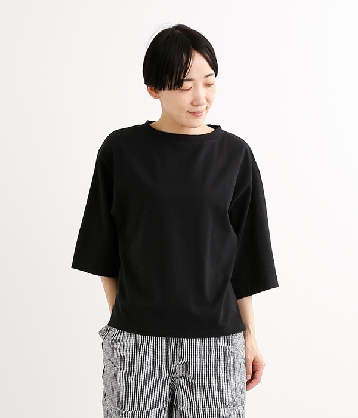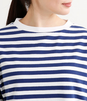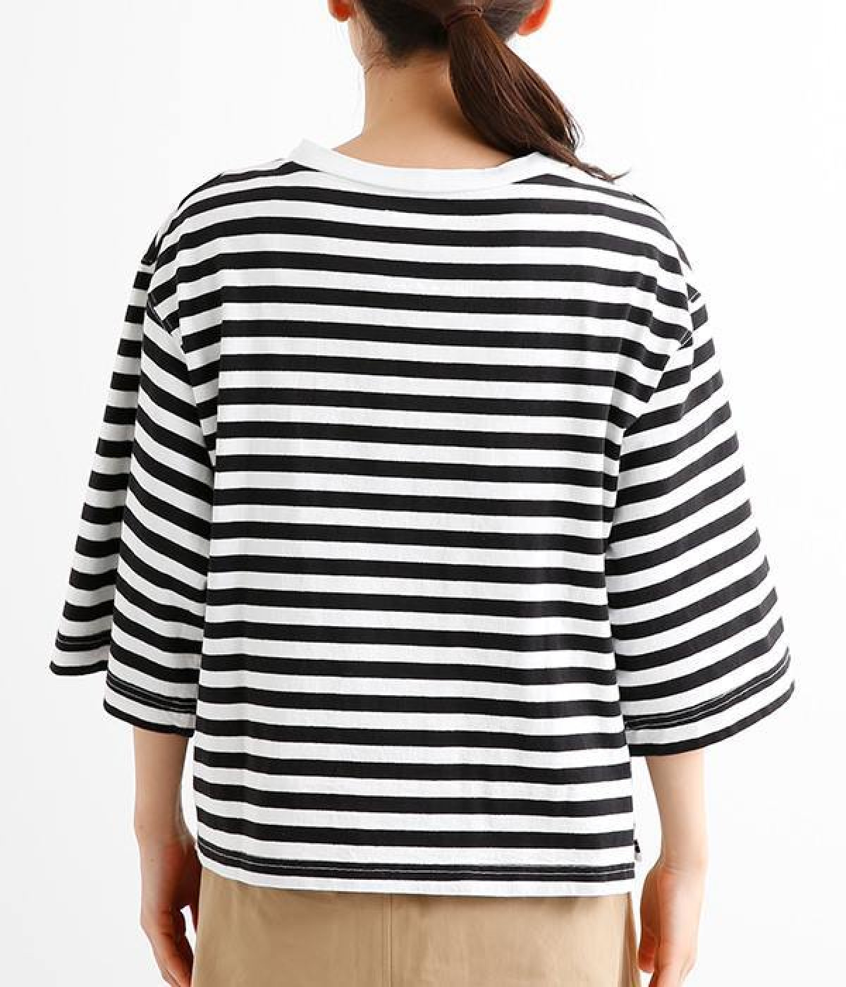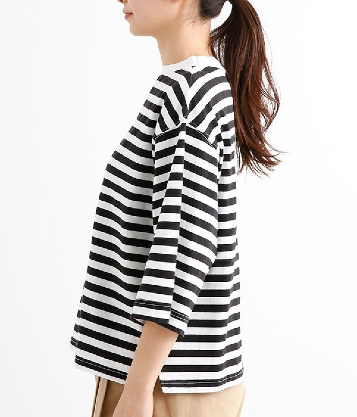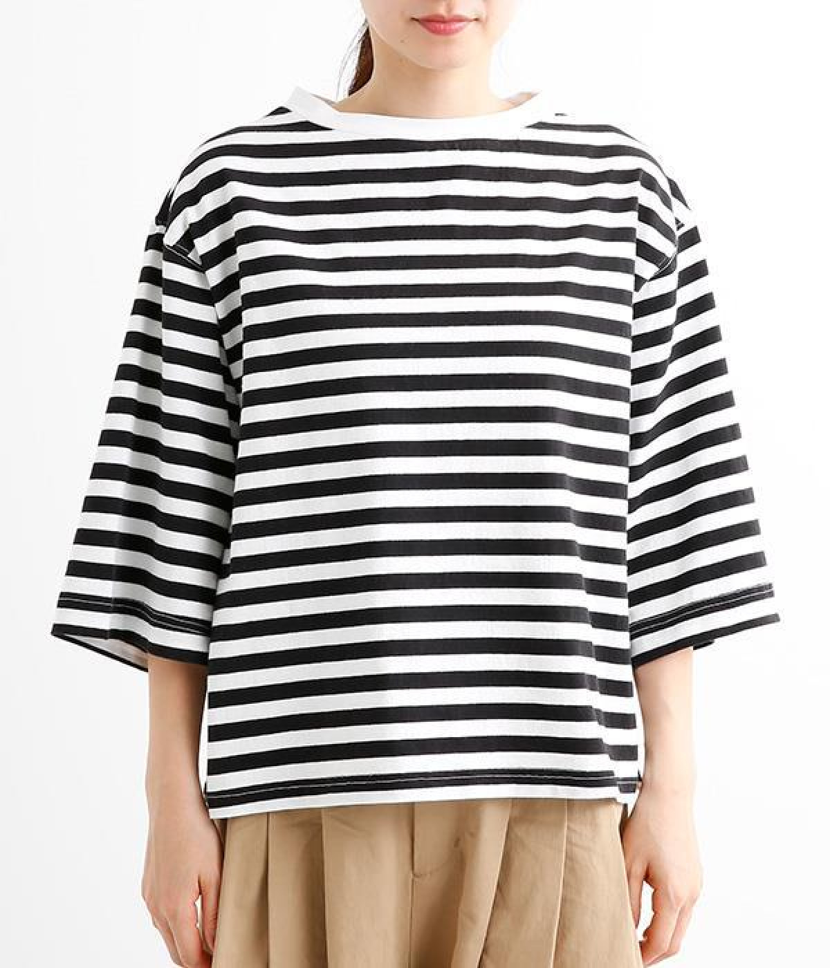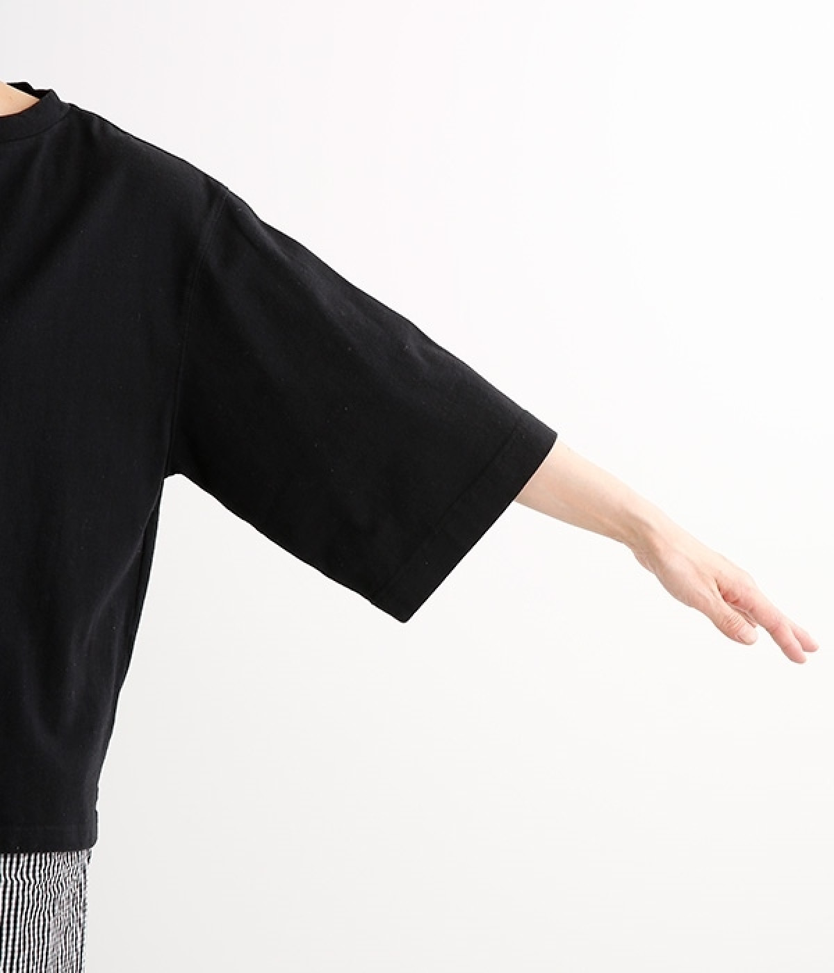 ワイドな肩落ちシルエットの袖や、オーバーシルエットがラフな印象を与えるTシャツです。ふっくらと柔らかで伸縮性のあるコットン素材で着心地も抜群。ボリュームがありながら、短めの着丈ややや立ち上がったクルーネックがすっきり見せるポイントに。ワイドパンツやマキシ丈スカートとのリラックスした着こなしもおすすめです。