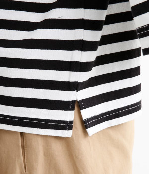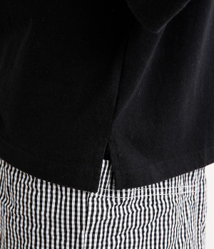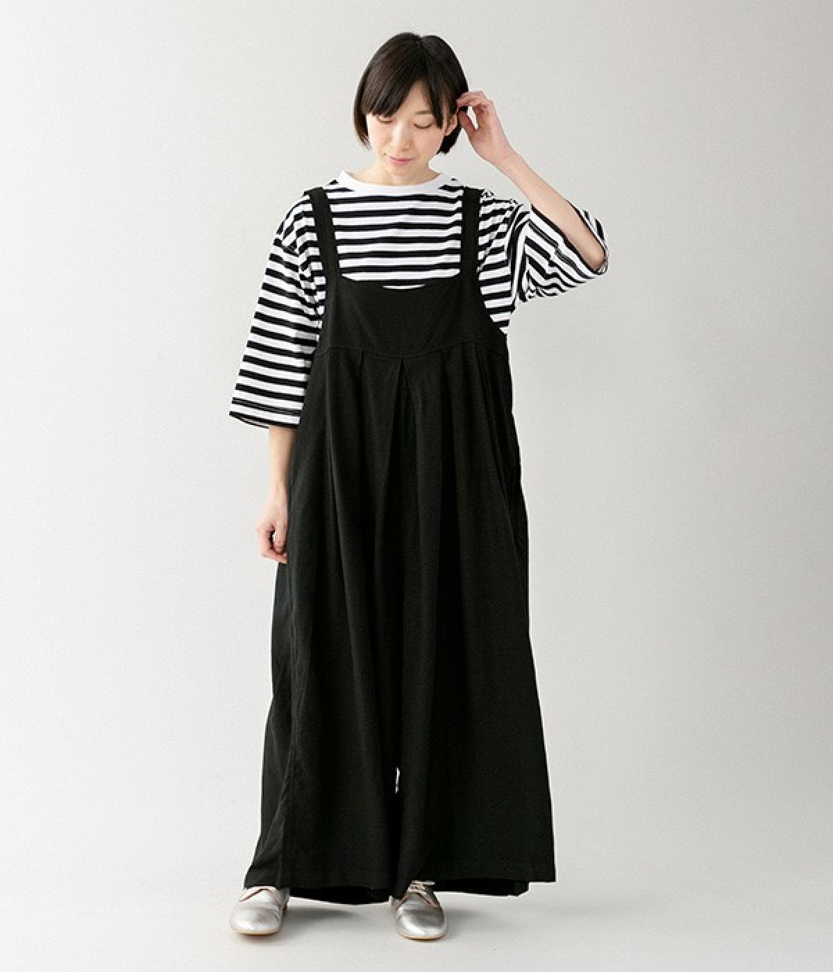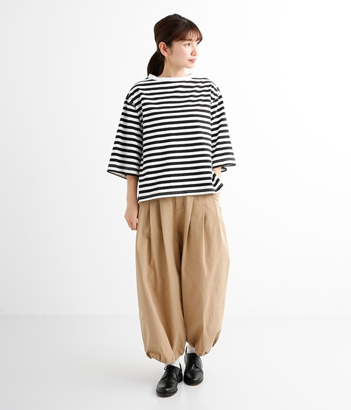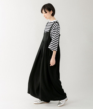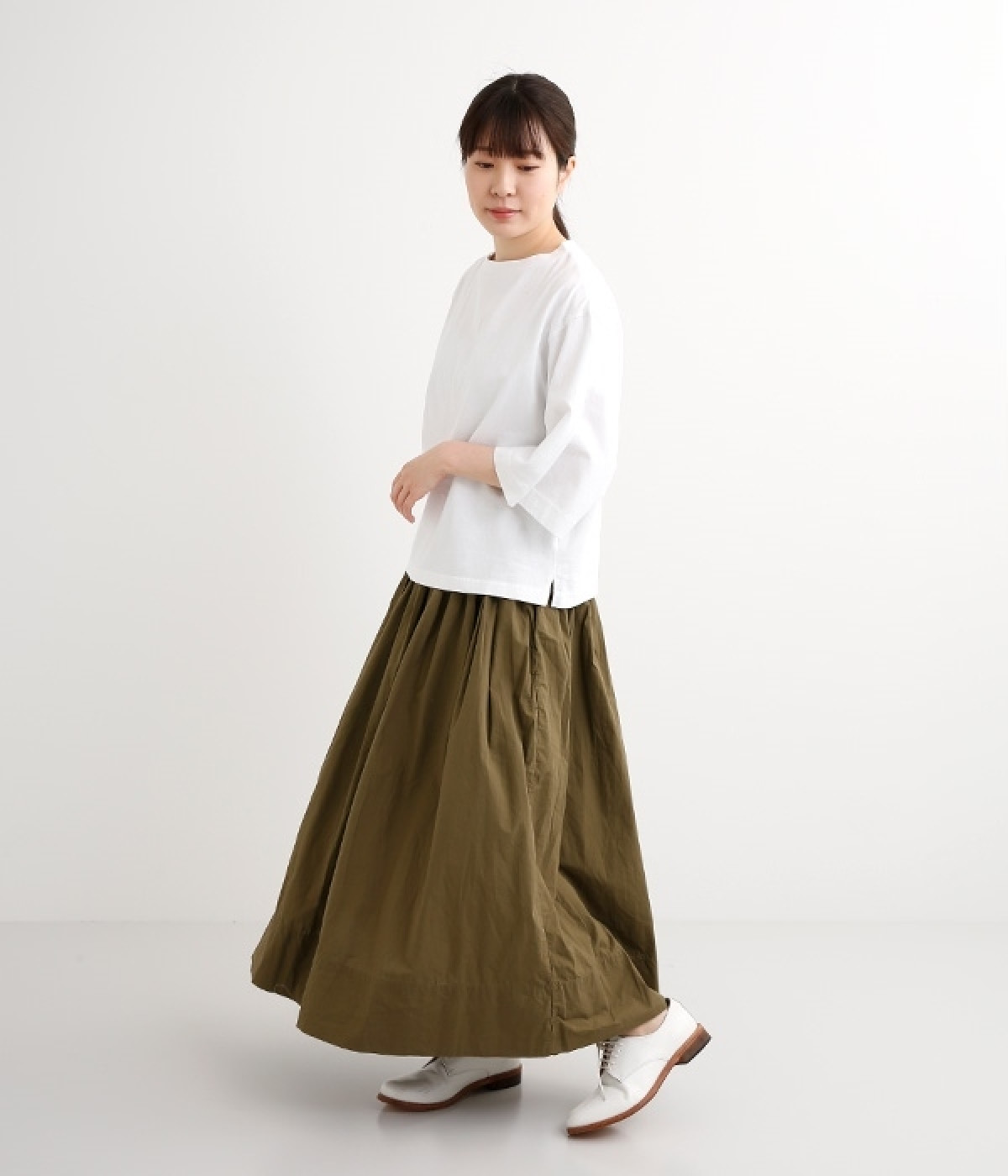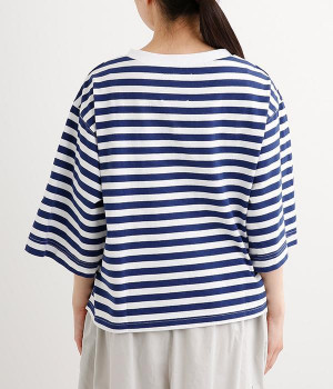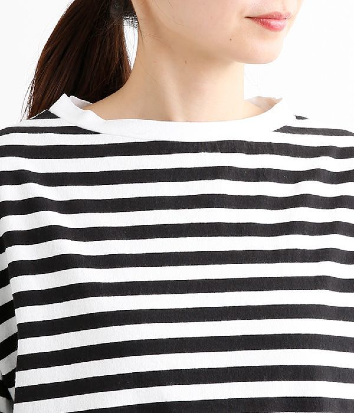 ワイドな肩落ちシルエットの袖や、オーバーシルエットがラフな印象を与えるTシャツです。ふっくらと柔らかで伸縮性のあるコットン素材で着心地も抜群。ボリュームがありながら、短めの着丈ややや立ち上がったクルーネックがすっきり見せるポイントに。ワイドパンツやマキシ丈スカートとのリラックスした着こなしもおすすめです。