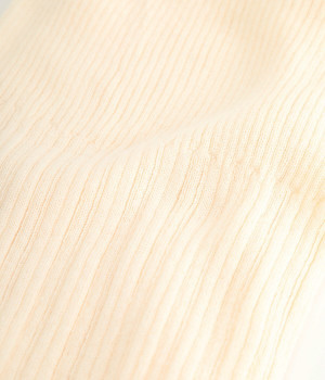 互い違いになって凹凸ができることで体のラインを拾いすぎず、すっきり感を出せるテレコ素材を使用しています。さらっとしたコットン素材で伸びも良く着用感も◎。