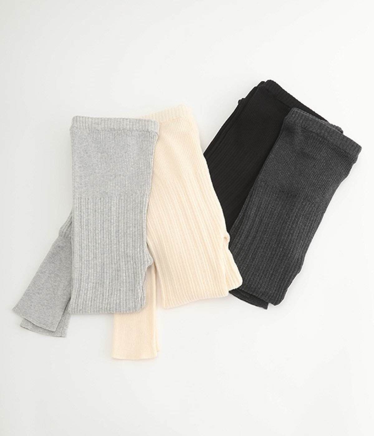 ランダム編みのボディとすっきりとした足首でリブ編みに変化をつけたレギンスです。心地よくフィットするのでレイヤードしやすく、寒い季節は防寒としても活躍します。ウエストは安定感のある平ゴム入りです。