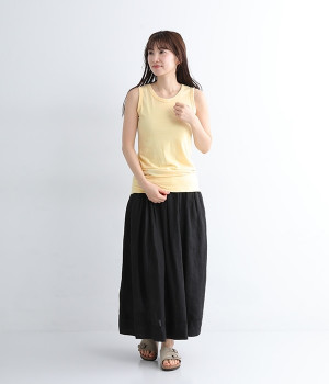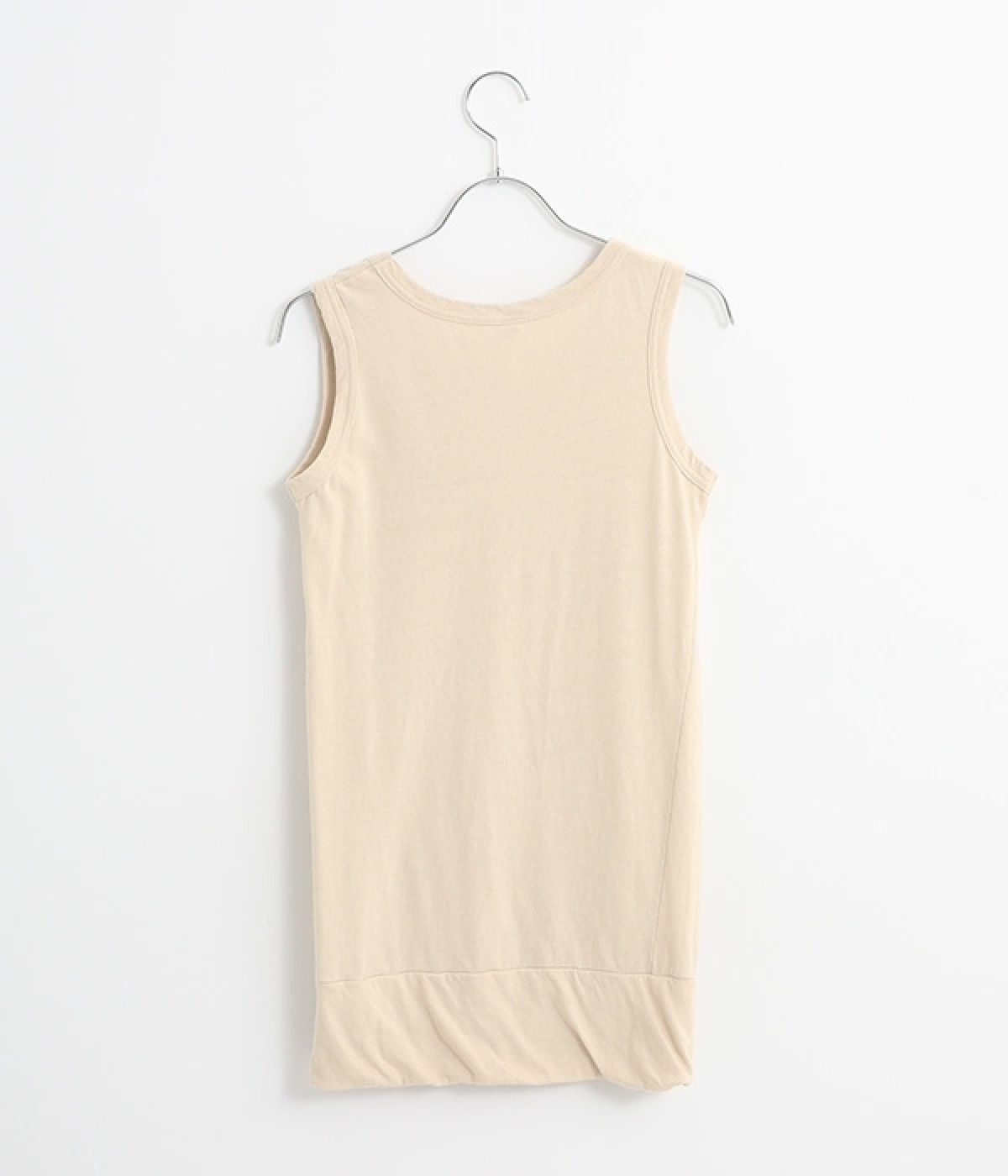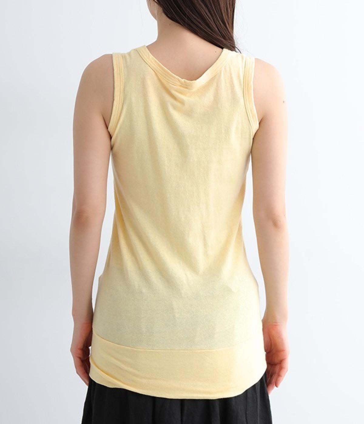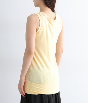 柔らかく肌触りの良いラフィーガーゼ生地で仕立てたタンクトップです。着丈が長めの程よくフィットするシルエットで、さまざまな着こなしのインナーにぴったり。幅広の裾にはくしゅっとした自然なシワを出しているのもポイントです。コーディネートを選ばずデイリーに活躍します。
