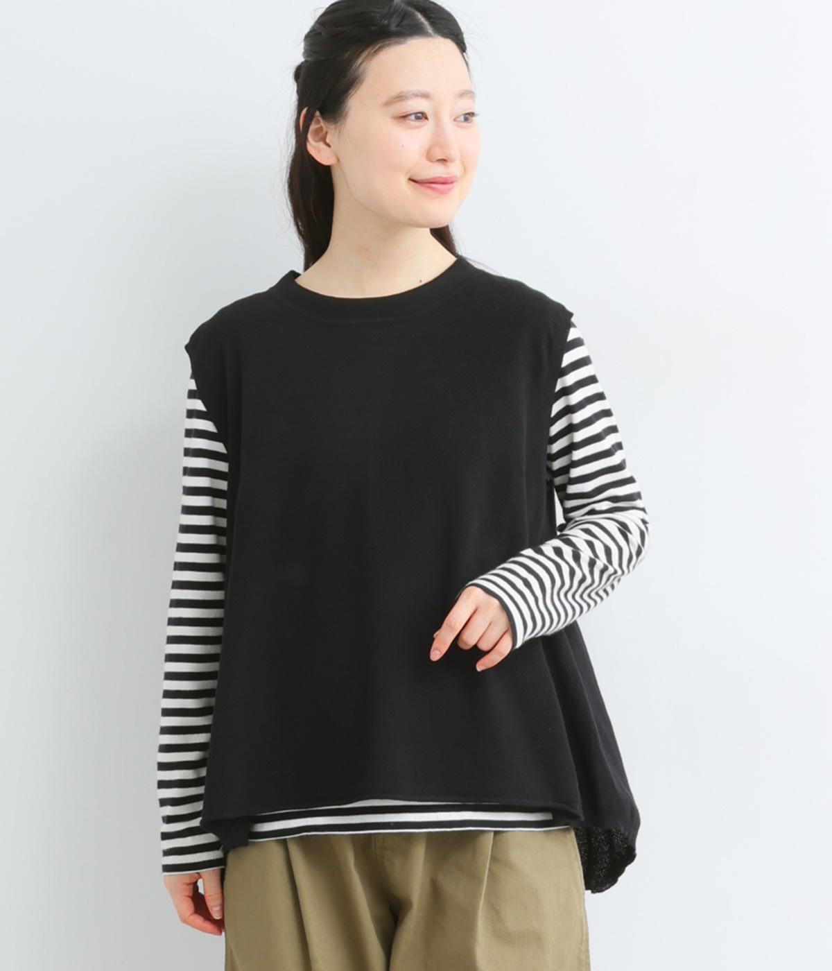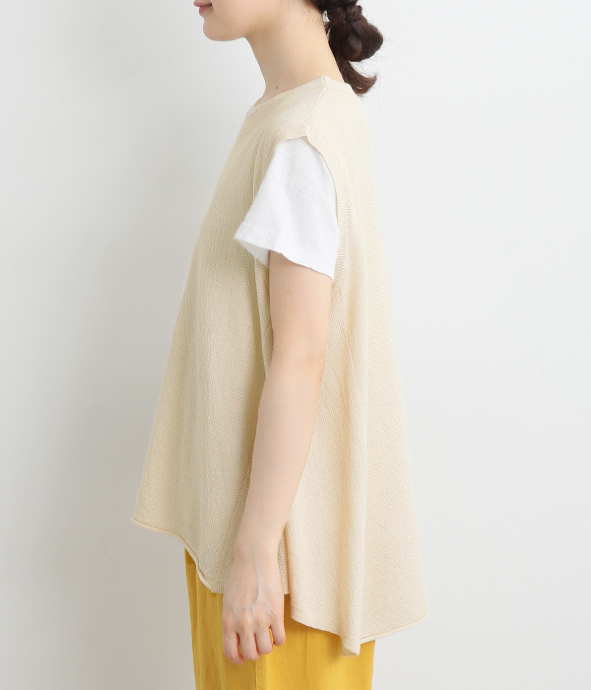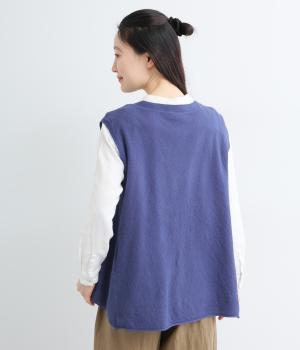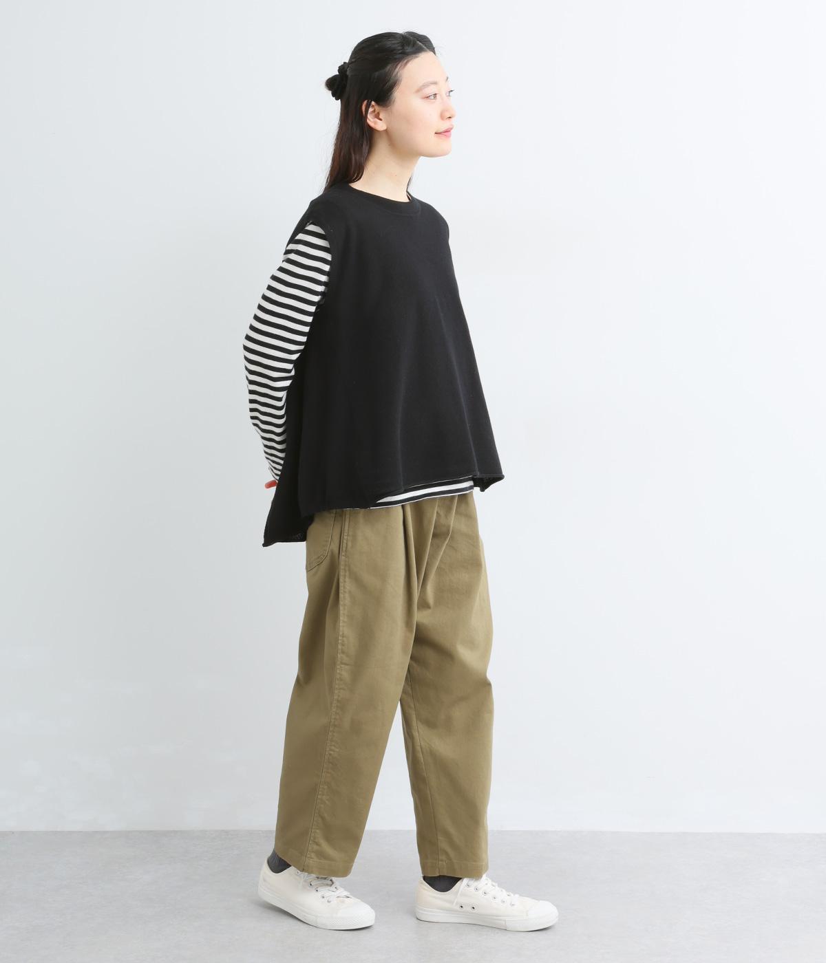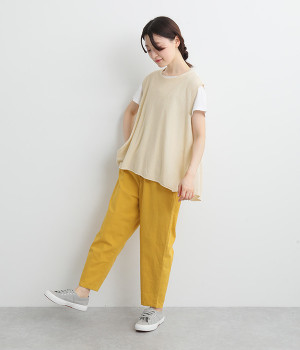 やわらかなコットンの手ざわりが心地よく肌になじみます。伸縮性があり、ふわりと軽やかな素材感です。優しいナチュラルな雰囲気です。