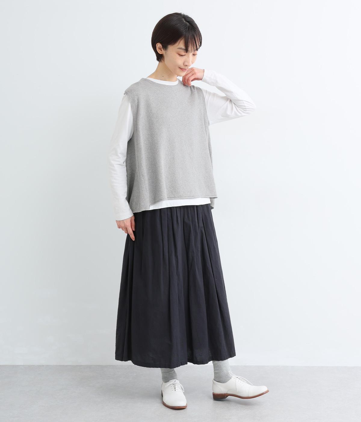 たっぷりの生地が落ち感を生み、軽やかな立体感のあるシルエットを描きます。サッと重ねるだけで、スタイリングに奥行きが生まれ、こなれ感のある雰囲気に。伸縮性があり、厚手のインナーとも重ねやすく仕立てました。