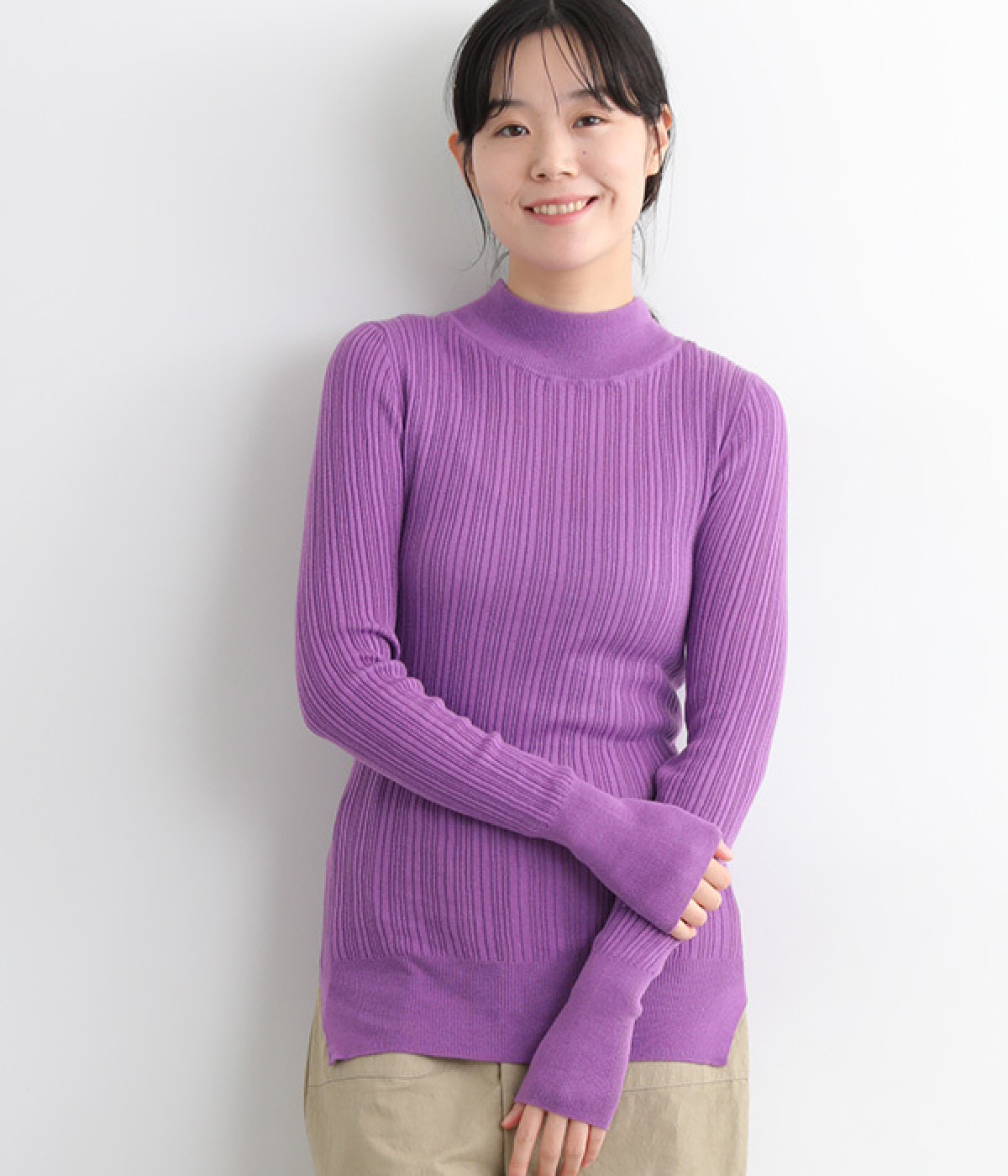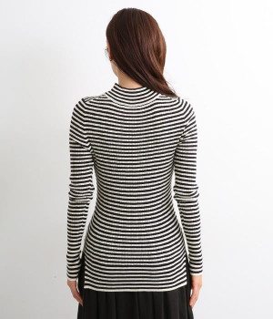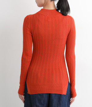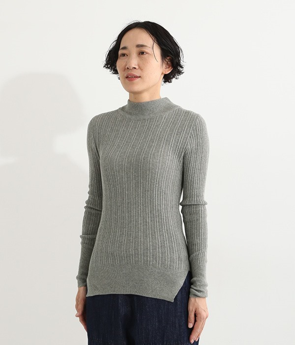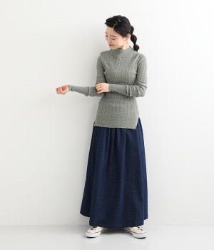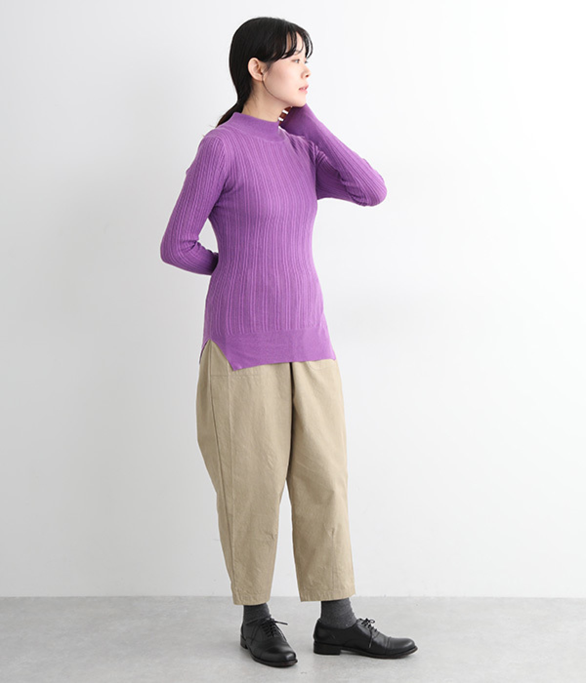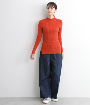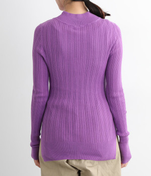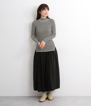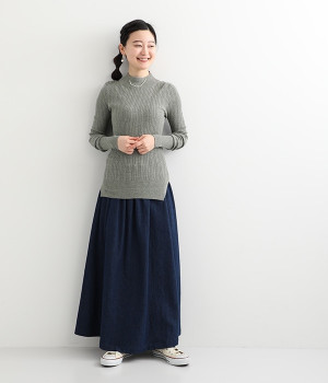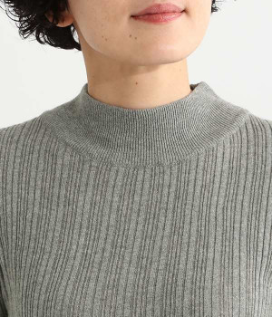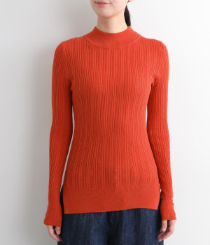 抜群の伸縮性と柔らかな肌触りが魅力の、表情豊かなランダムテレコを使用したモックネックのプルオーバーです。プルオーバーやカーディガンと重ねた際に、襟ぐりからのぞかせたりと配色を楽しむことができます。裾をしっかり入れるとお腹まわりの冷え対策にも◎。
