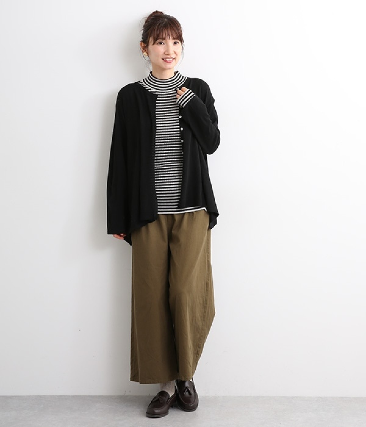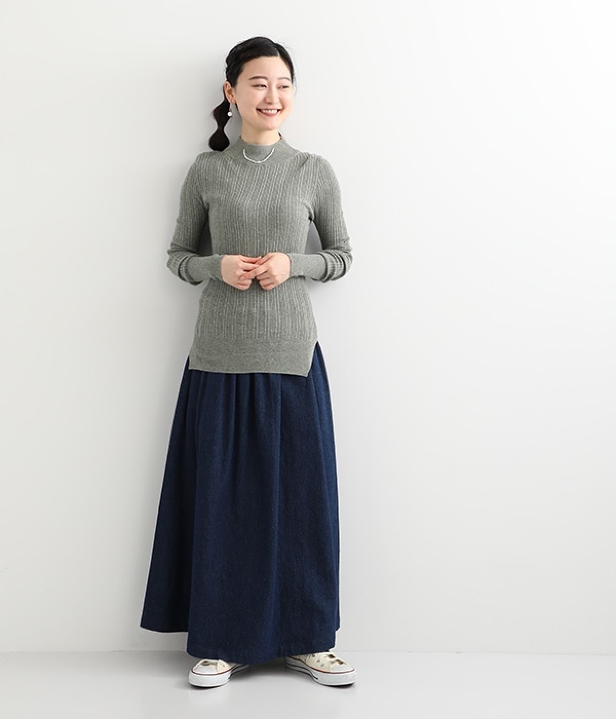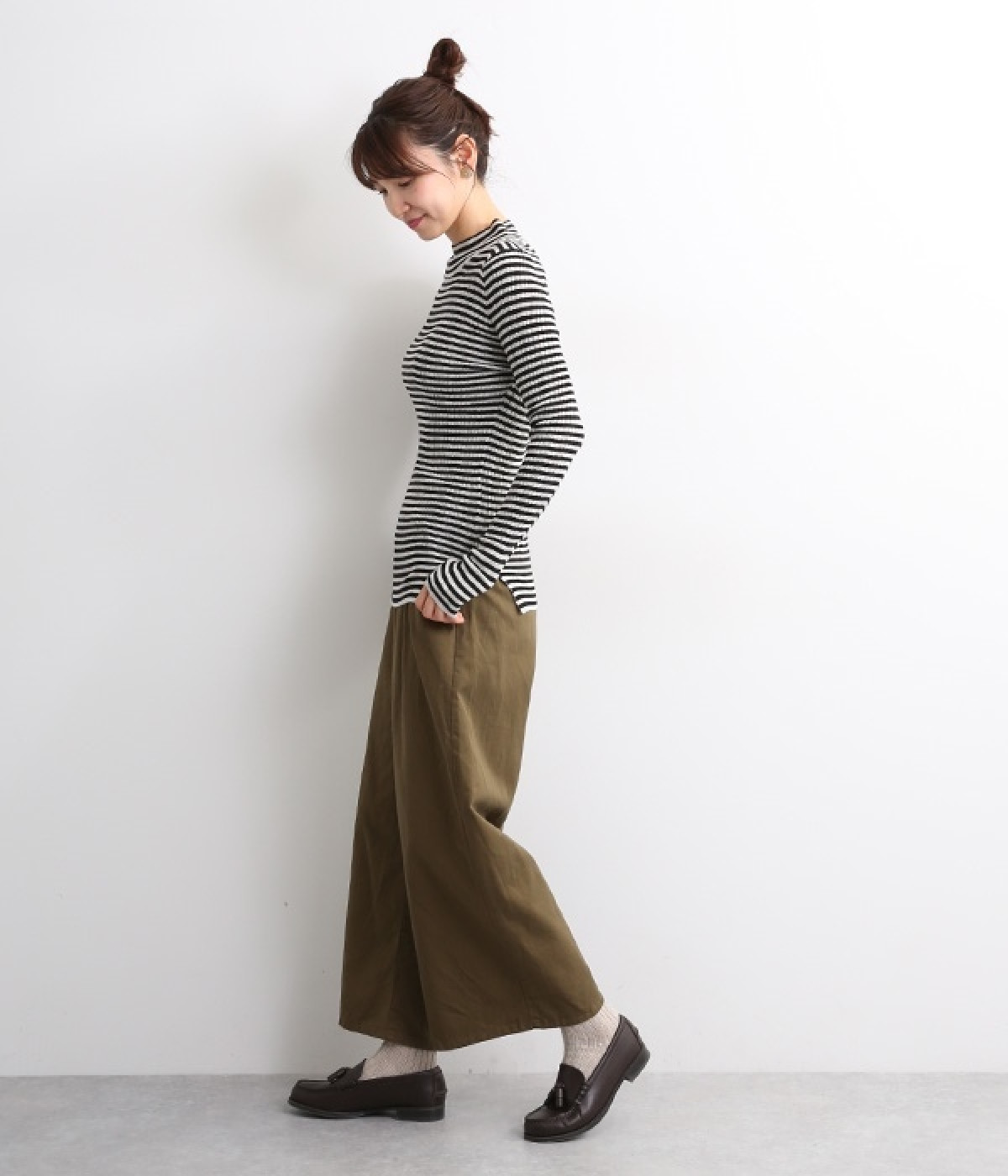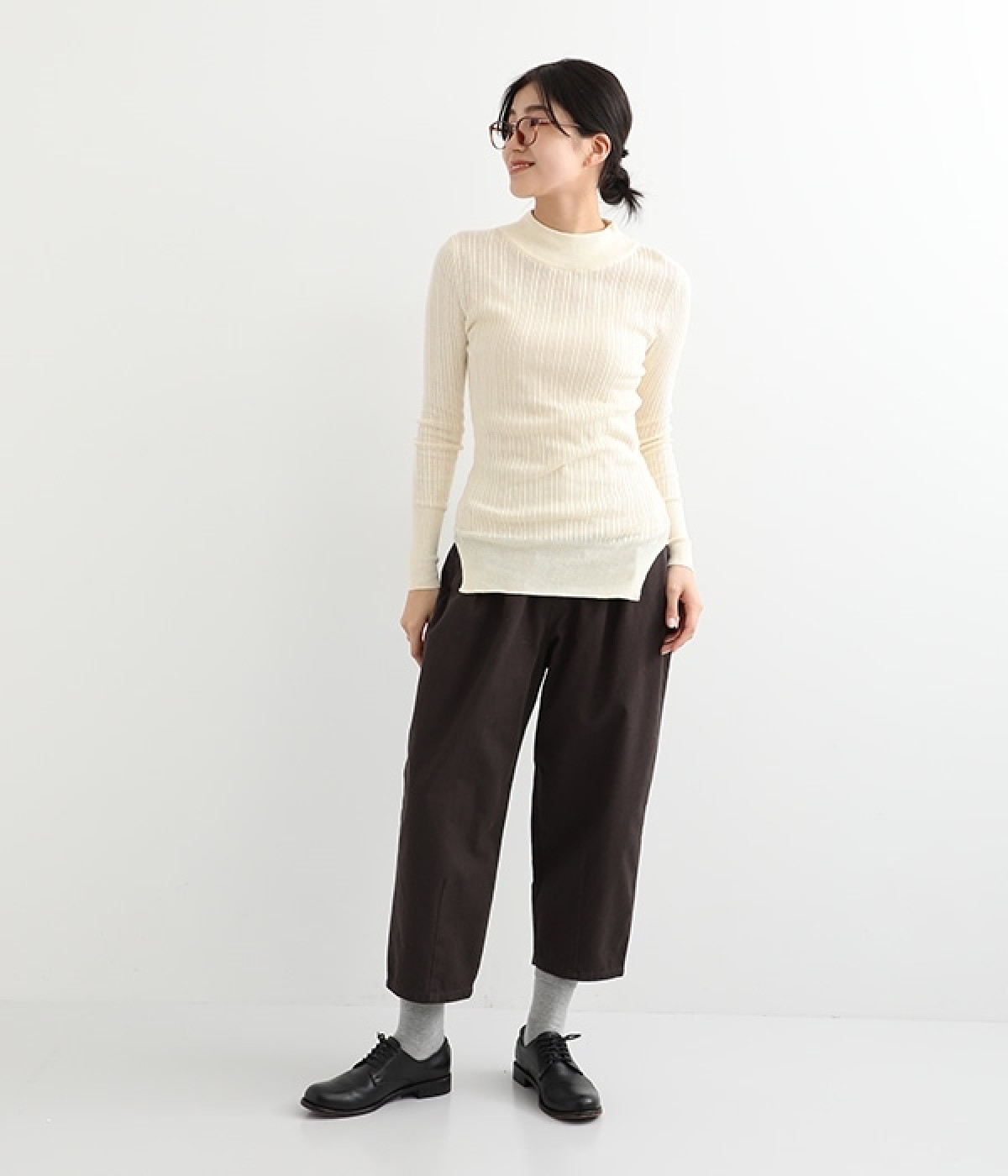 抜群の伸縮性と柔らかな肌触りが魅力の、表情豊かなランダムテレコを使用したモックネックのプルオーバーです。プルオーバーやカーディガンと重ねた際に、襟ぐりからのぞかせたりと配色を楽しむことができます。裾をしっかり入れるとお腹まわりの冷え対策にも◎。