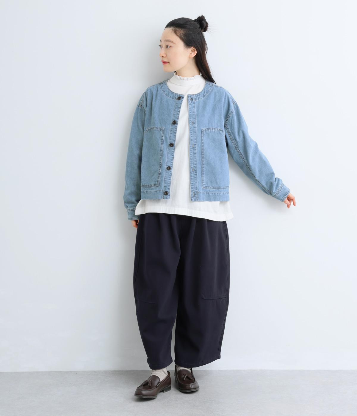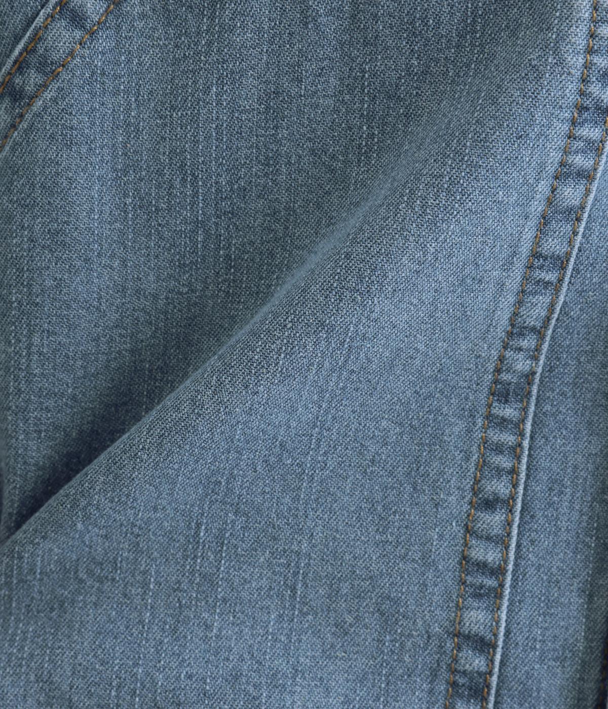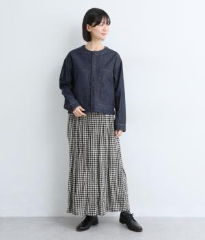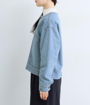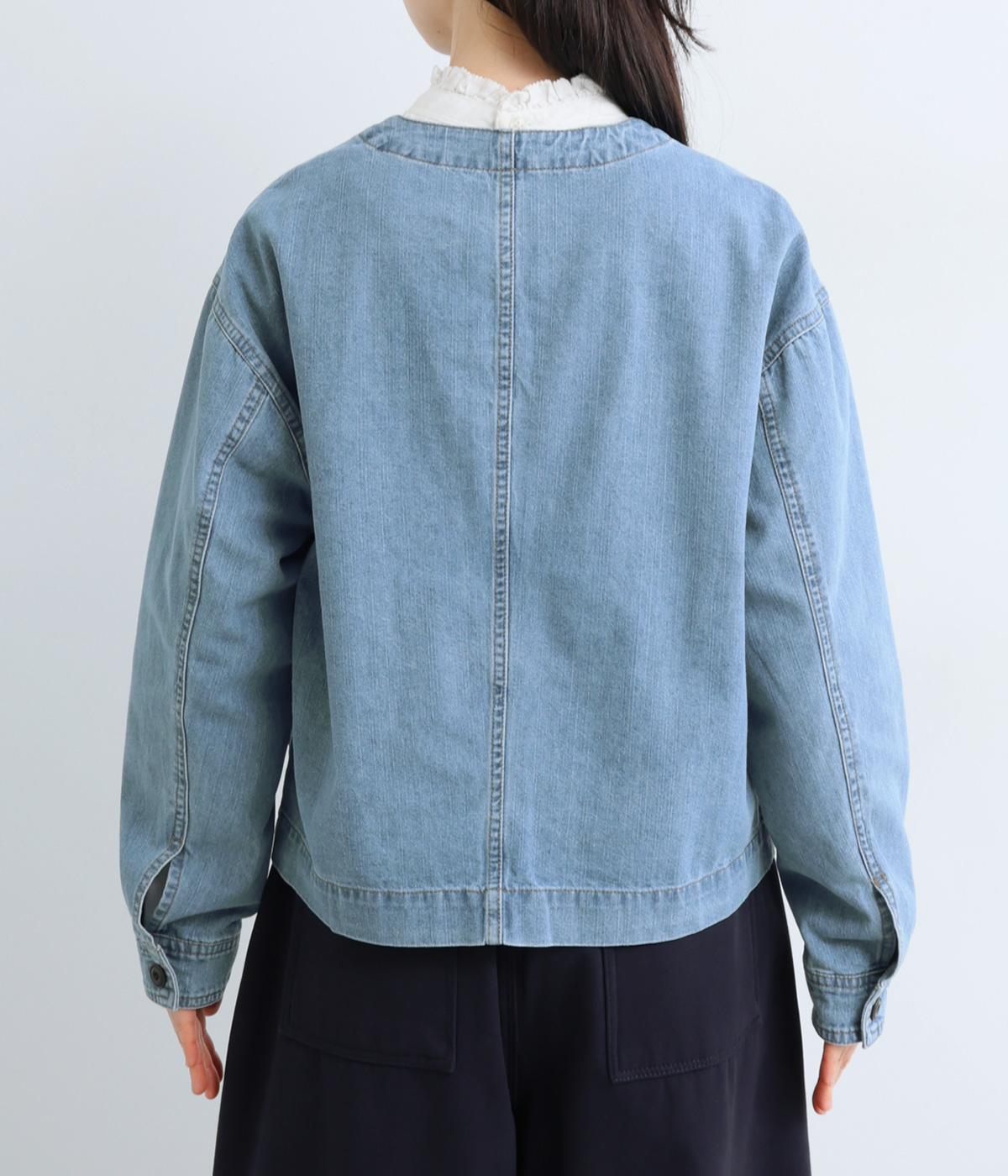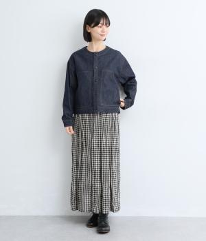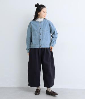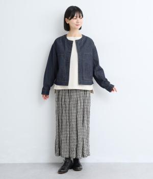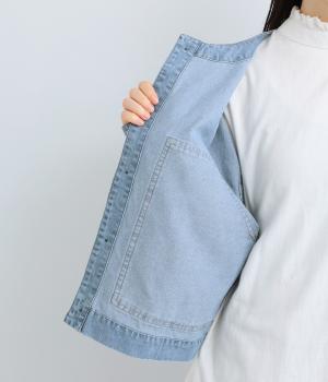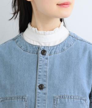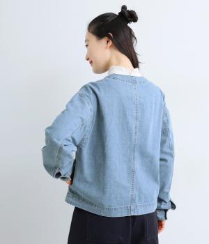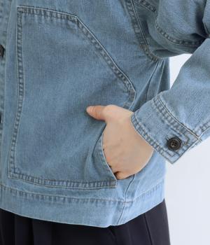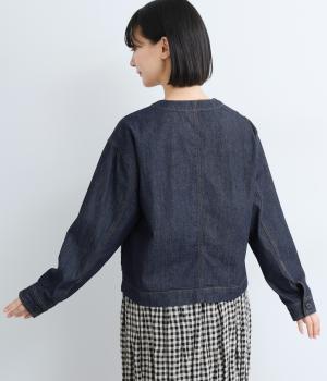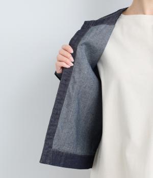 ややハリをもたせたコットンデニムで仕立てました。軽い着心地で厚手すぎないので、カーディガン感覚でロングシーズン重宝します。