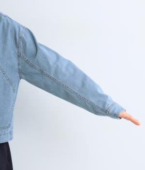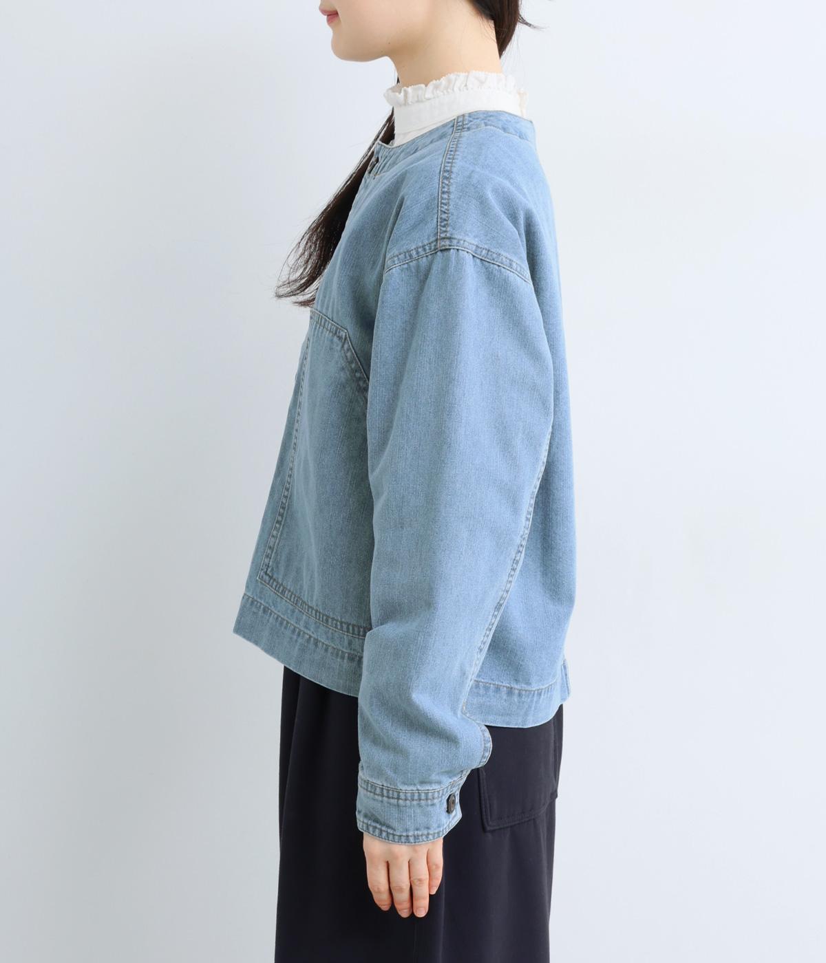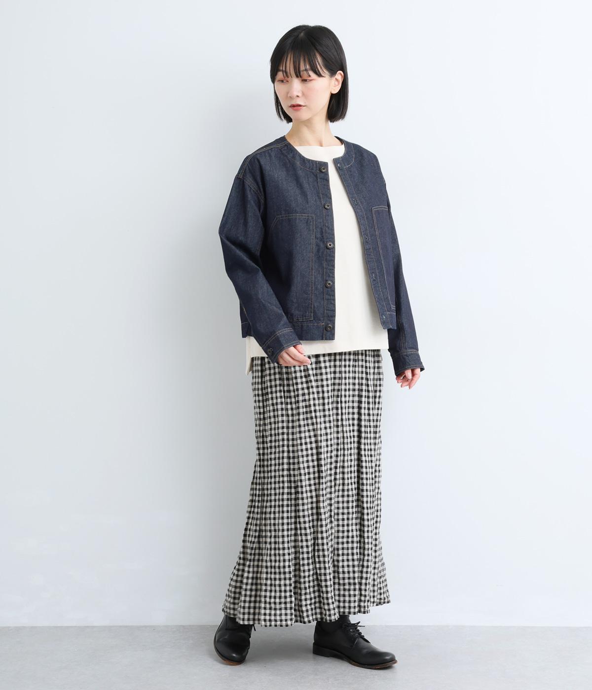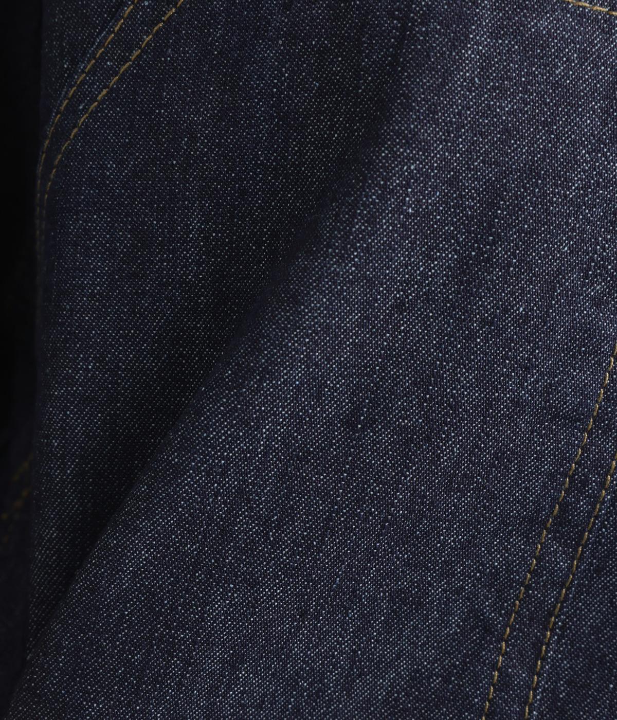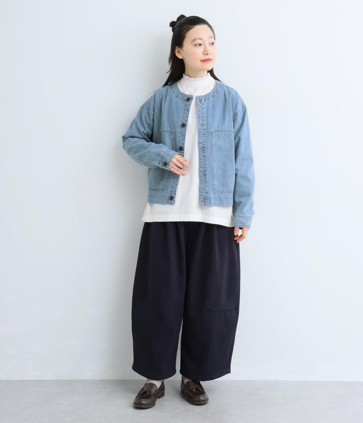 ややハリをもたせたコットンデニムで仕立てました。軽い着心地で厚手すぎないので、カーディガン感覚でロングシーズン重宝します。