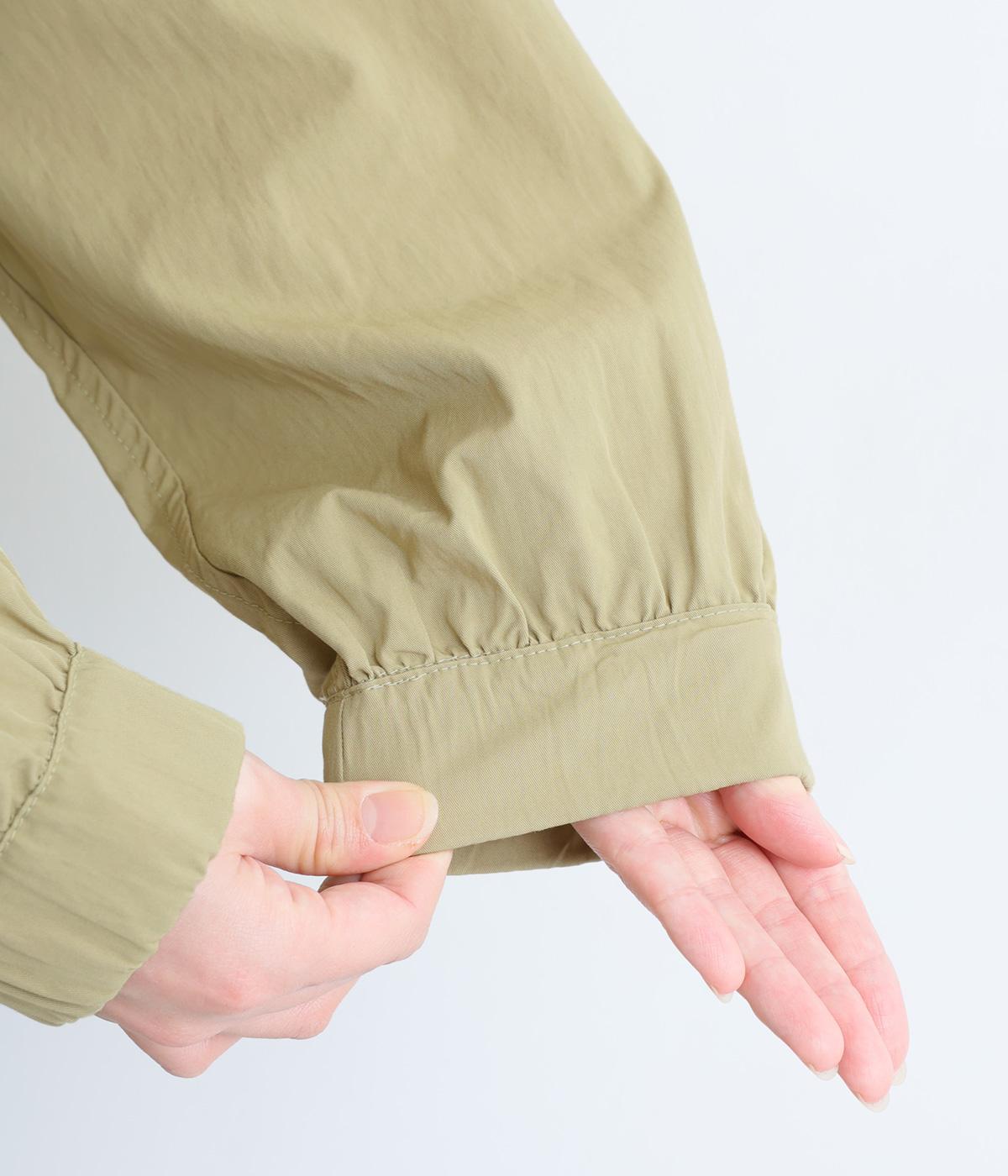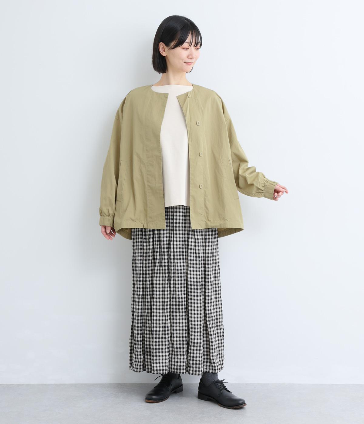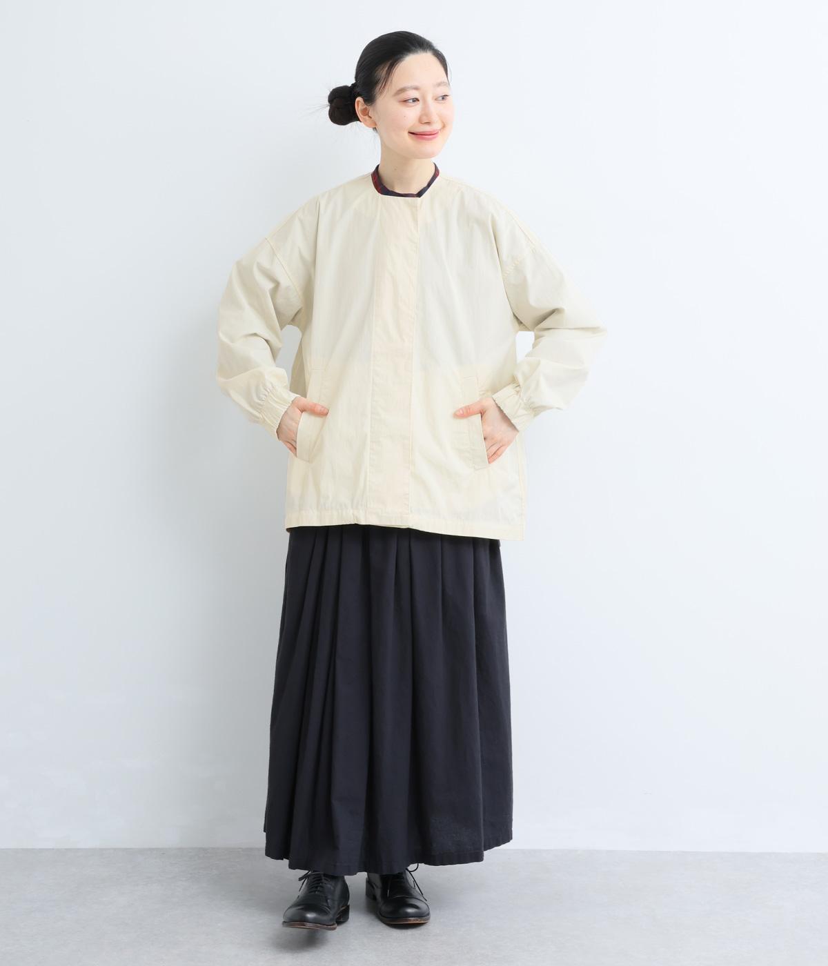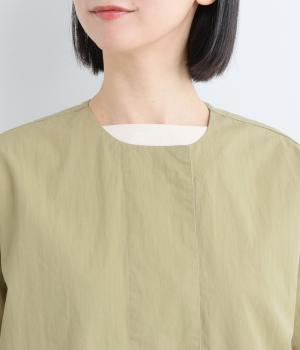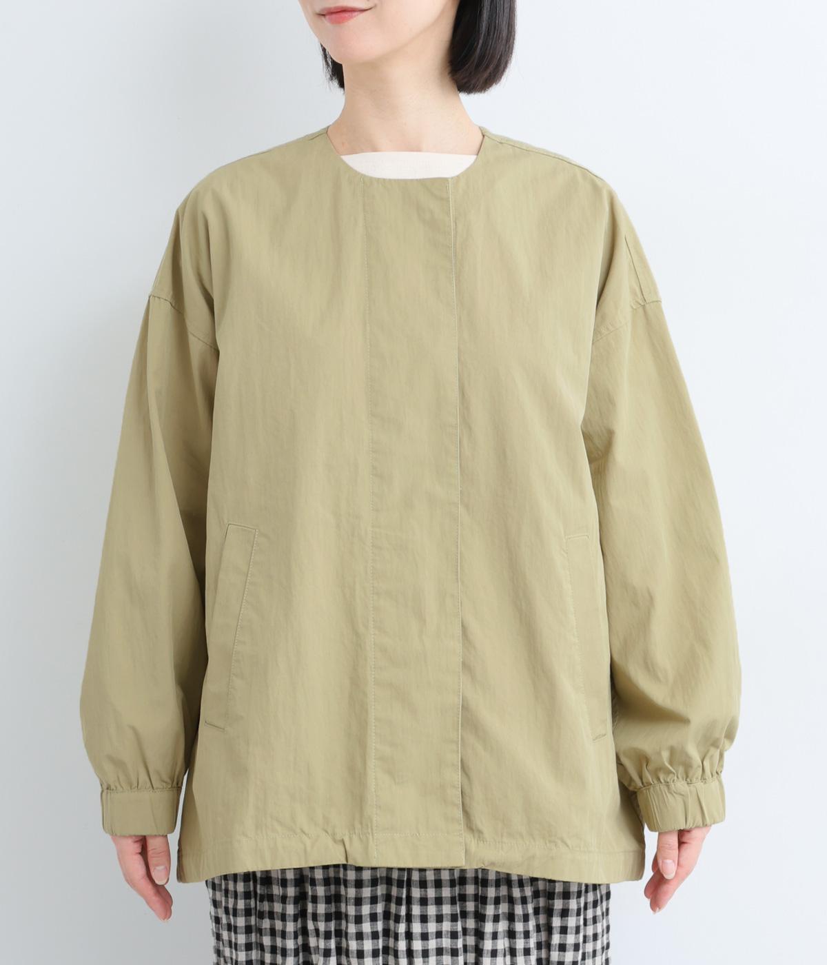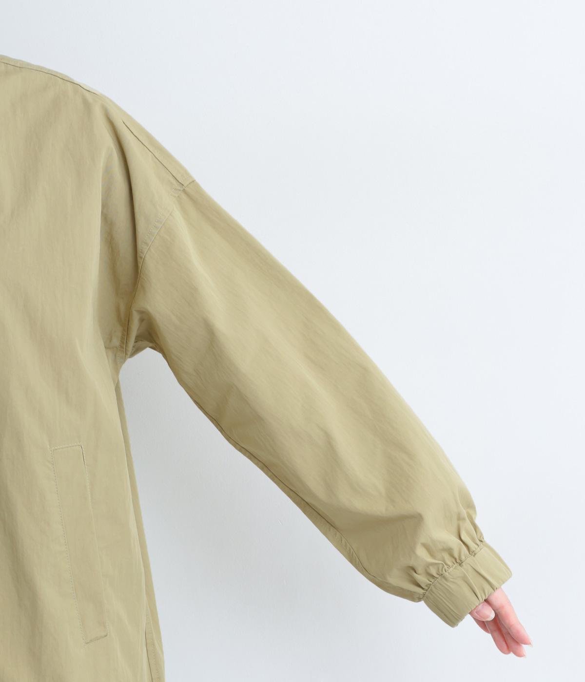 ほどよいハリと光沢感のあるナイロン混紡の生地を使用しています。軽い着心地が嬉しいポイントで、肌寒い季節の変わり目の羽織りものとして重宝します。