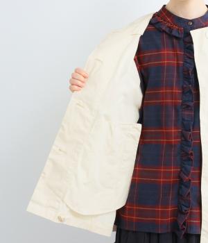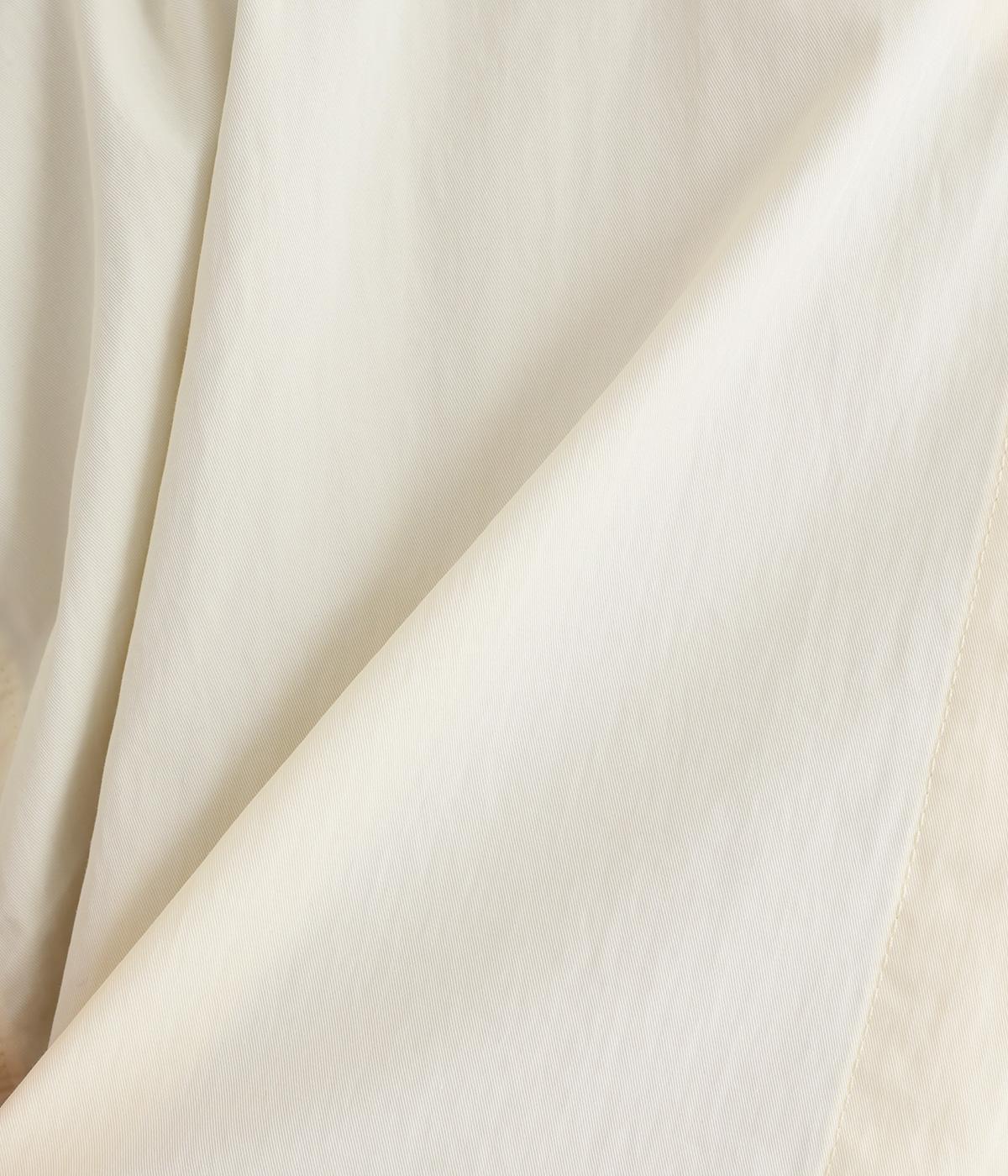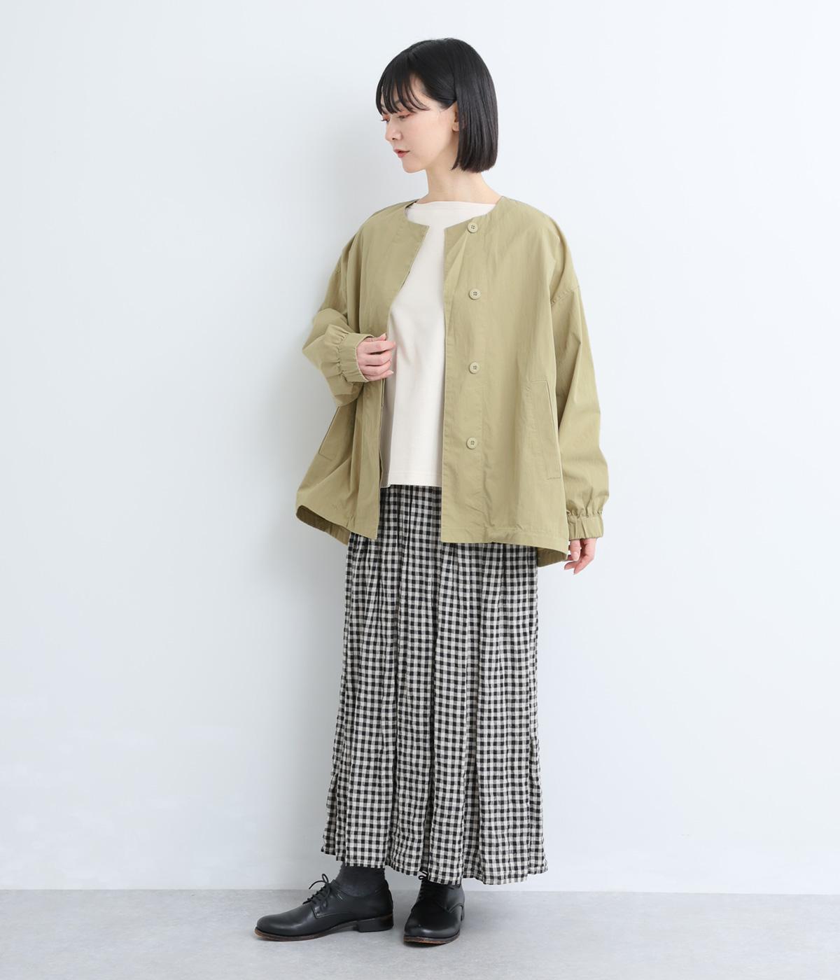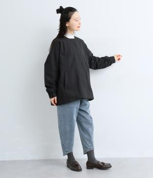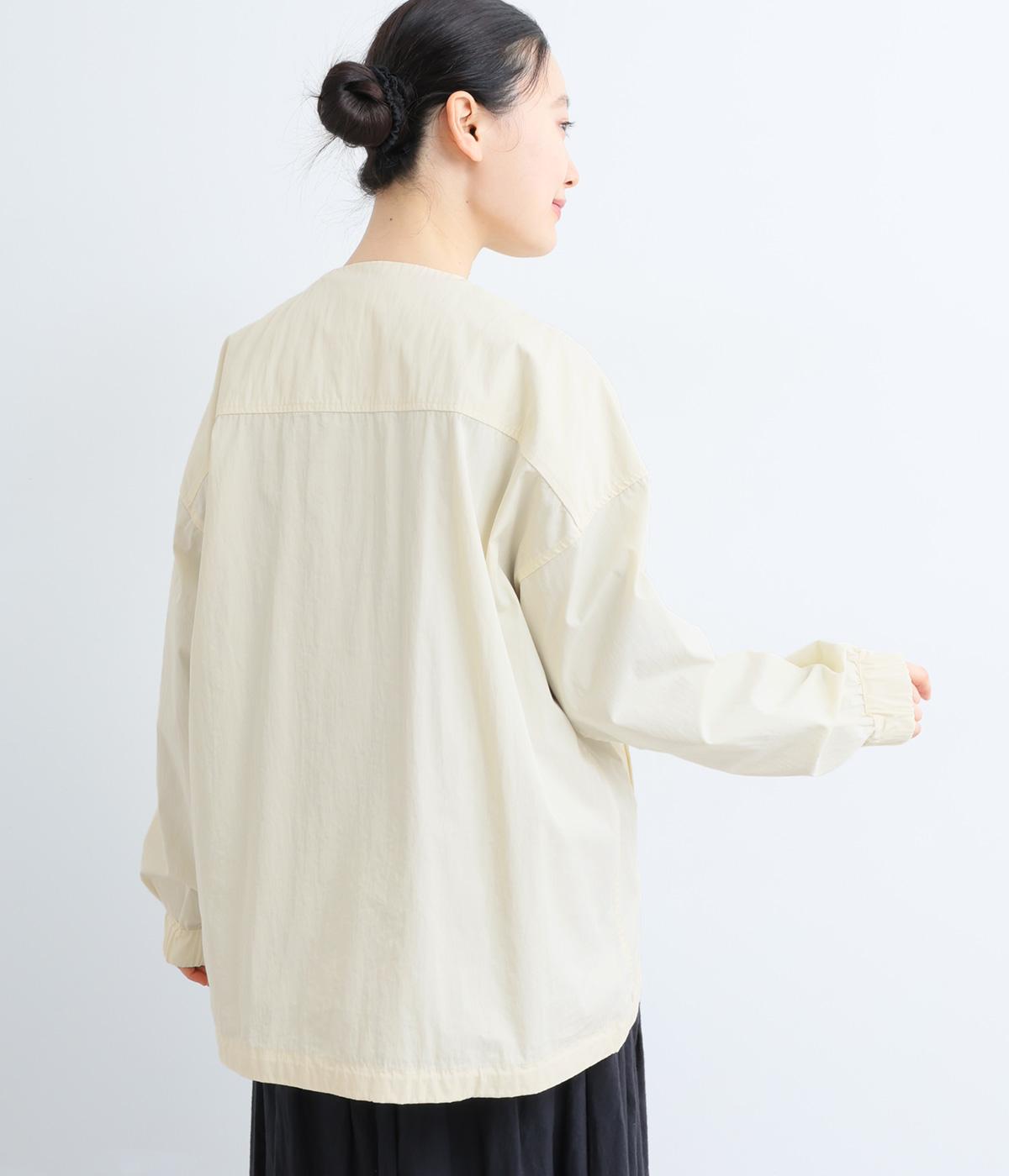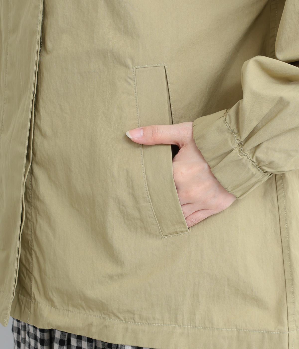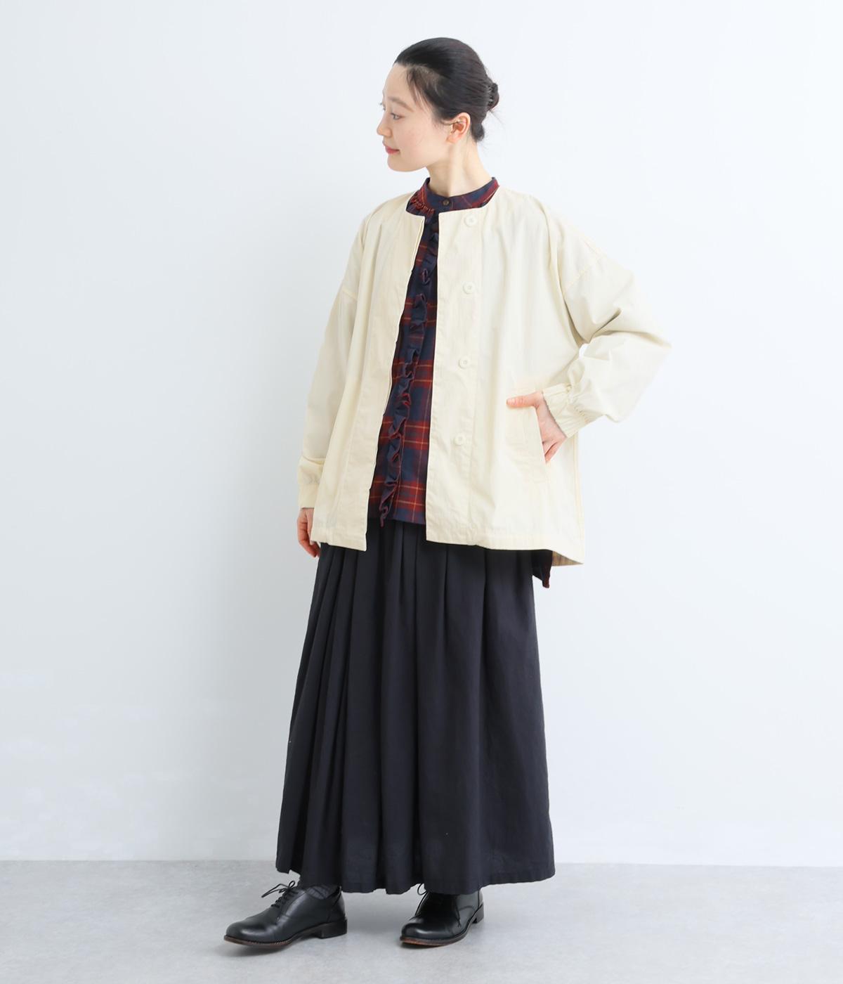 ほどよいハリと光沢感のあるナイロン混紡の生地を使用しています。軽い着心地が嬉しいポイントで、肌寒い季節の変わり目の羽織りものとして重宝します。