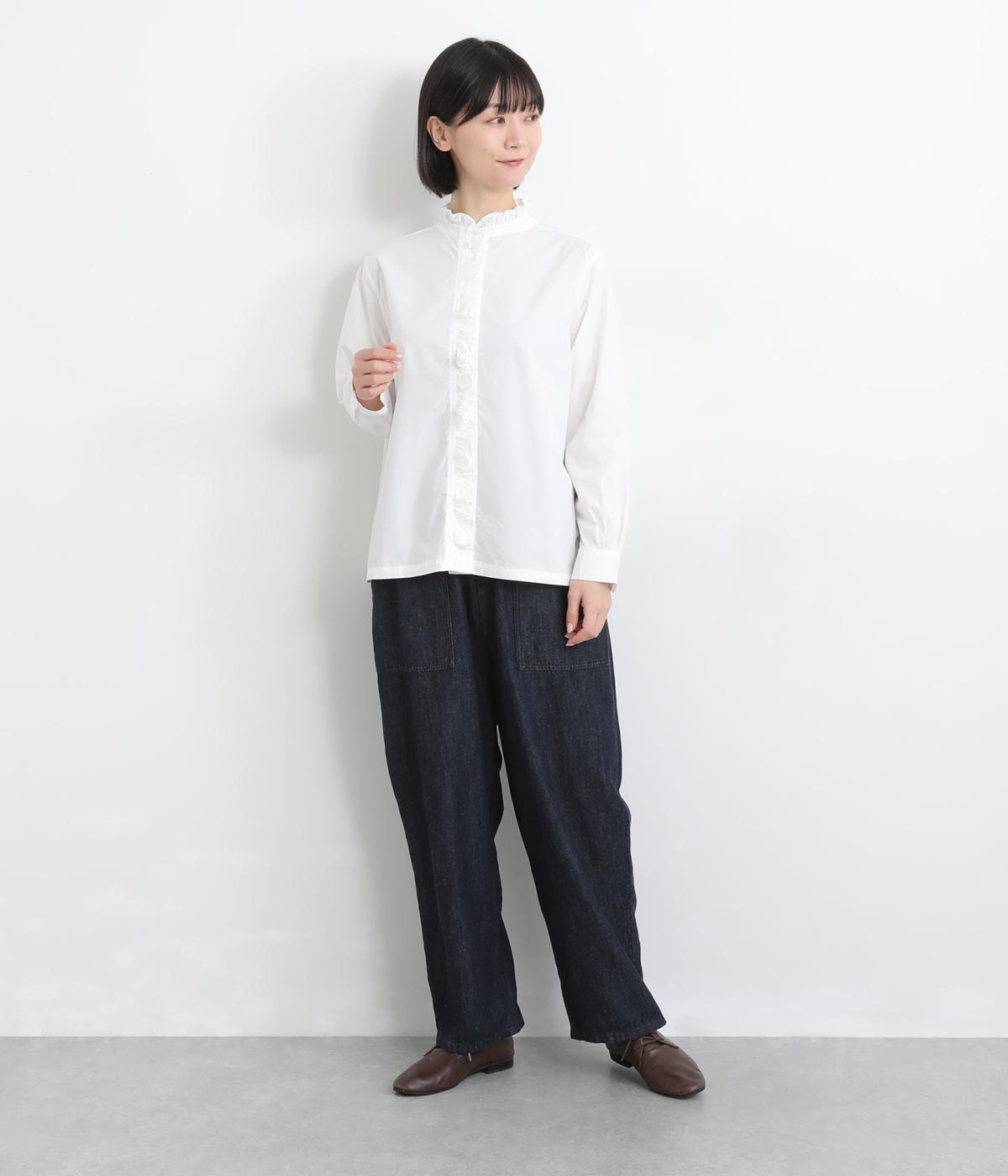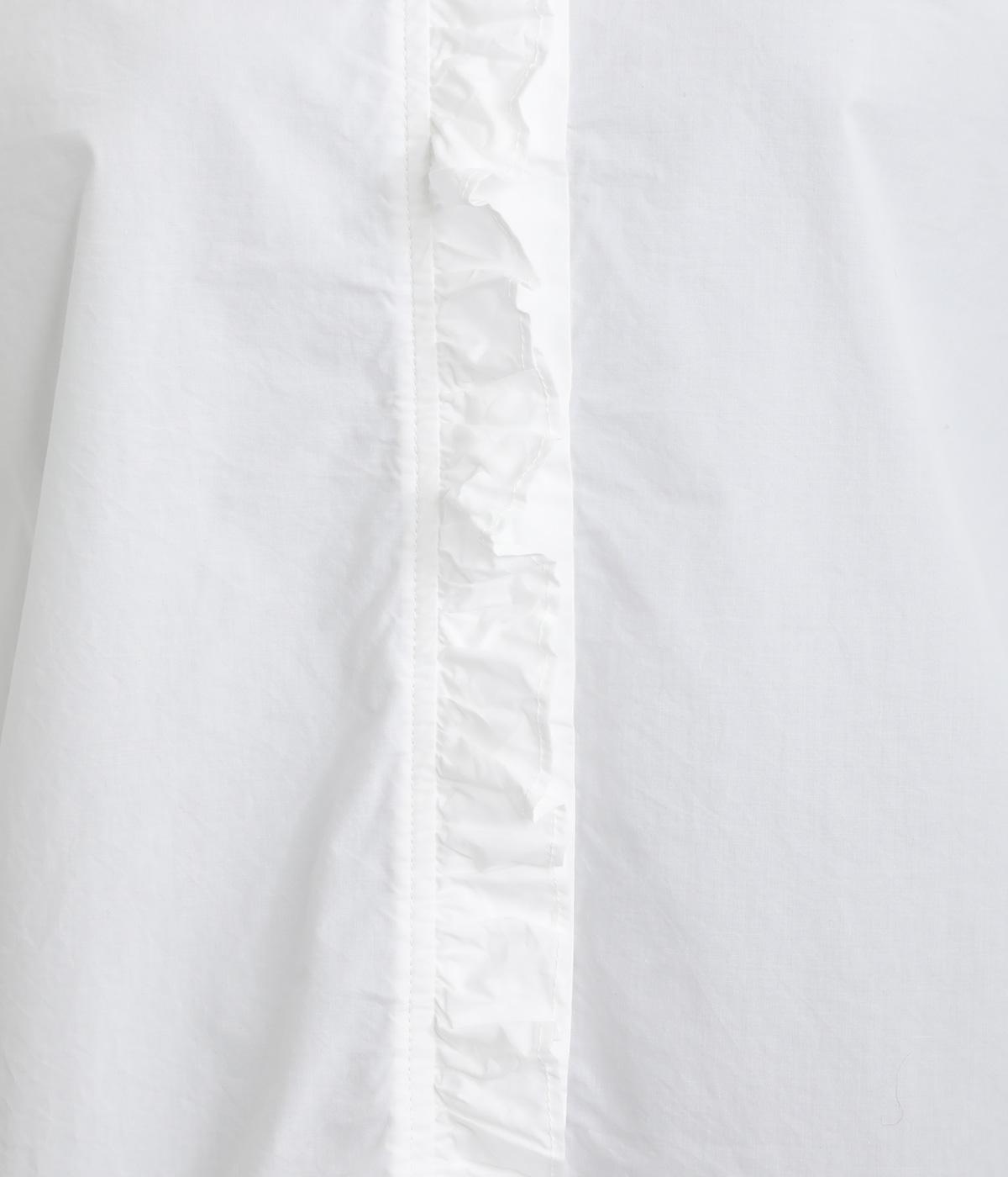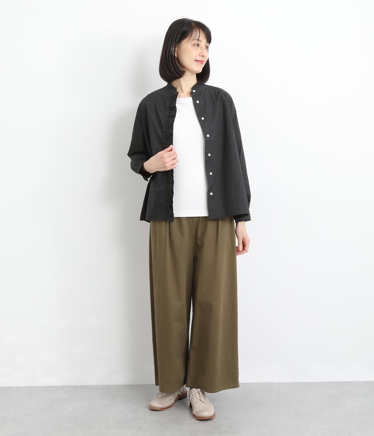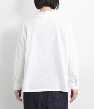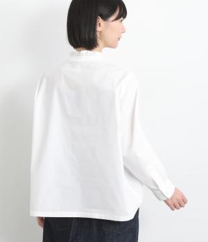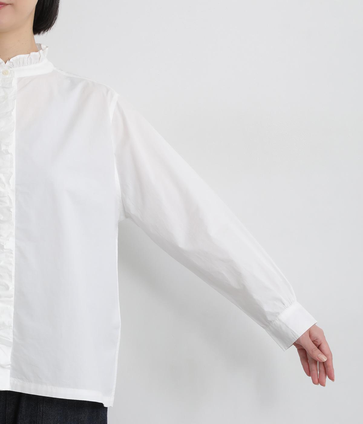 フリルをあしらった比翼デザインが、装いに華やぎを添えるブラウスです。首元もフリルカラーで仕上げ、顔まわりに立体感をプラス。袖口は丸みが出すぎないひかえめなギャザーを施し、上品なシルエットに落とし込んでいます。きれいめにもカジュアルにも合わせやすい、万能な一枚です。