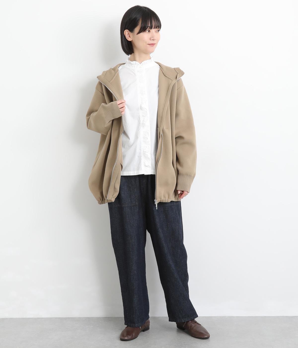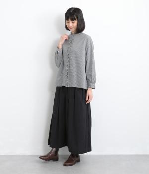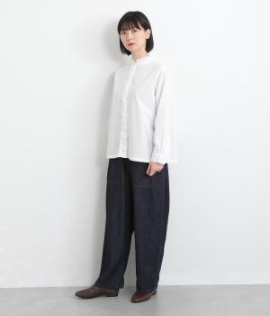 さらりとした質感と、自然なシワが魅力のコットン素材で仕立てました。やわらかさのなかにほどよいハリ感があり、シルエットを美しく引き出します。季節を問わずに取り入れやすい、軽やかな着心地です。