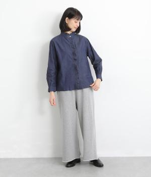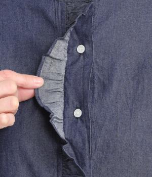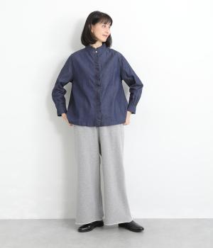 インディゴ染めならではの、奥行きのある風合いが魅力です。やわらかく肌になじむコットン素材で、動くたびに自然な陰影が生まれます。ほのかな光沢が上品さを添え、カジュアルすぎず落ち着いた印象に。