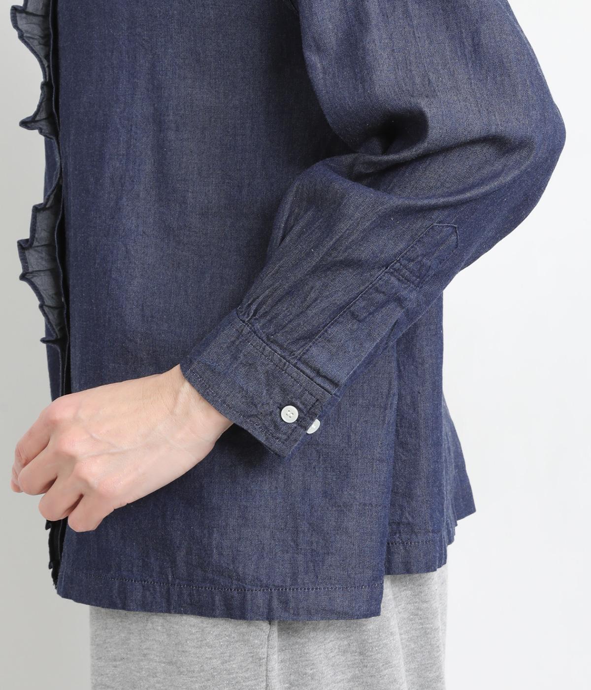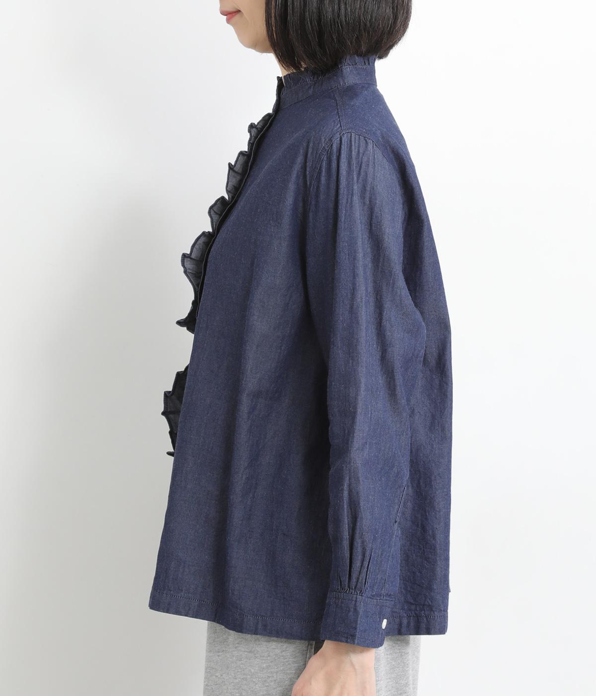 フリルをあしらった比翼デザインが、装いに華やぎを添えるブラウスです。首元もフリルカラーで仕上げ、顔まわりに立体感をプラス。袖口は丸みが出すぎないひかえめなギャザーを施し、上品なシルエットに落とし込んでいます。きれいめにもカジュアルにも合わせやすい、万能な一枚です。