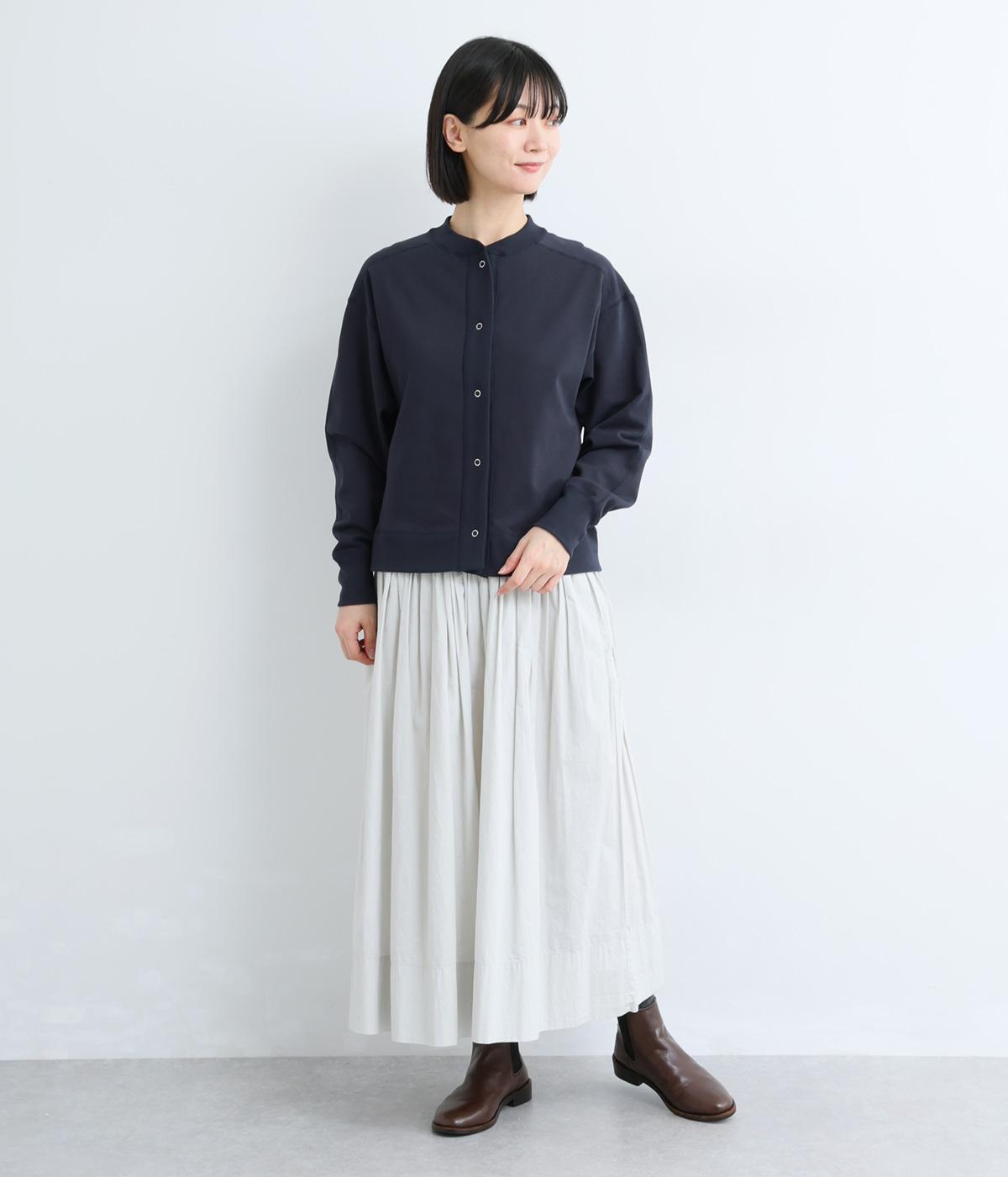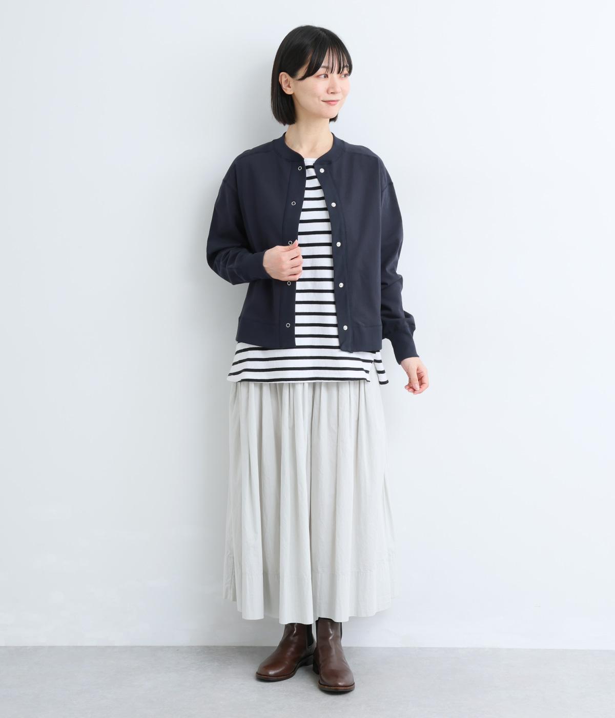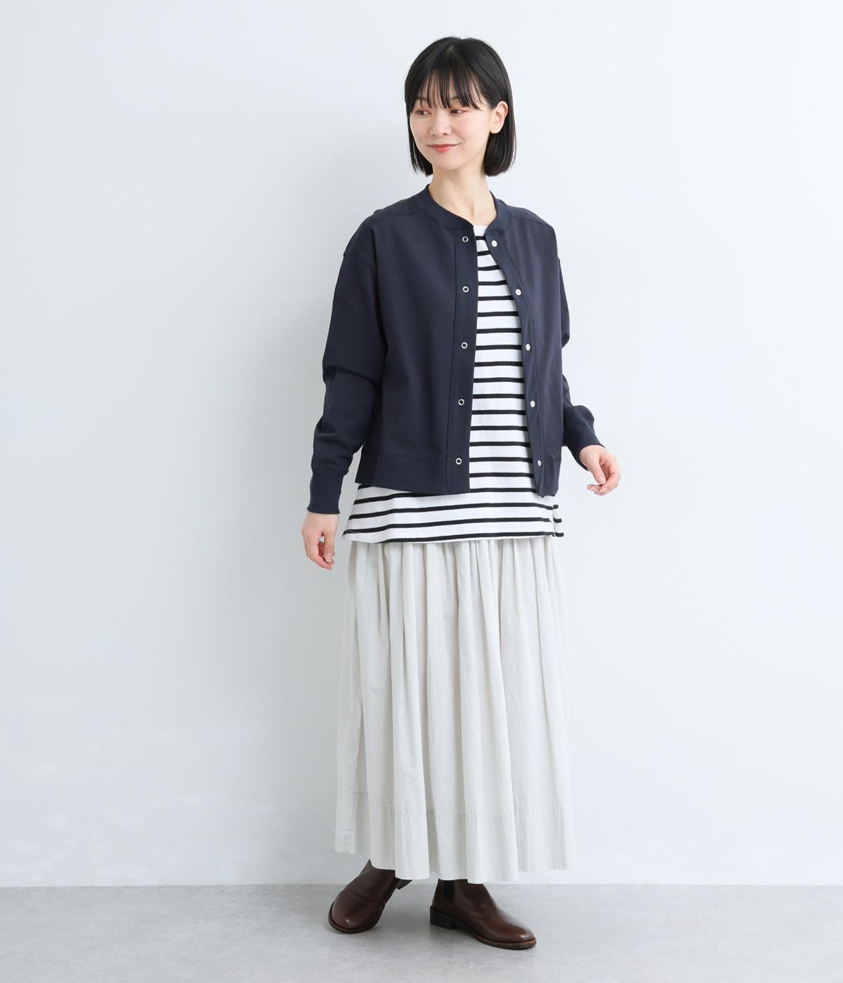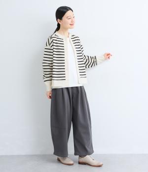 ややハリのある、さらりとしたカットソーで仕立てました。ほどよくストレッチが効いているので動きやすく、デイリー使いにぴったりです。