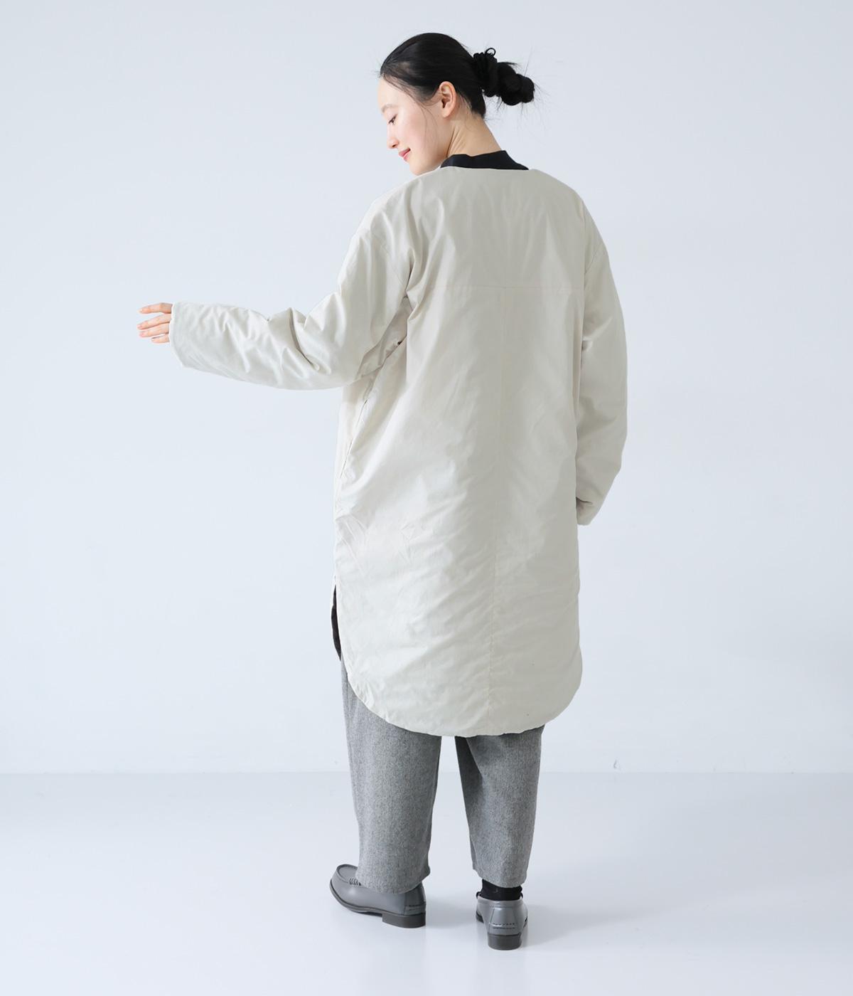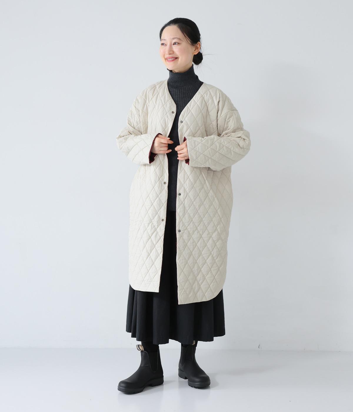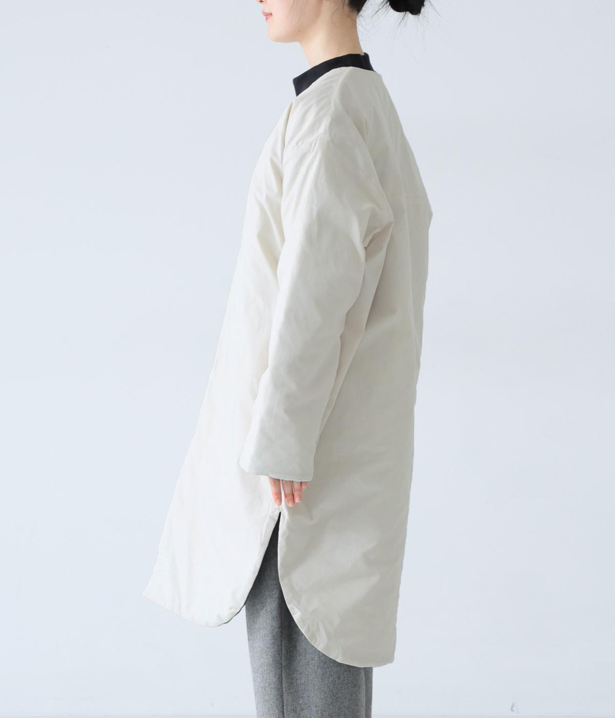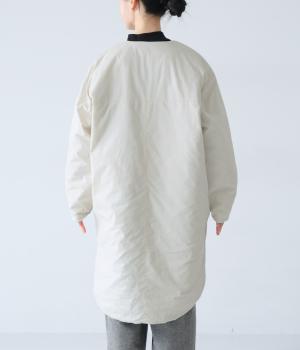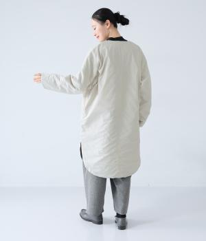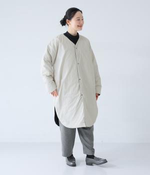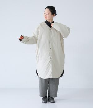 全体にゆとりを持たせ、丸みのあるシルエットに仕上げたコクーンコート。中綿入りであたたかく、フラットな面とステッチを施した面を気分に合わせてたのしめるリバーシブル仕様です。装いを選ばずさっと羽織れる、長めの着丈がグッド。裾サイドには大きくスリットを入れて足さばきも◎です。