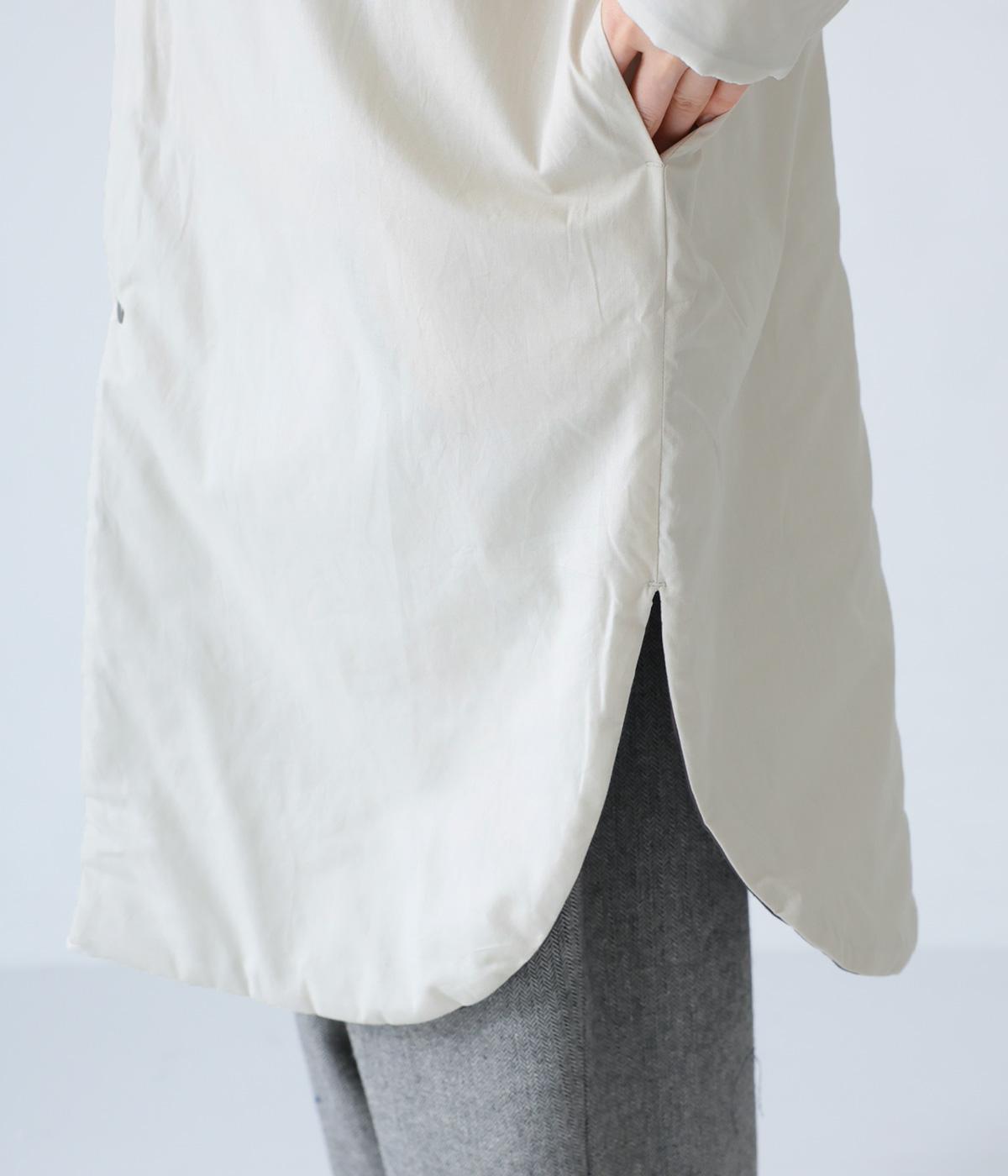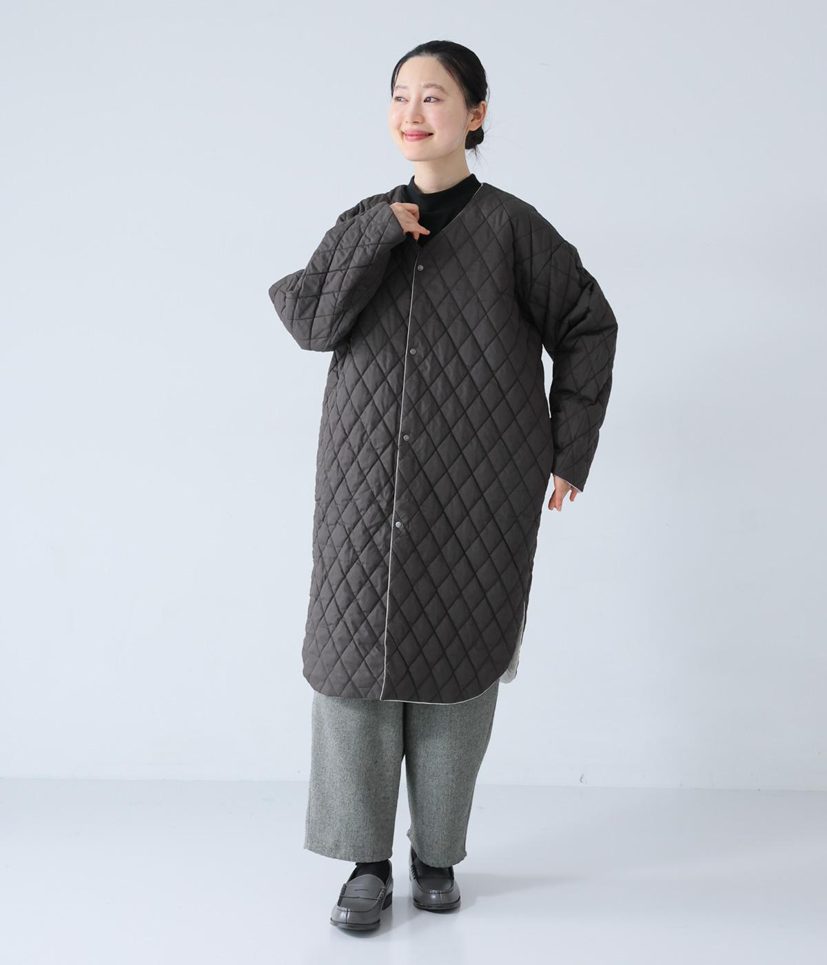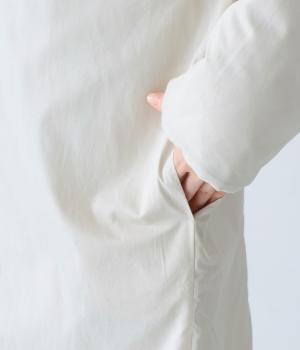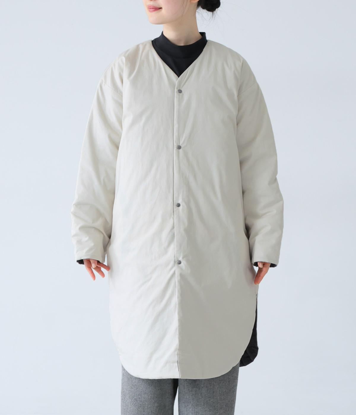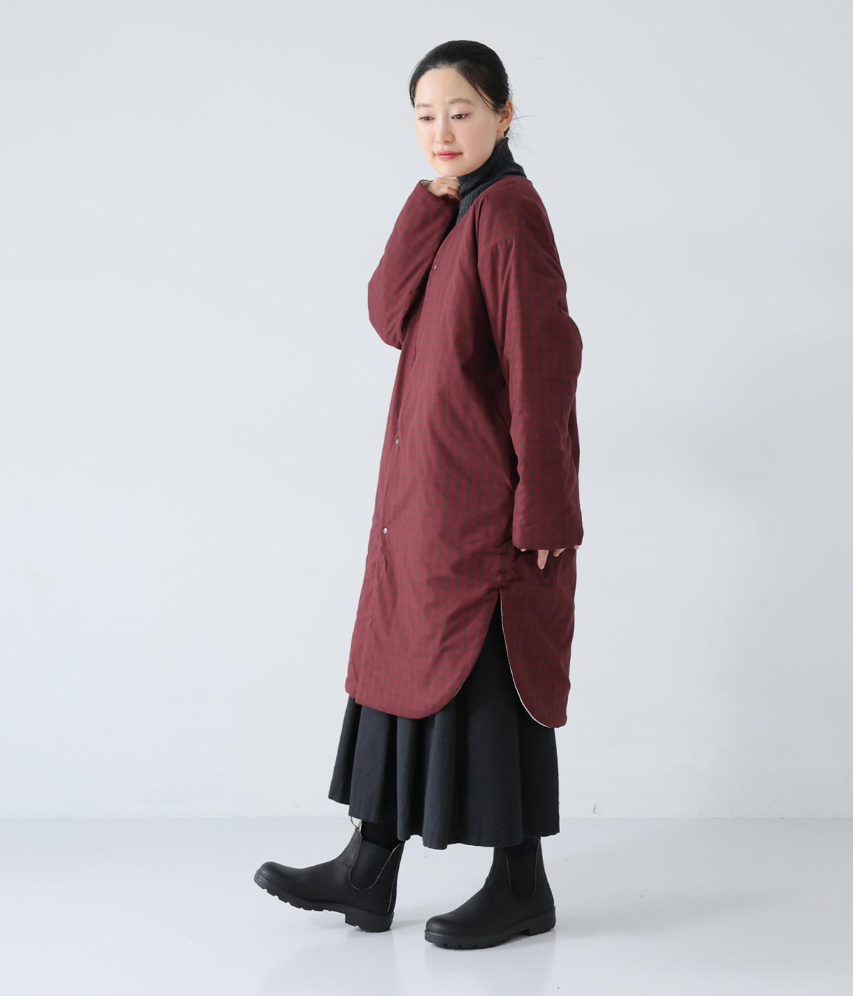 全体にゆとりを持たせ、丸みのあるシルエットに仕上げたコクーンコート。中綿入りであたたかく、フラットな面とステッチを施した面を気分に合わせてたのしめるリバーシブル仕様です。装いを選ばずさっと羽織れる、長めの着丈がグッド。裾サイドには大きくスリットを入れて足さばきも◎です。