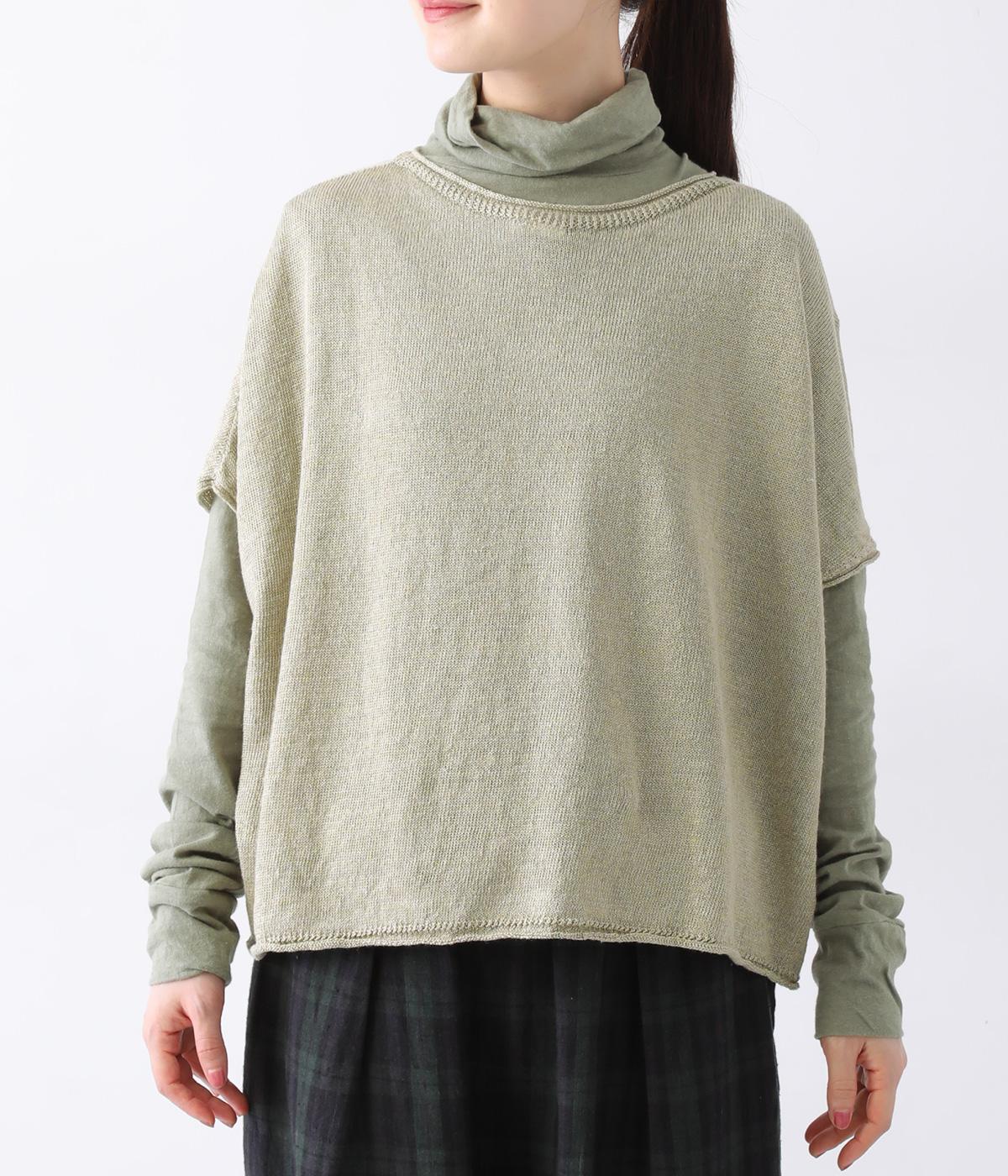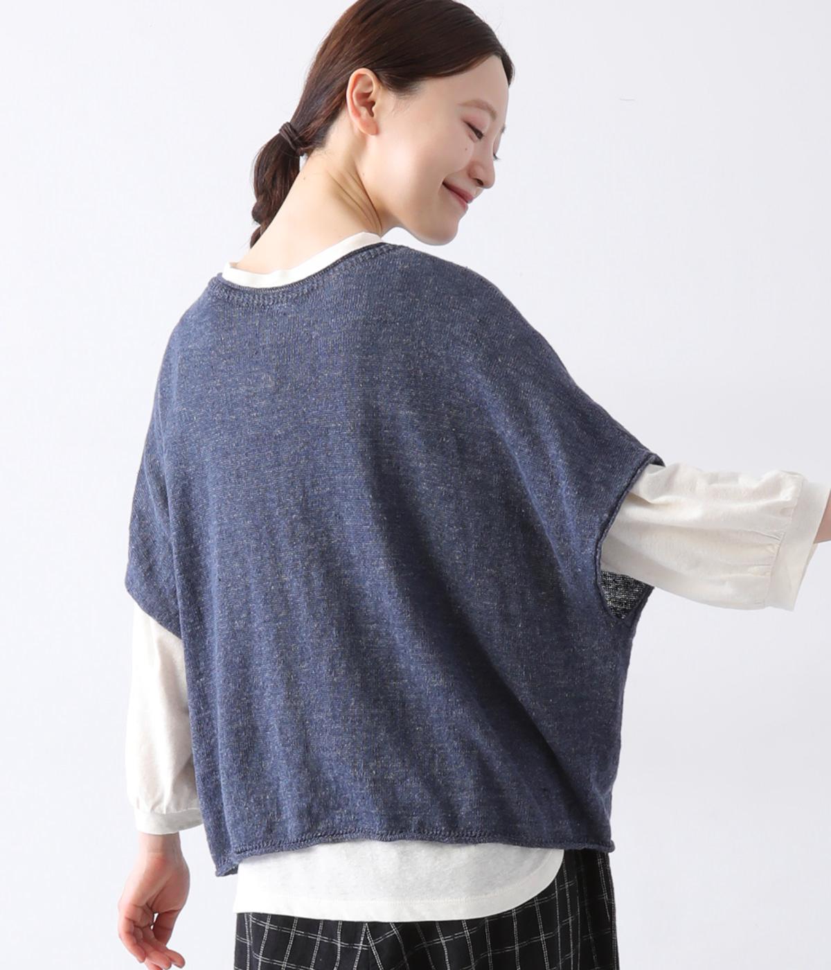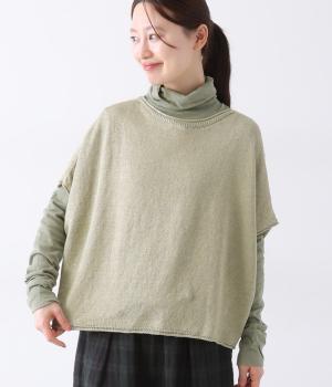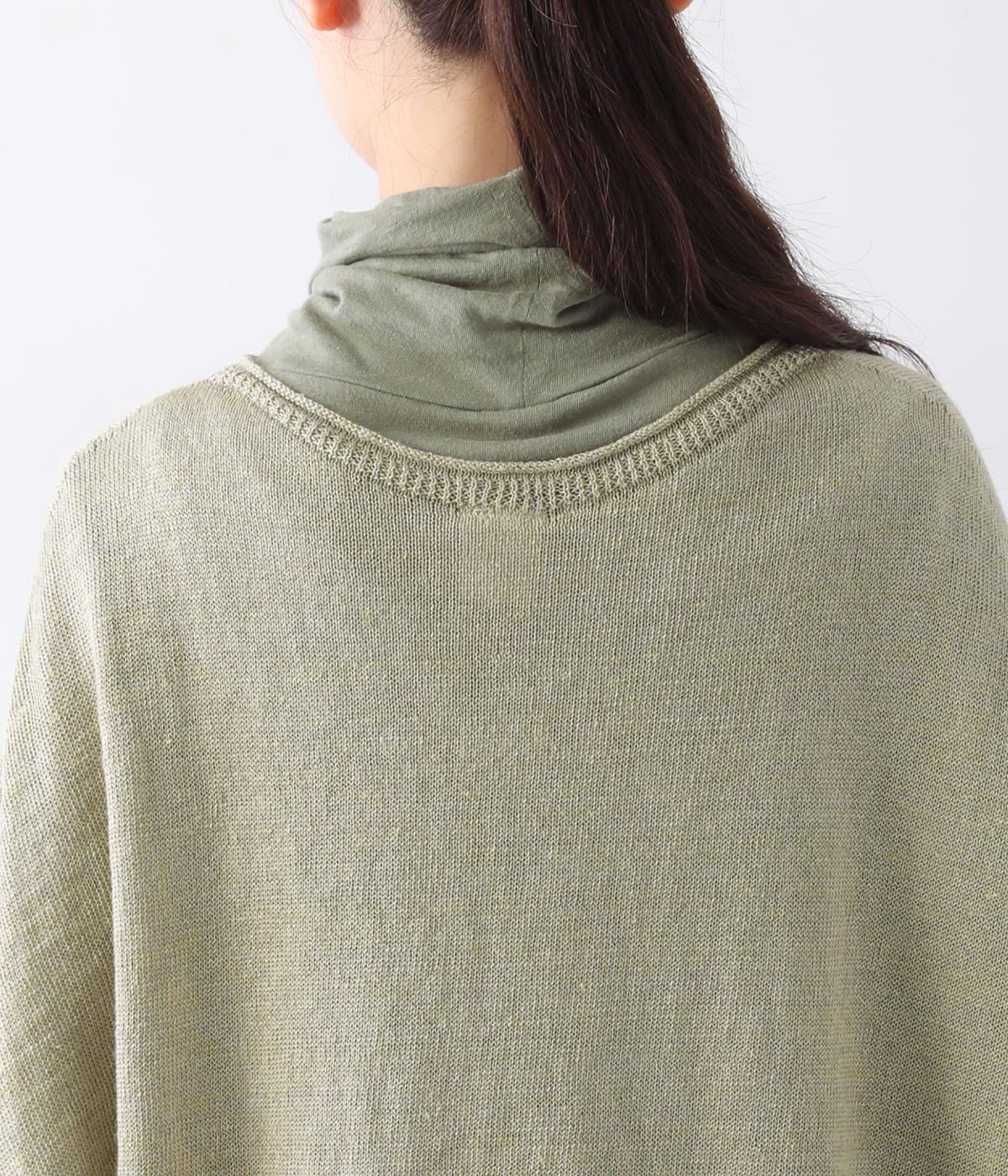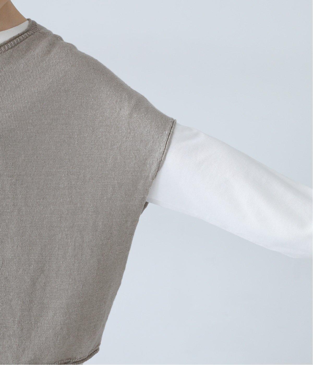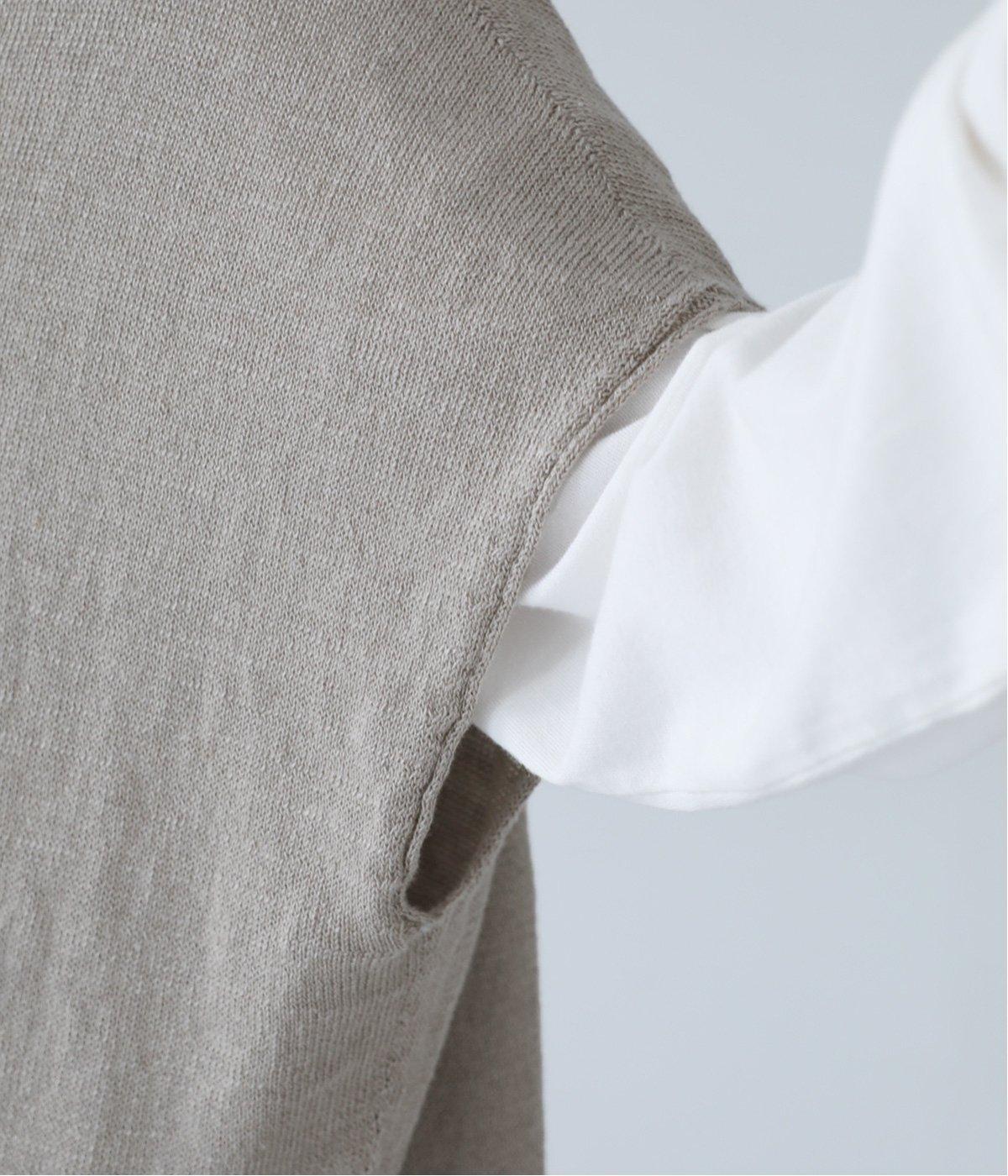 リネンならではのナチュラルな風合いを存分にたのしめるニット生地です。さらさらとした心地よい肌触りと清涼感たっぷりの見た目が特徴。薄手でやや透け感があり、レイヤードスタイルも軽やかに決まります。