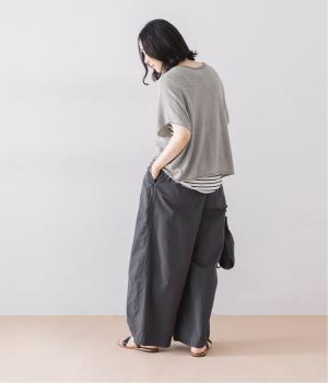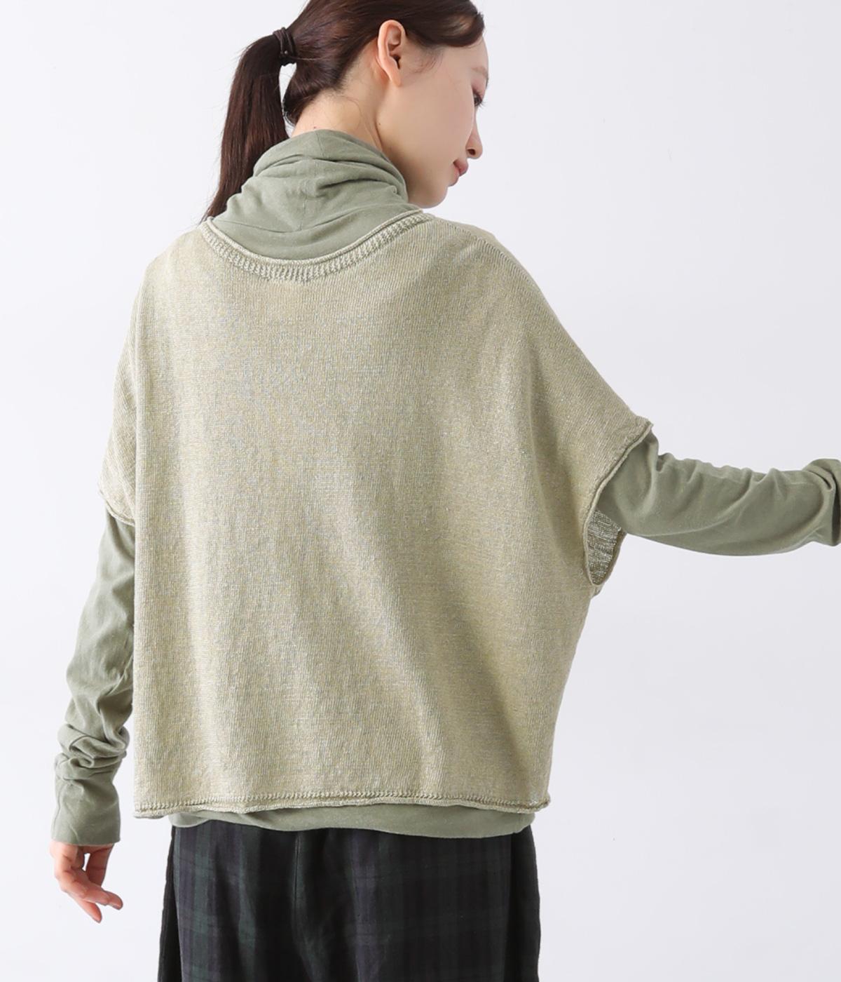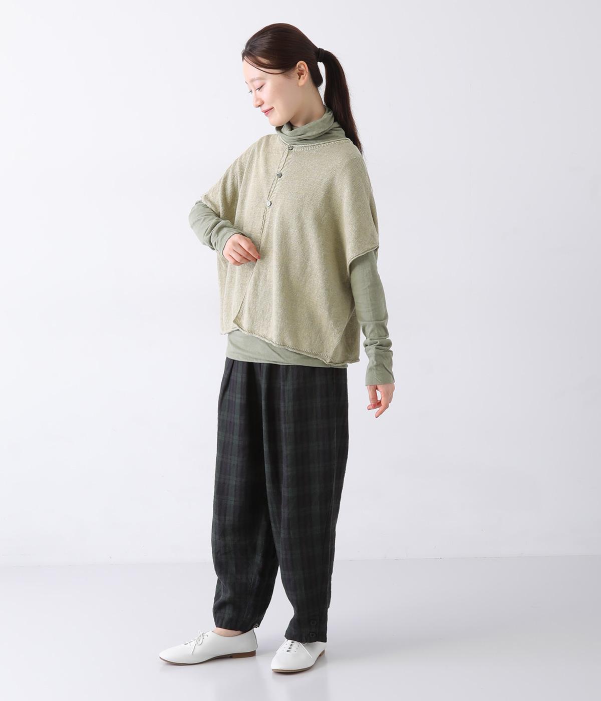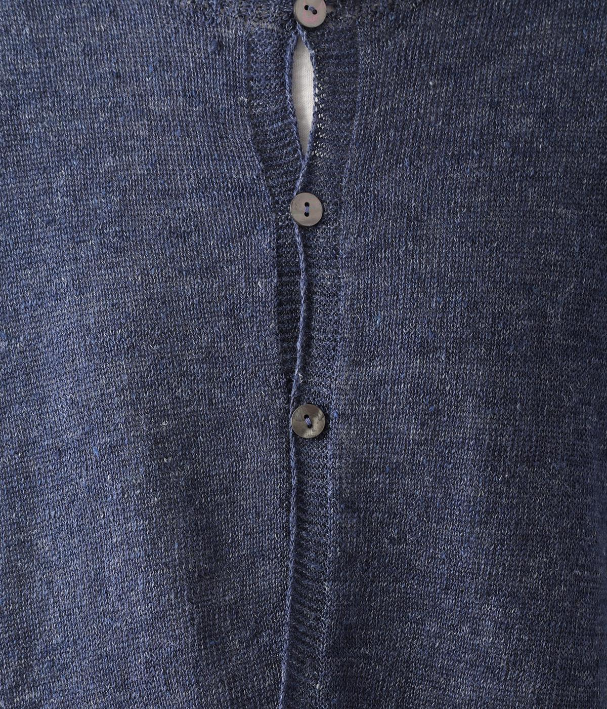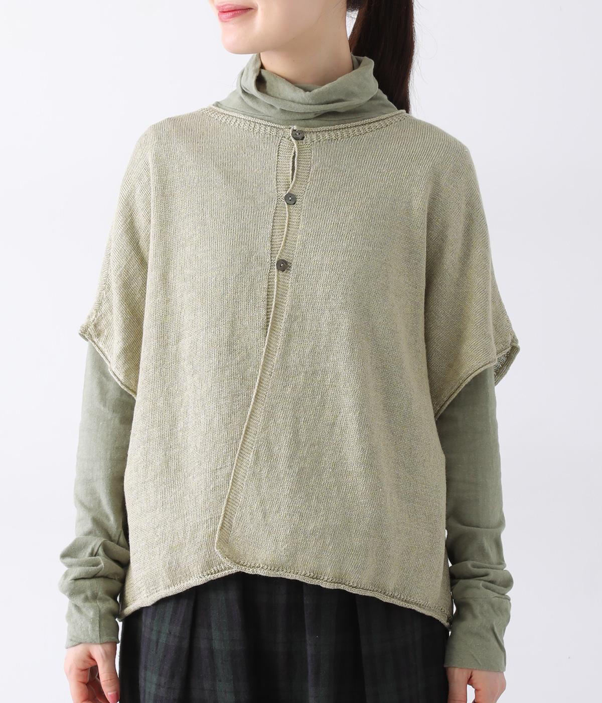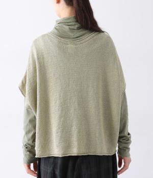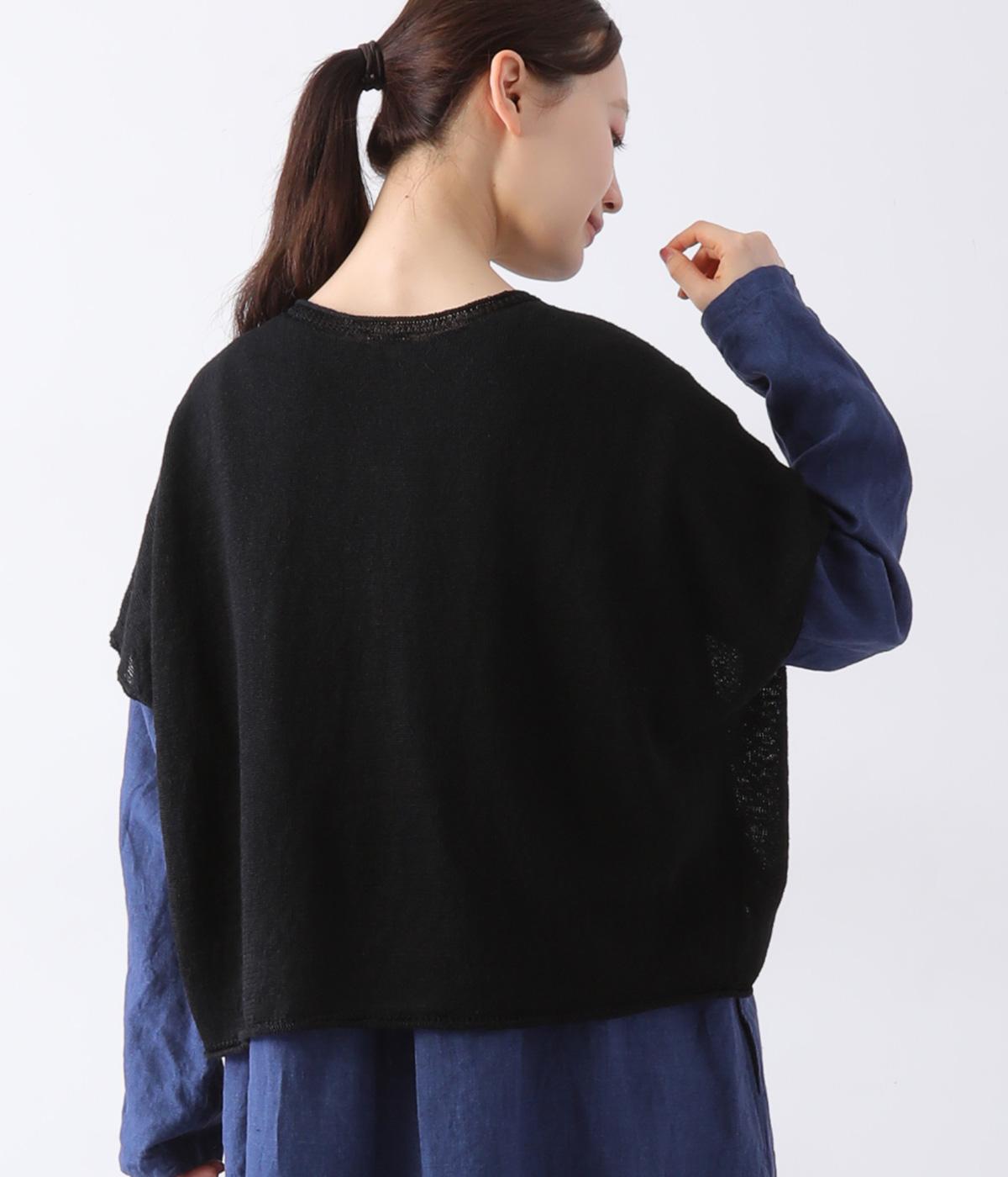 リネンならではのナチュラルな風合いを存分にたのしめるニット生地です。さらさらとした心地よい肌触りと清涼感たっぷりの見た目が特徴。薄手でやや透け感があり、レイヤードスタイルも軽やかに決まります。