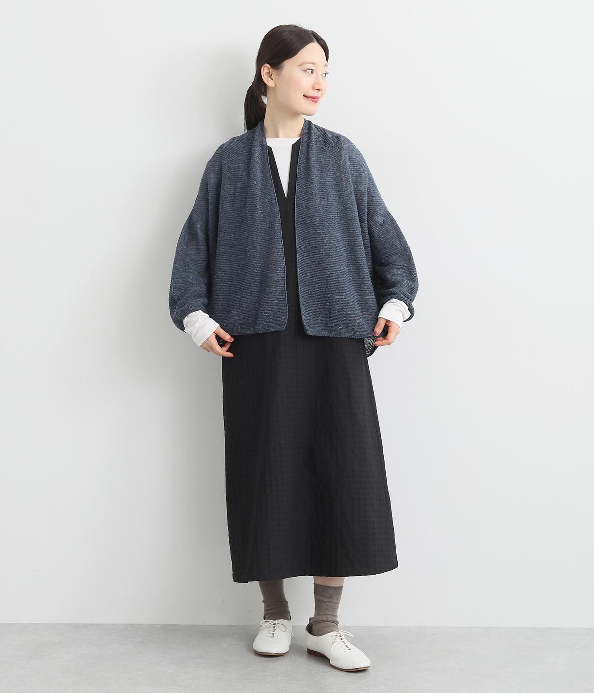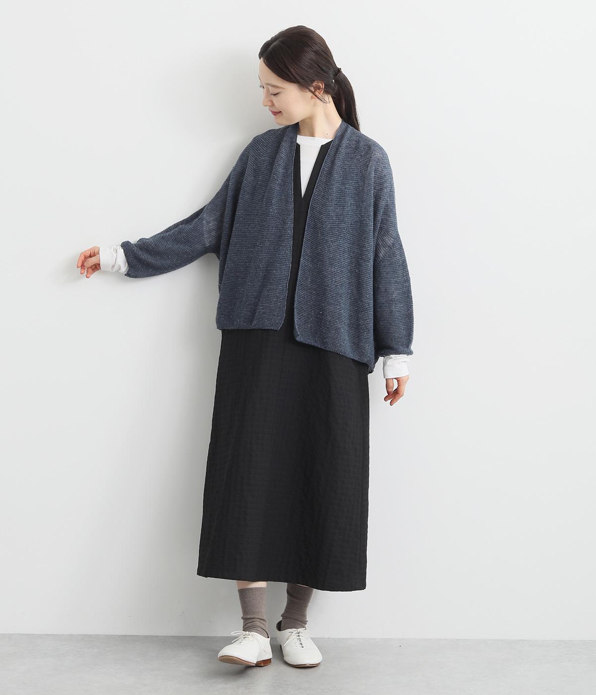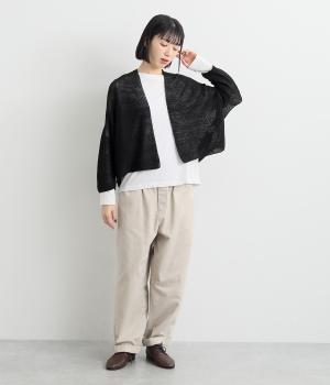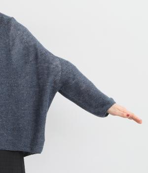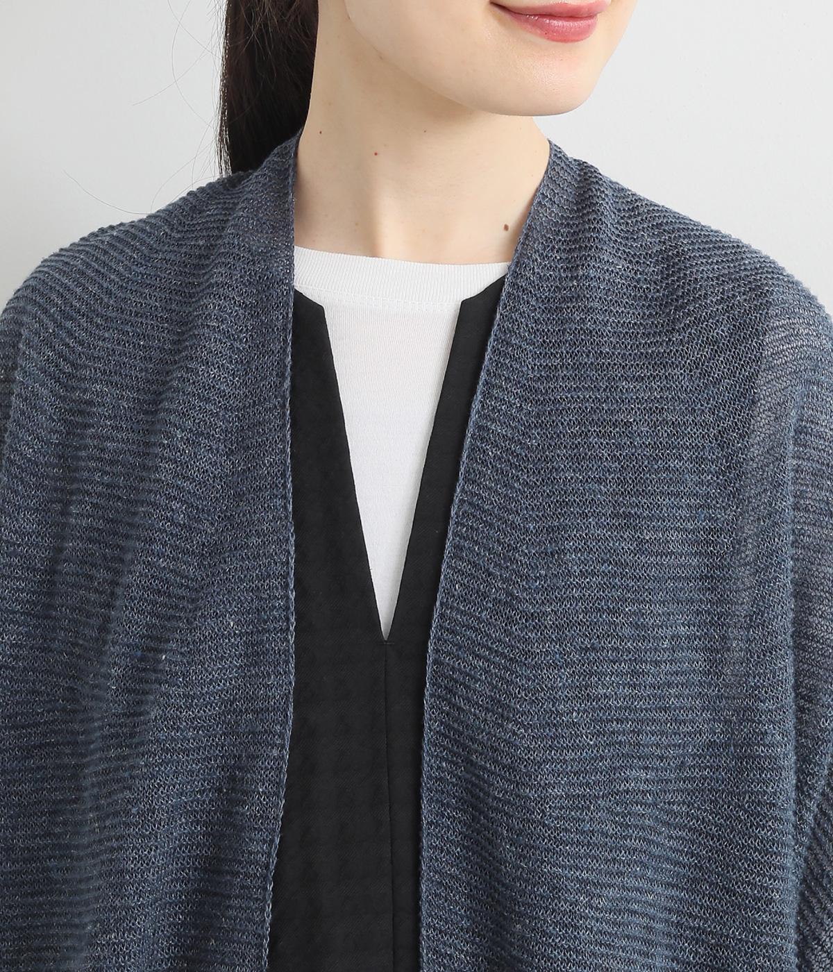 硬さやごわつきをおさえた、やわらかな風合いが魅力のノルマンディーリネンを使用。甘く編みたてたニット生地がほんのりとした女性らしいシアー感をうみます。