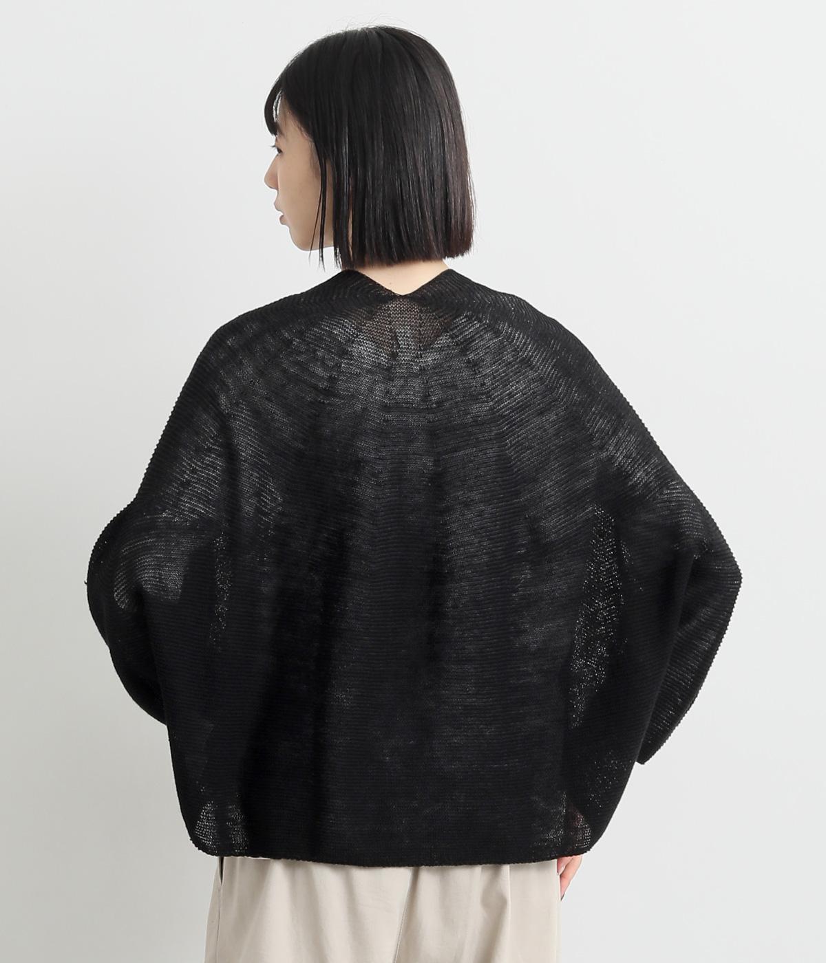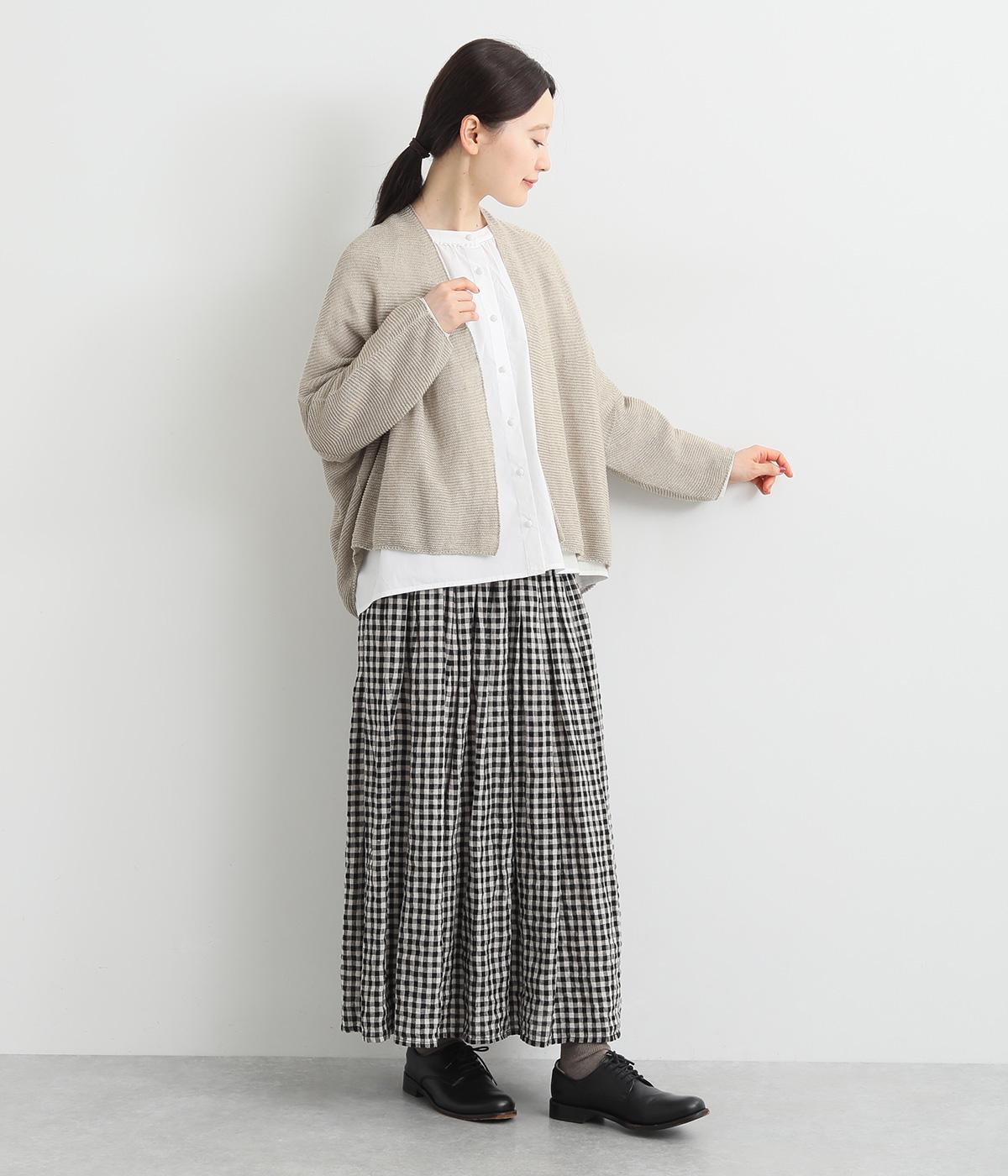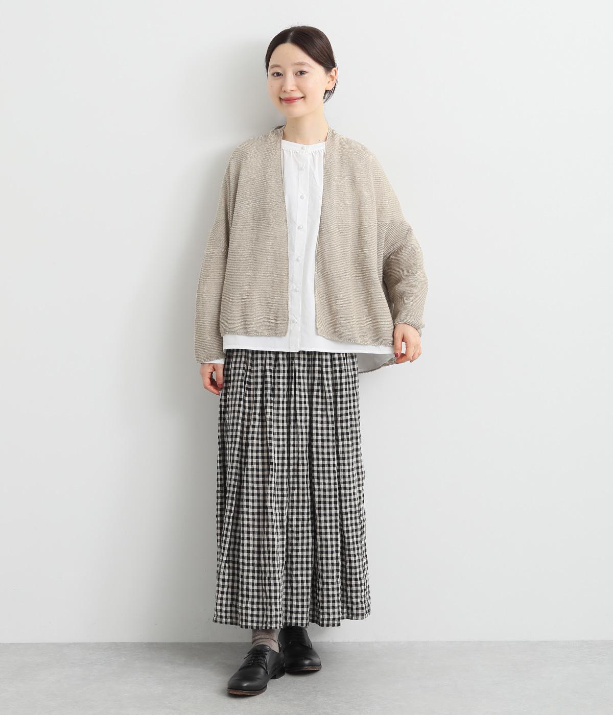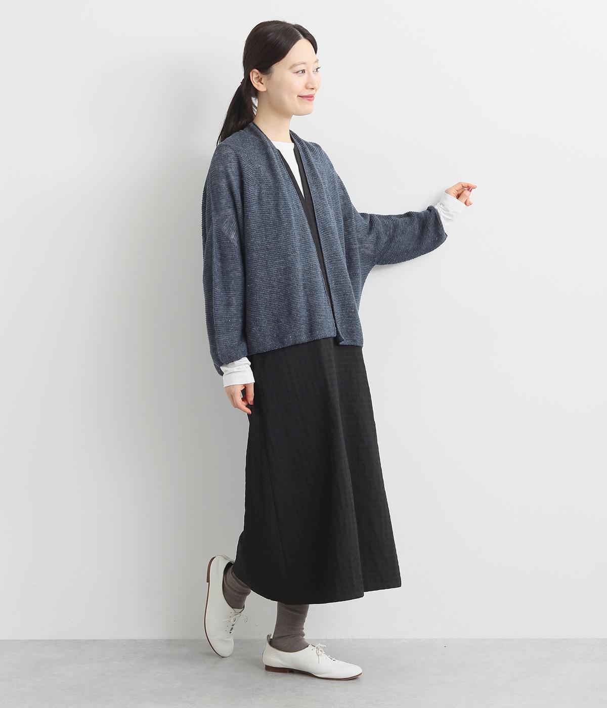 硬さやごわつきをおさえた、やわらかな風合いが魅力のノルマンディーリネンを使用。甘く編みたてたニット生地がほんのりとした女性らしいシアー感をうみます。