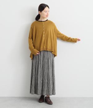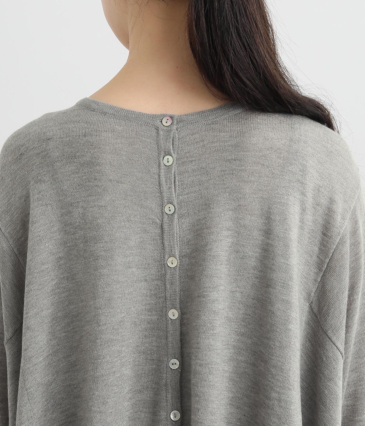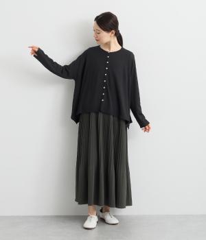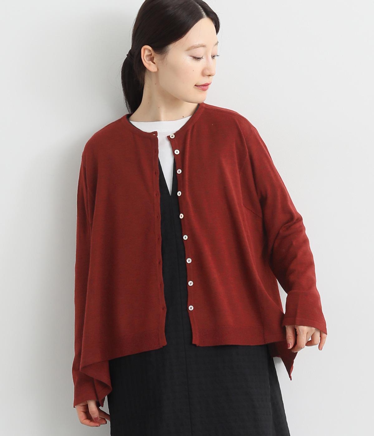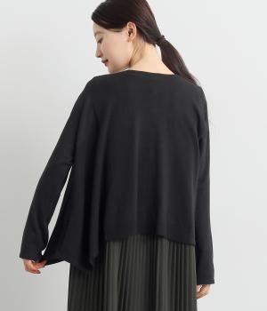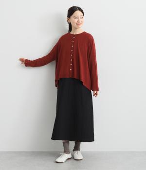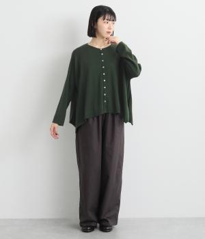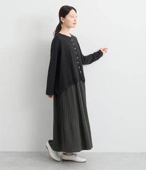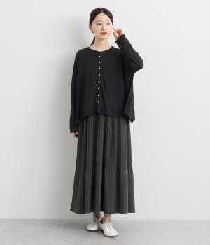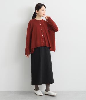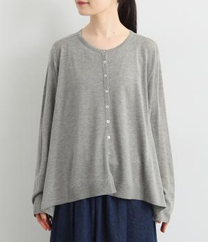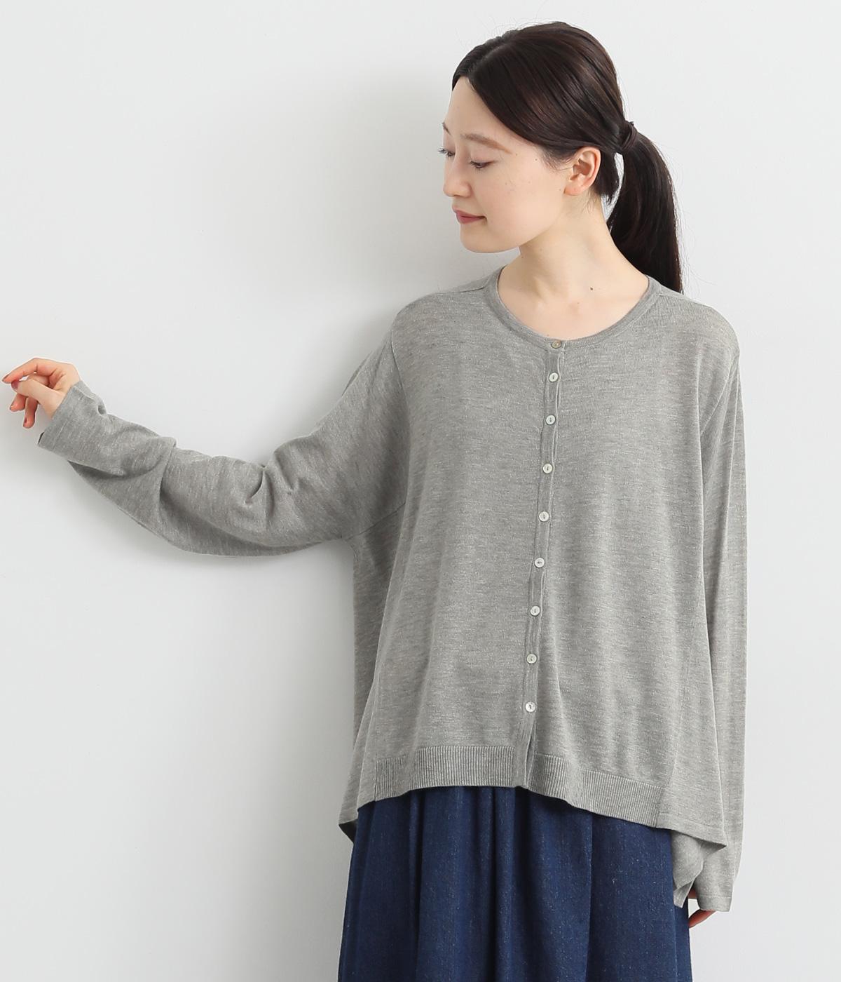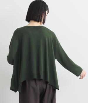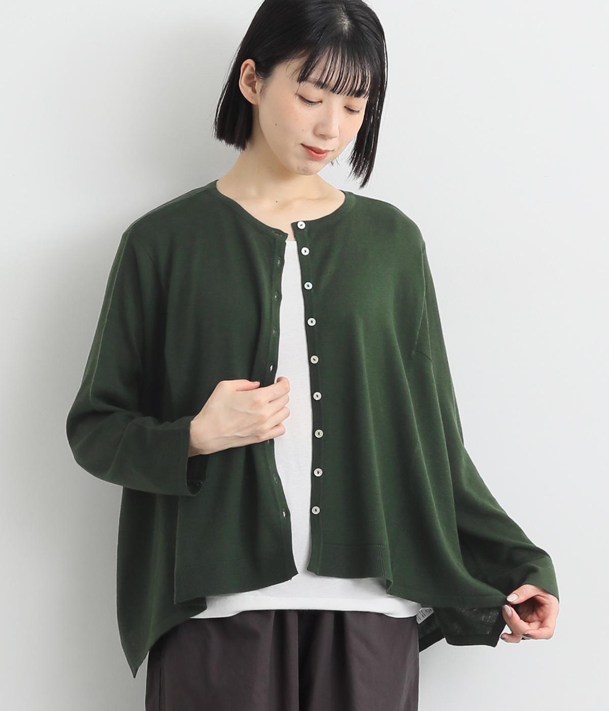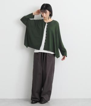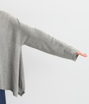 羽織りとしてもプルオーバーとしても着られる前後2way仕様のカーディガン。身幅を広く取り、なめらかな生地感をいかしたきれいなドレープが映えます。腕を下ろすと両サイドが長くなるヘムラインも素敵。ベーシックながらも、生地感やシルエットにこだわりの詰まったアイテムです。