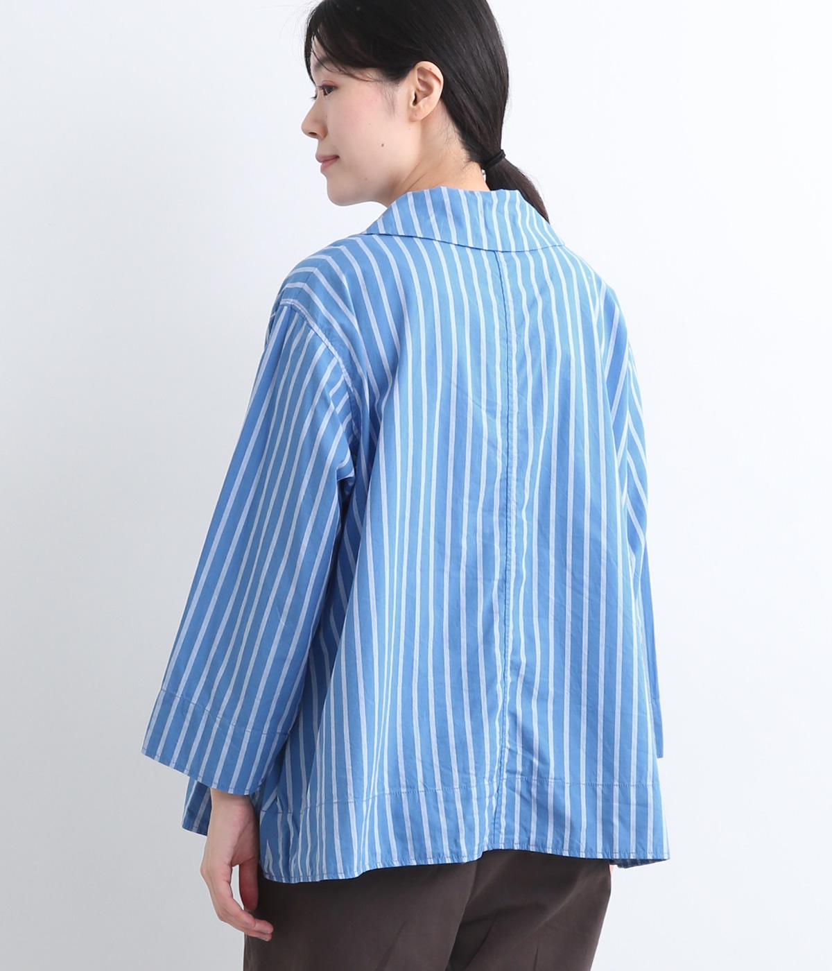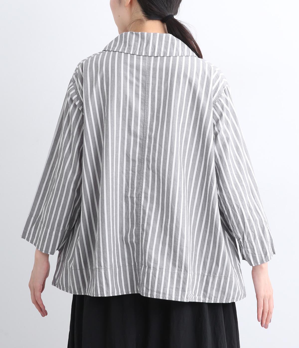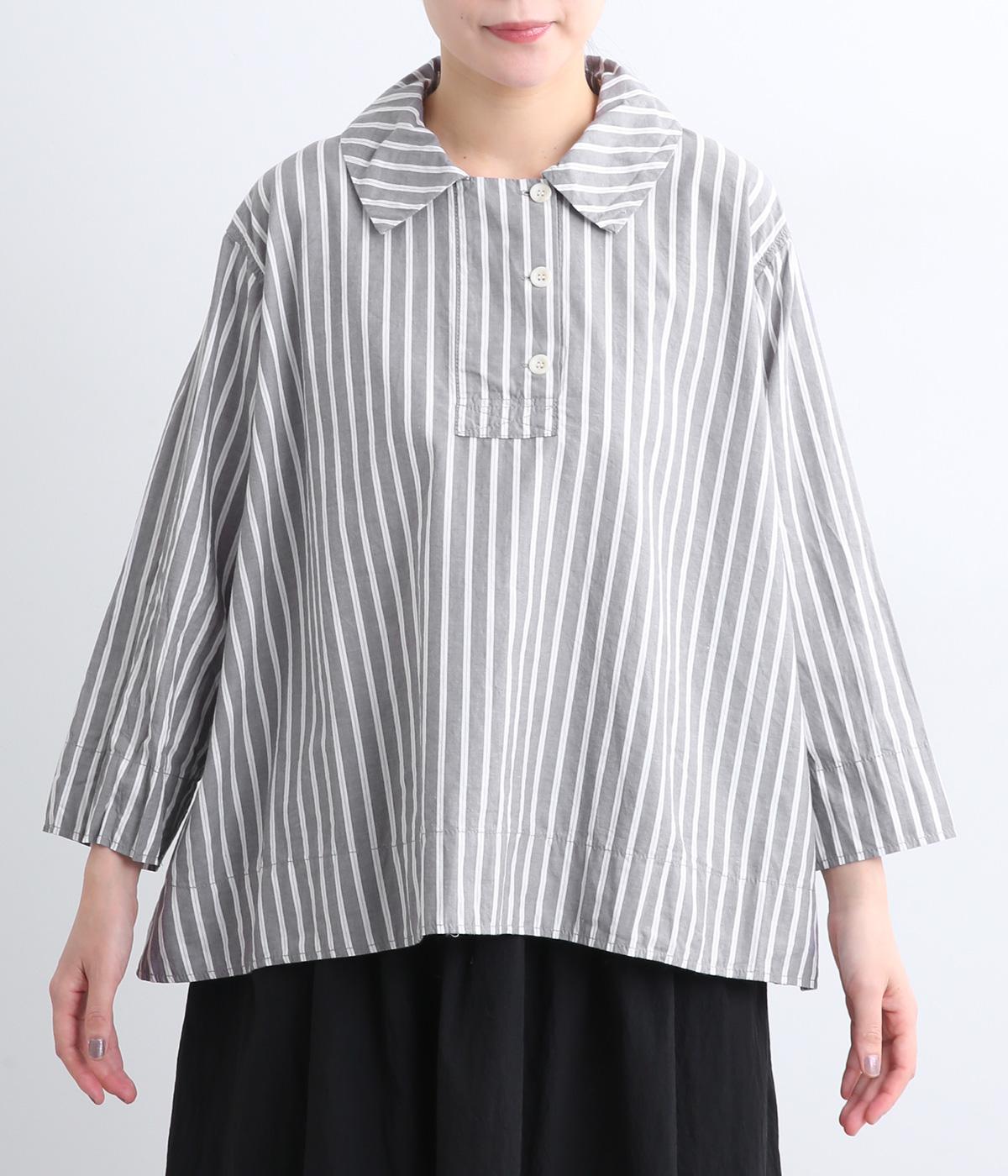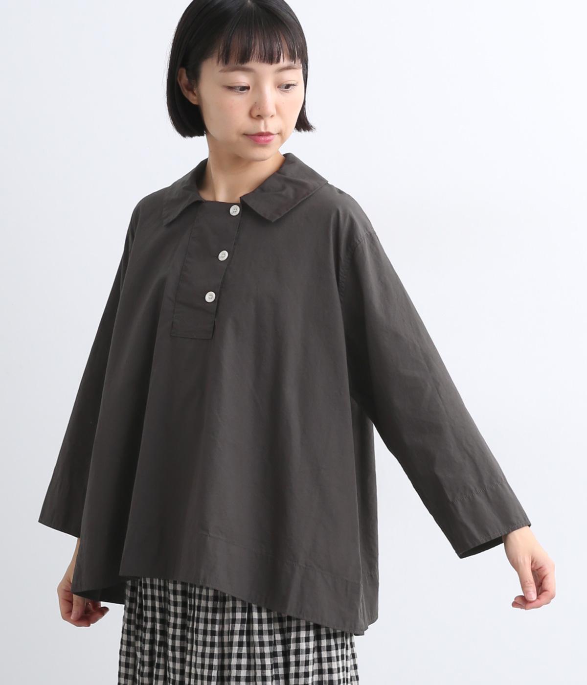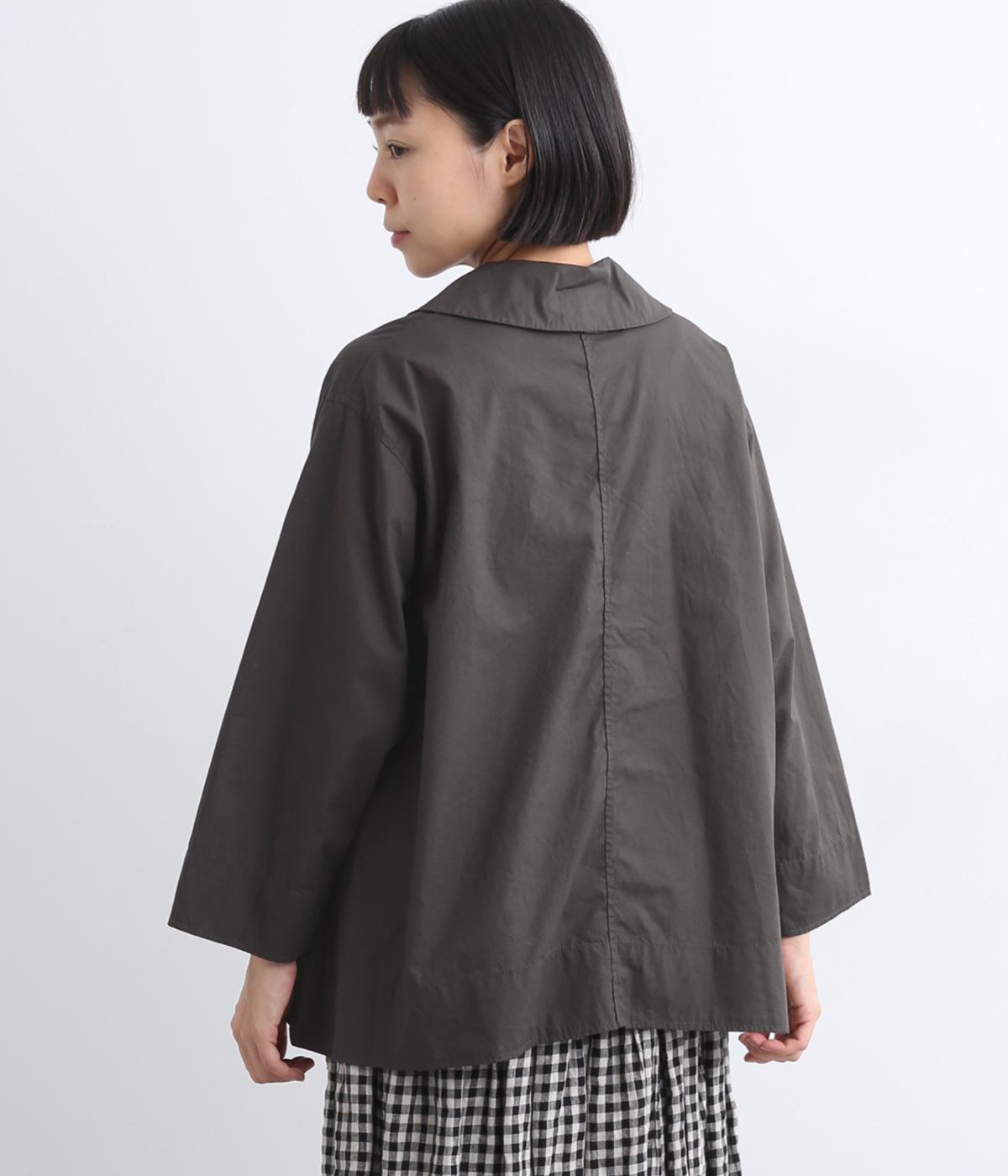 大きめの襟とダブルボタン仕様の胸元が印象的なブラウスです。広がりのあるシルエットが動きを出して、体のラインを拾いません。袖と裾に入ったステッチがさりげないアクセントに。さらりと一枚でさまになるアイテムです。