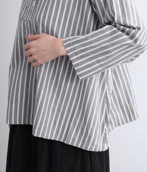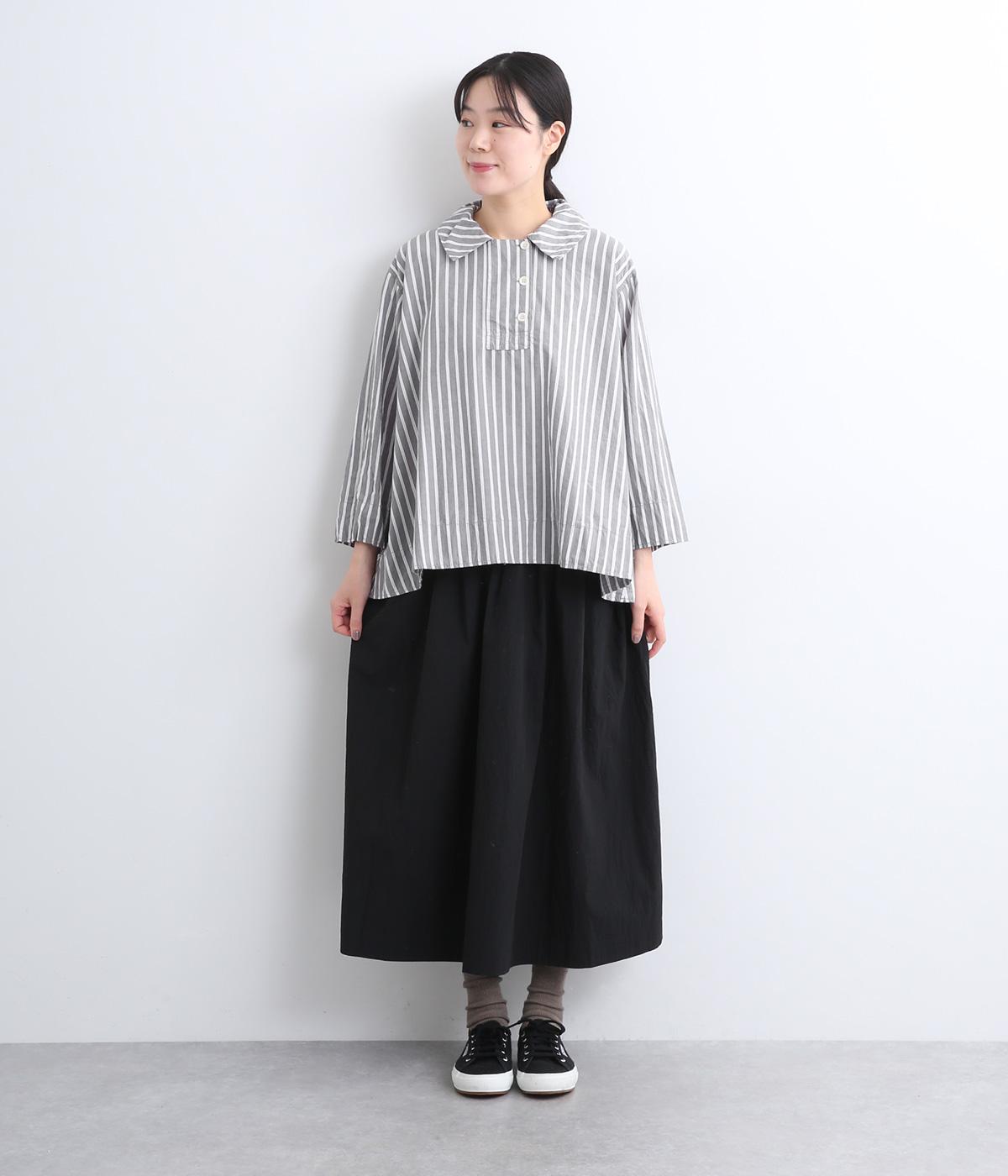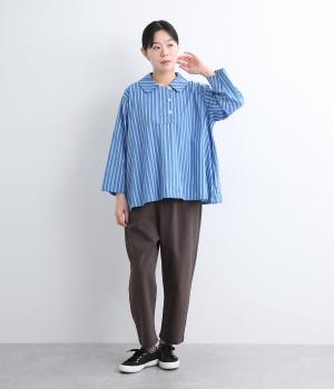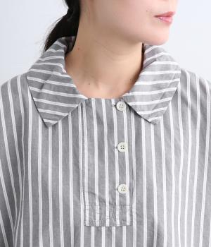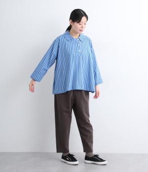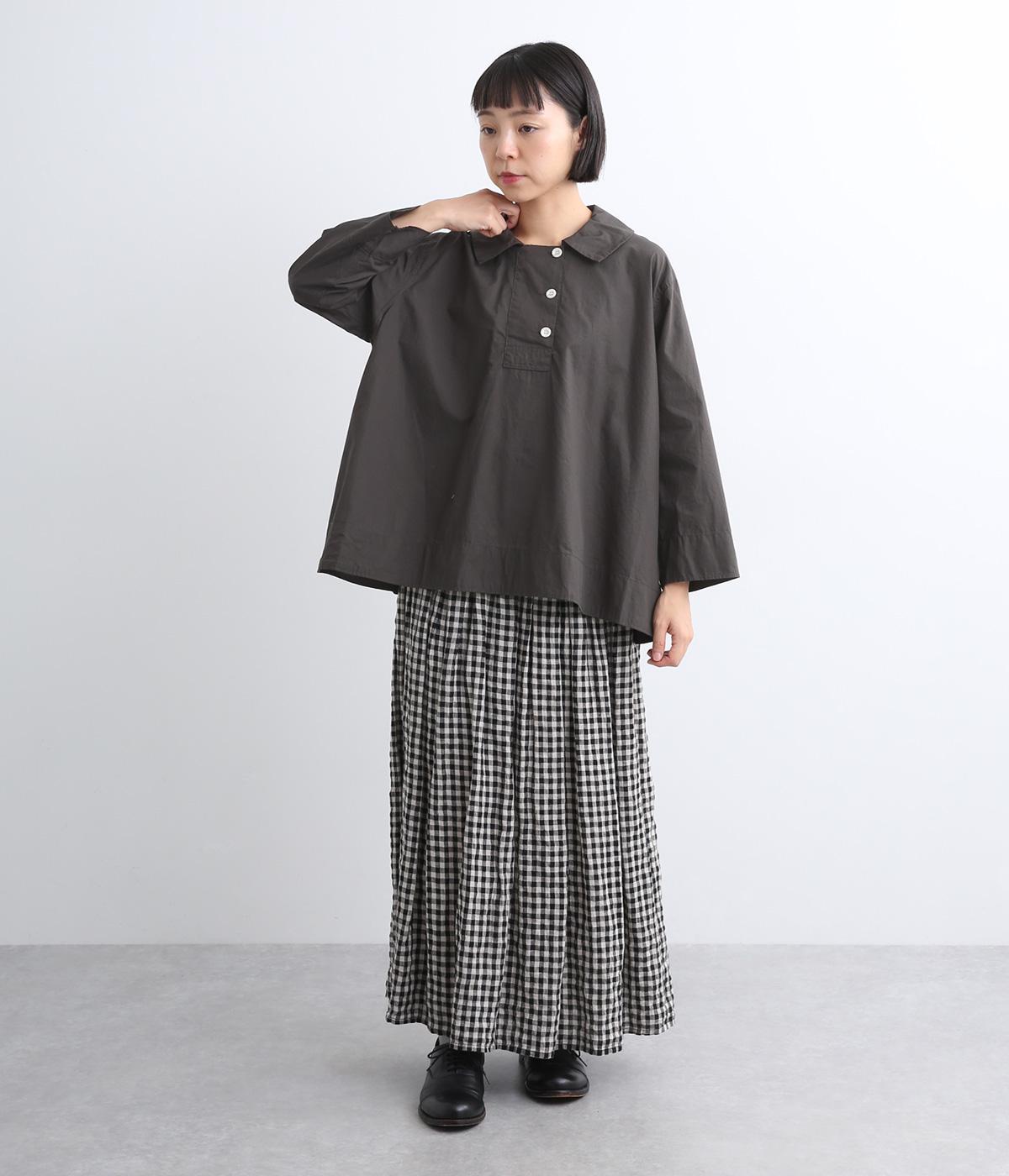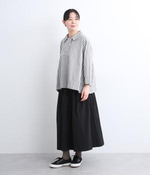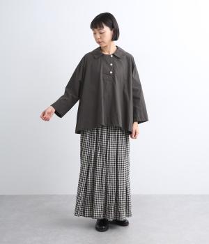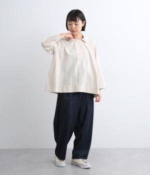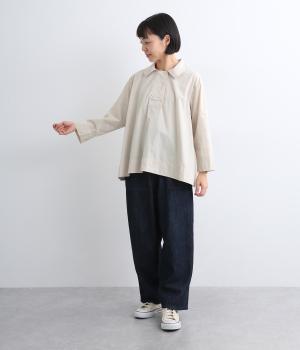 ハリのある滑らかな手ざわりのブロードクロスを使用しました。肌になじみやすいやわらかな質感です。ナチュラルな風合いがこなれた雰囲気を醸します。